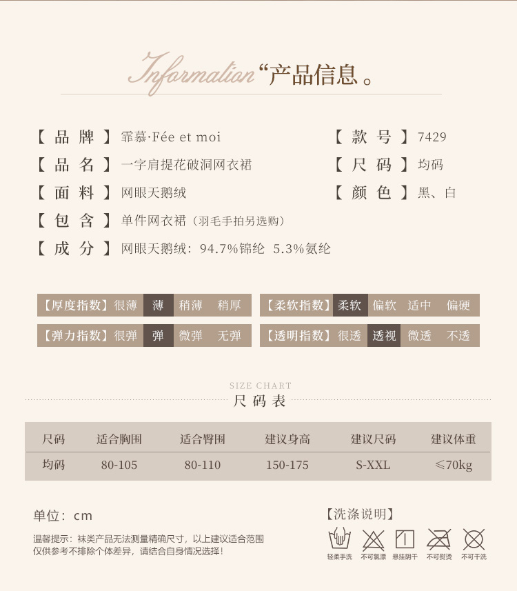 【情趣内衣】霏慕 一字肩提花破洞网衣裙7429