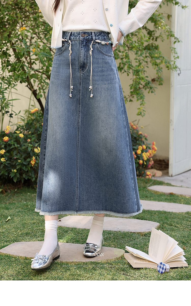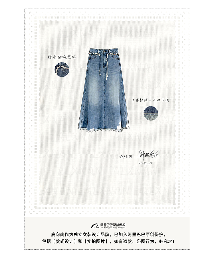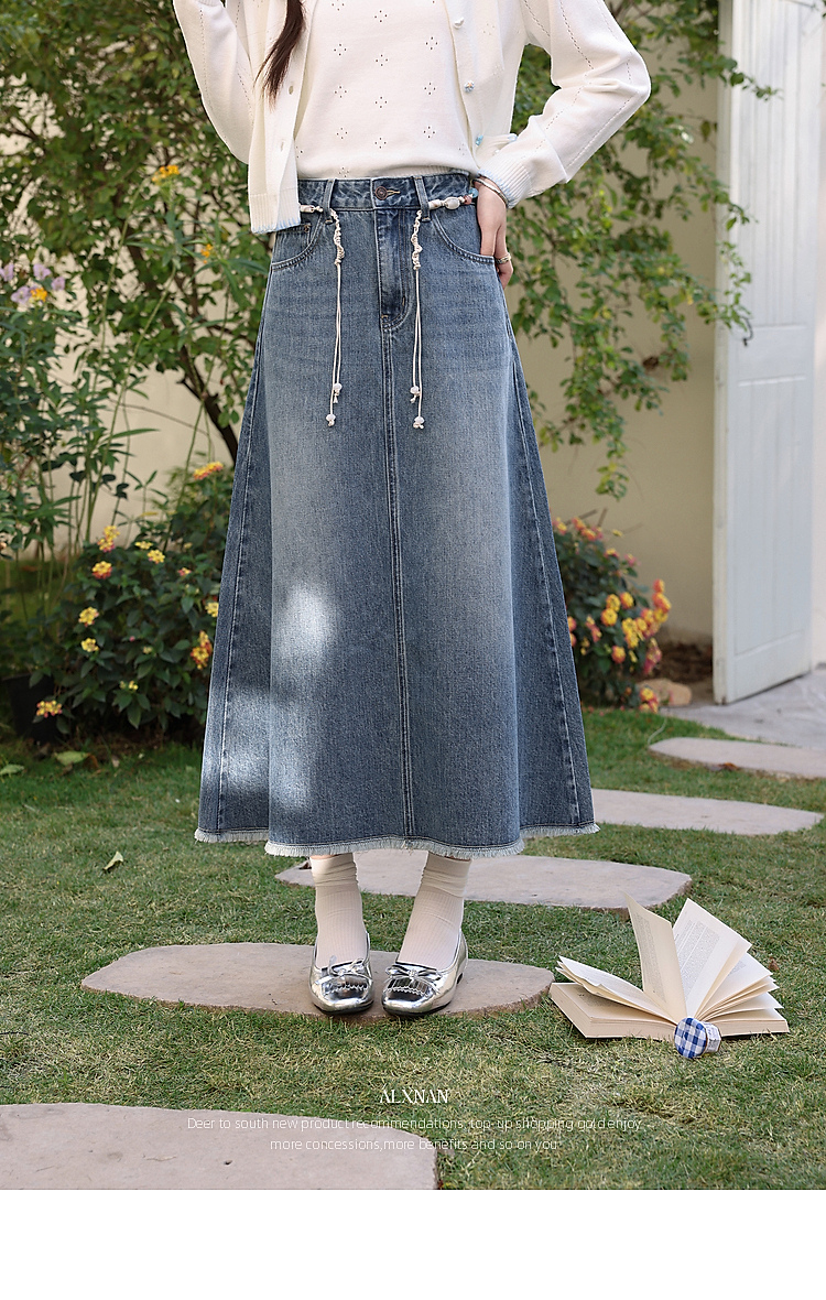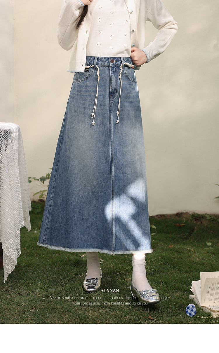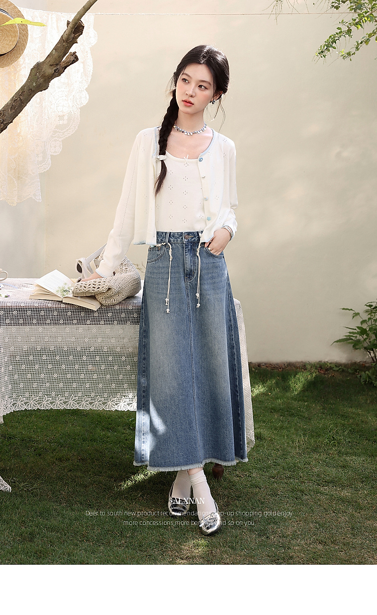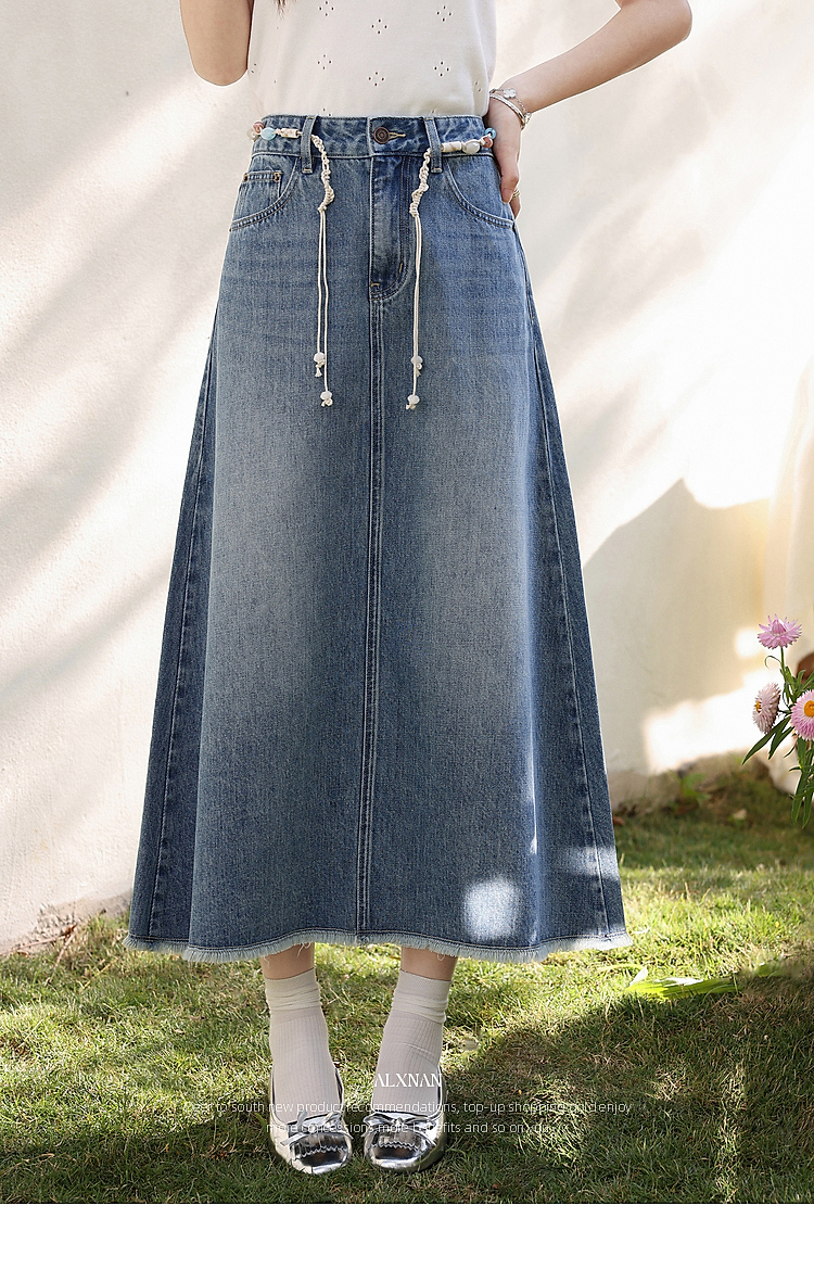 鹿向南「柔蓝序章」牛仔蓝显瘦半身裙春季新款小众设计感A字裙女