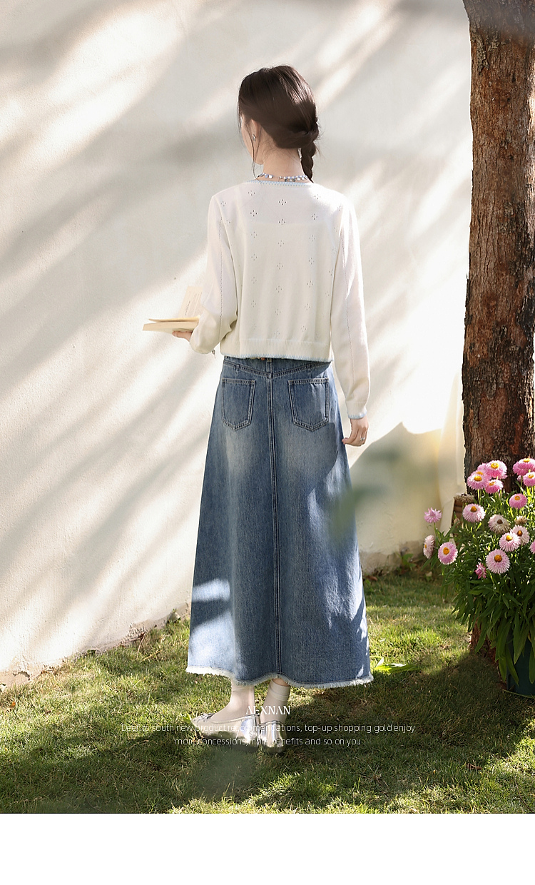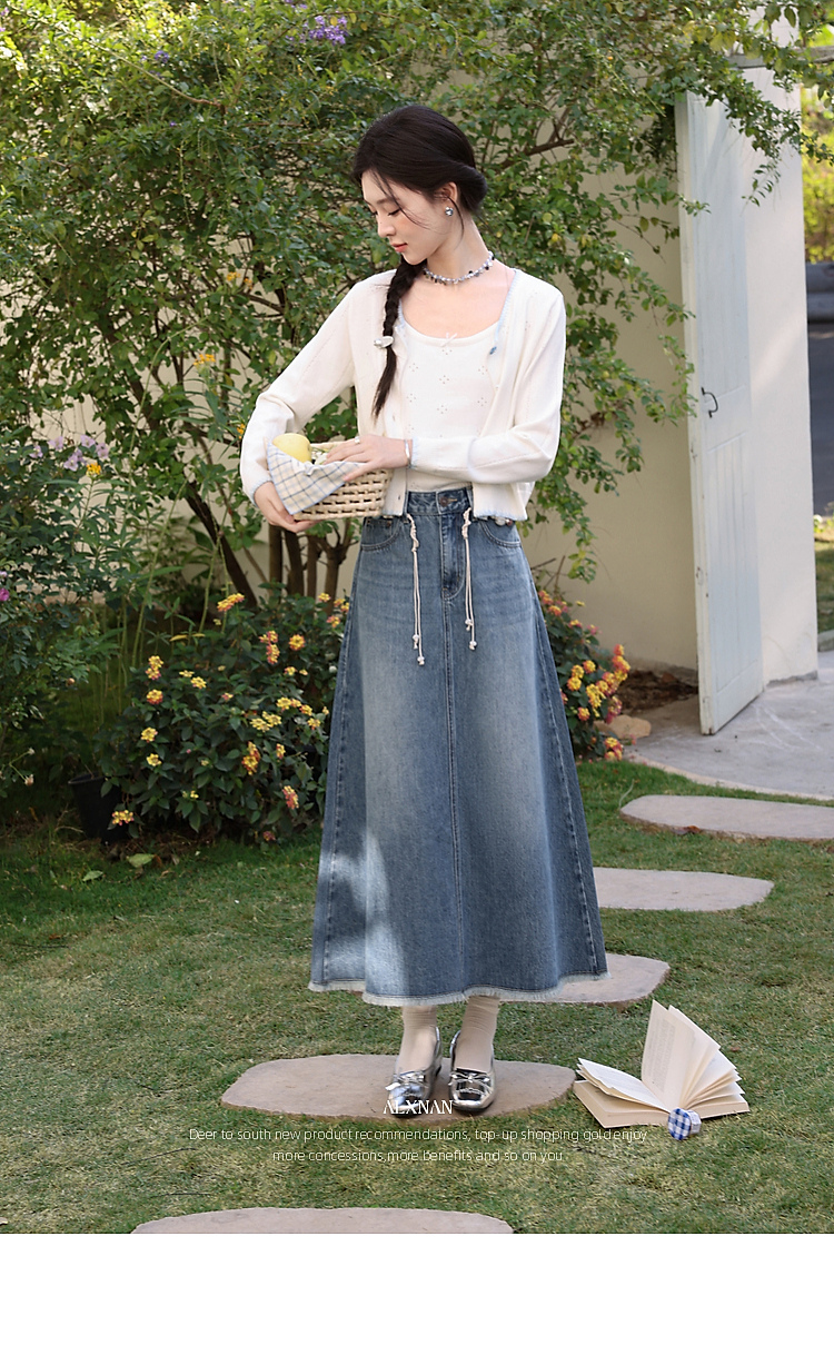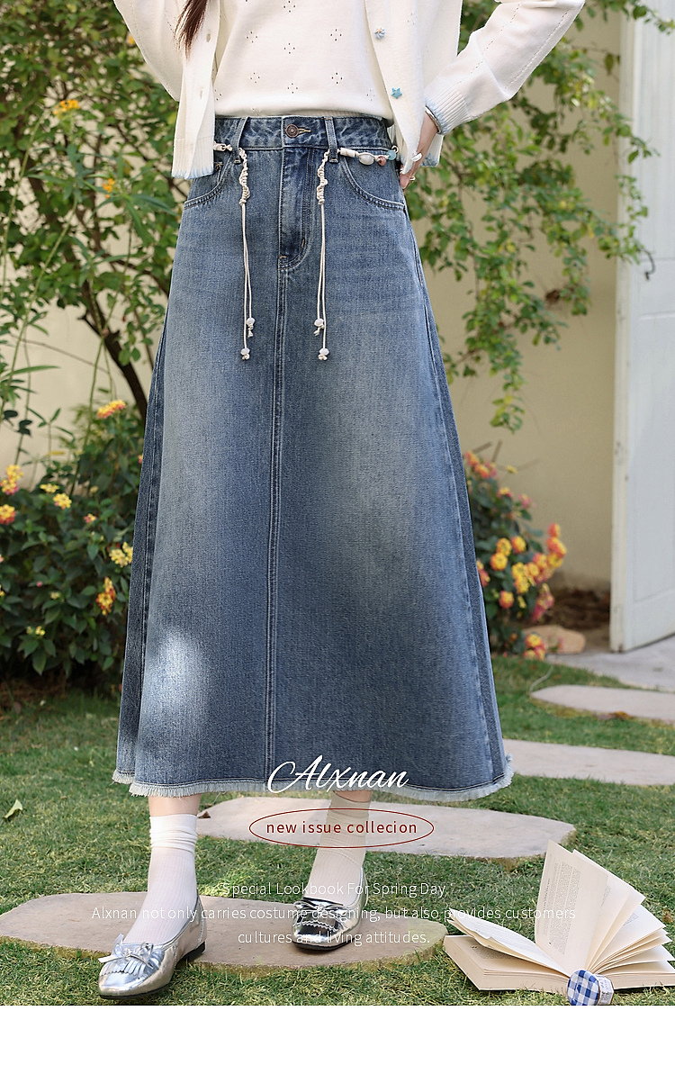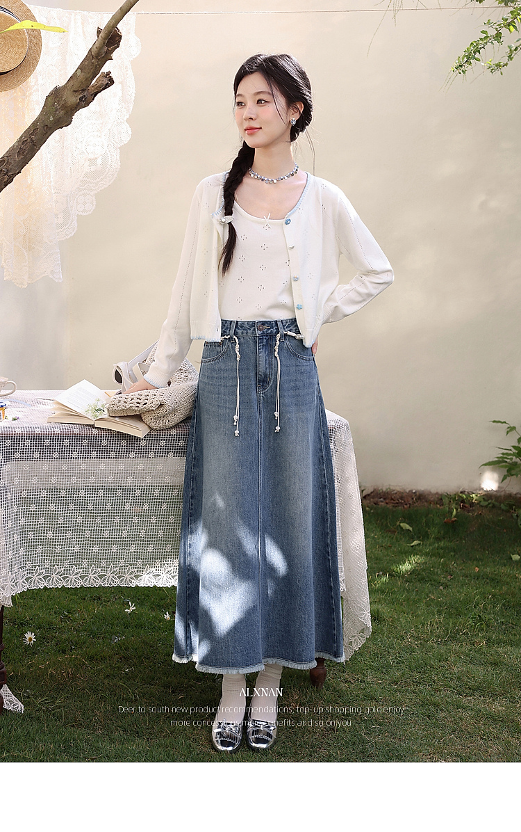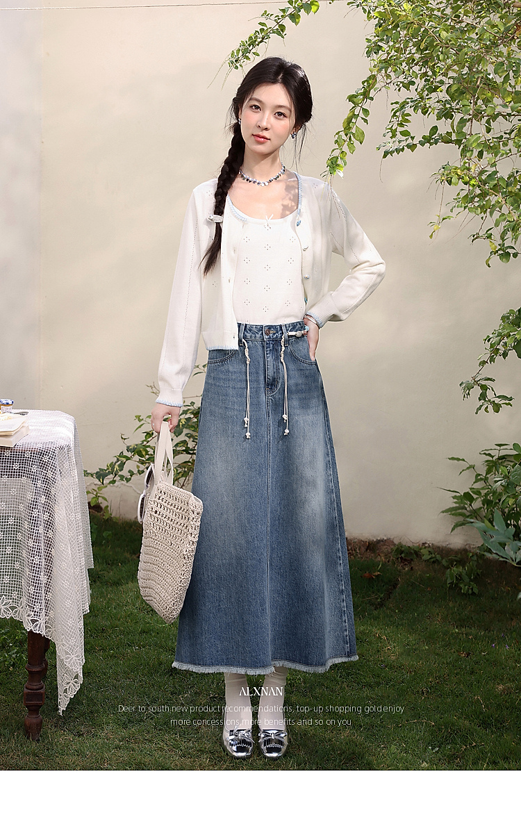 鹿向南「柔蓝序章」牛仔蓝显瘦半身裙春季新款小众设计感A字裙女