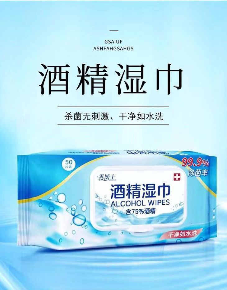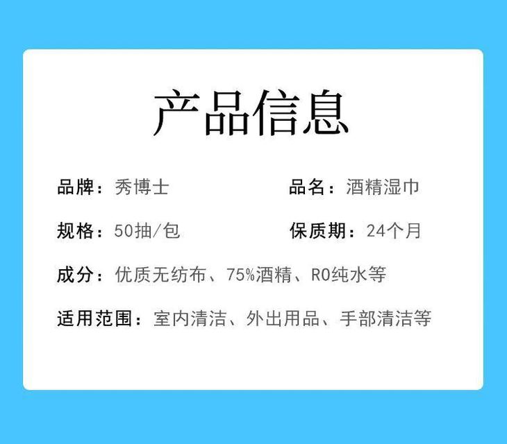 【现货秒发 一包50抽】防感染防飞沫防接触 秀博士75%酒精消毒湿巾一次性擦手宝宝餐具玩具防传染消毒便携式50片七夕情人节