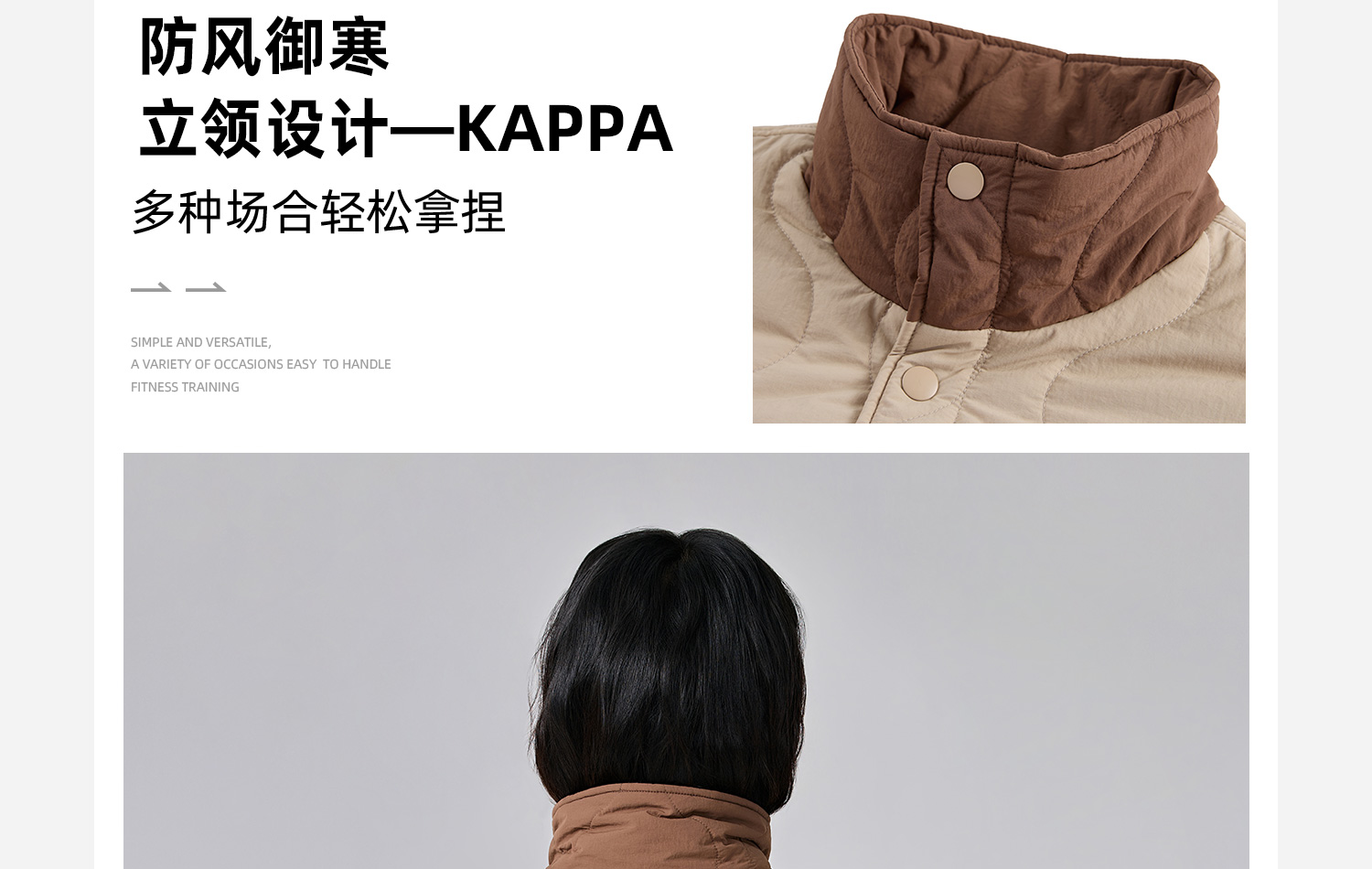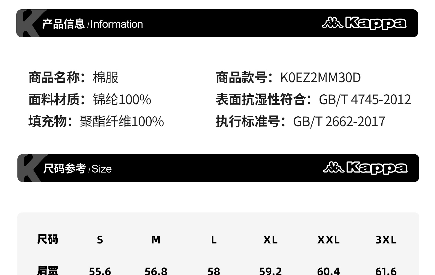 Kappa卡帕背靠背棉衣棉服女2024新款秋冬保暖外套防寒服棉袄男款K0EZ2MM30D