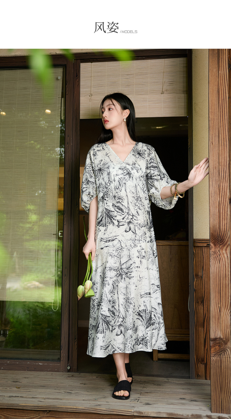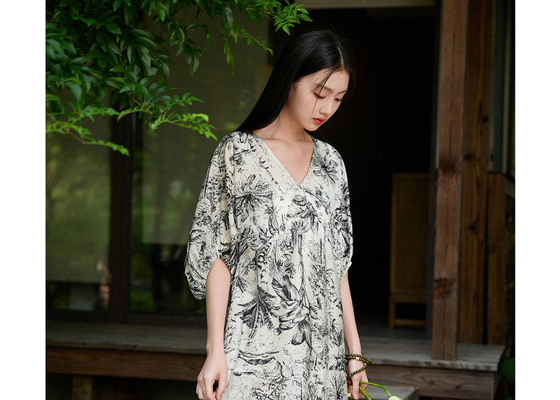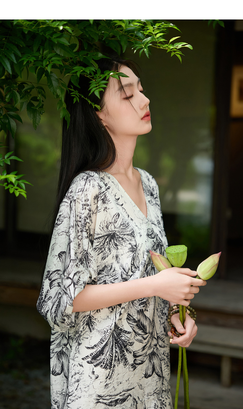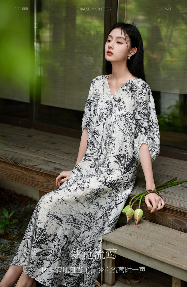 三彩【梦觉流莺】2025夏季新款家居服睡裙V领宽松长裙可外穿C