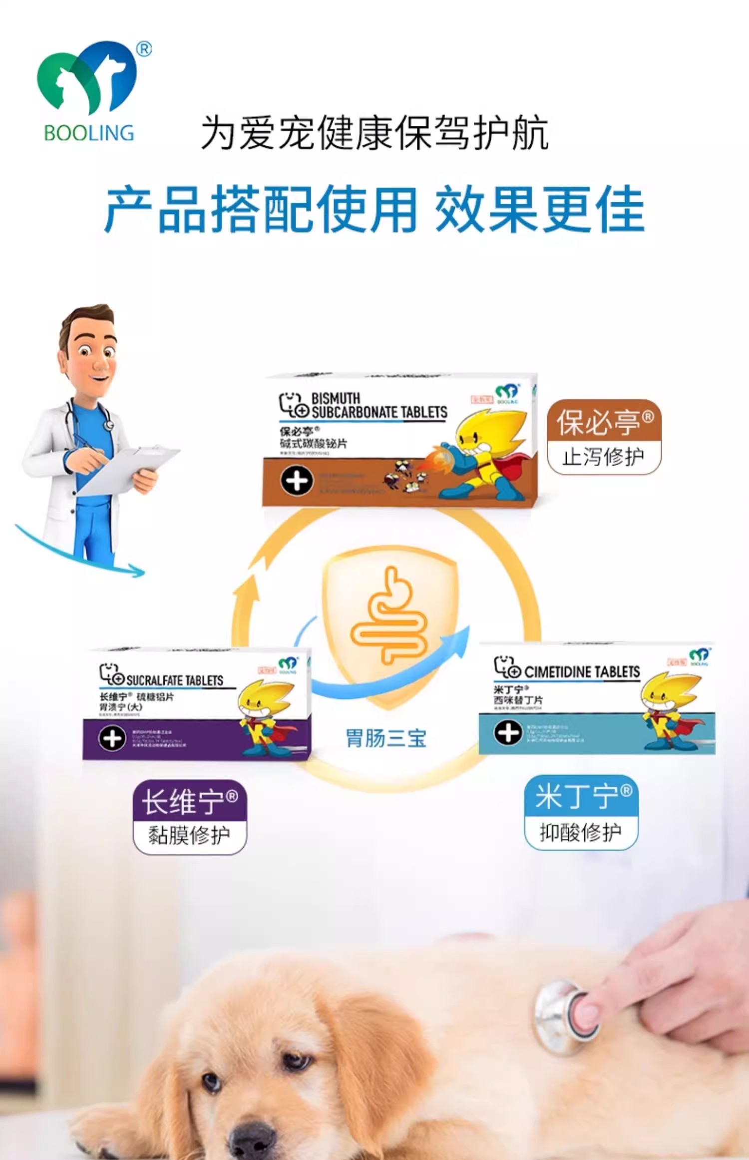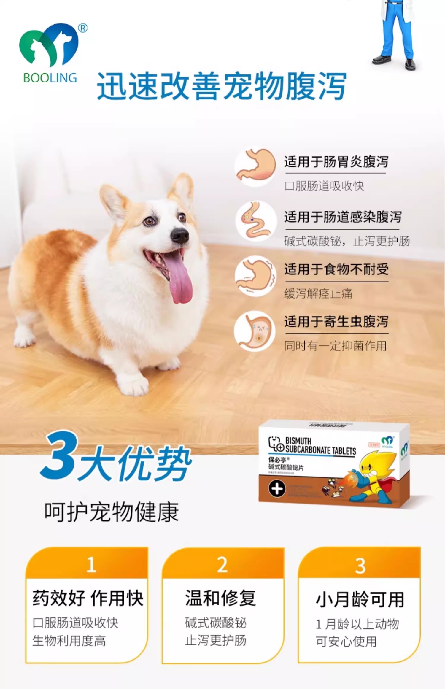 保灵保必亭碱式碳酸铋片止泻药肠胃炎腹泻猫狗拉肚子拉血软便24片