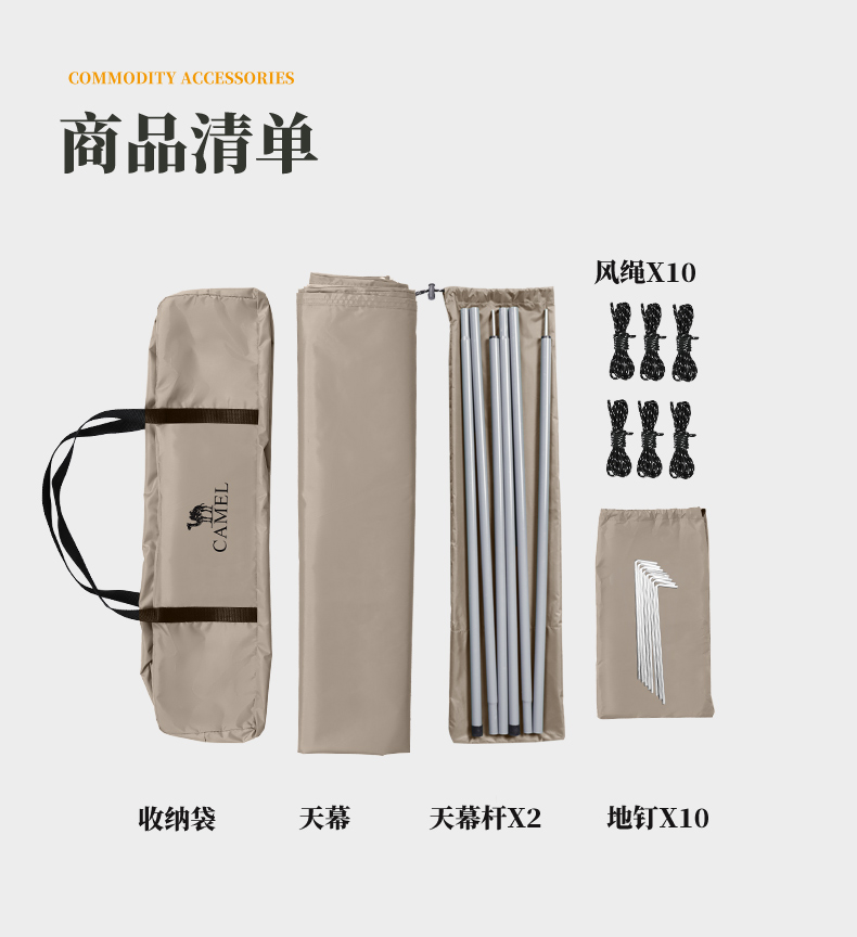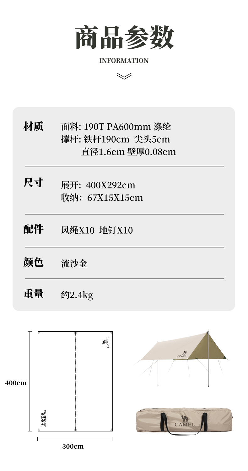 骆驼(CAMEL) 户外露营野餐涂银加厚防雨防晒便携天幕 133CA1T018—rxs