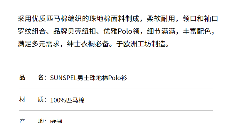 SUNSPEL男士经典款珠地棉网眼Polo衫都市商务通勤春夏