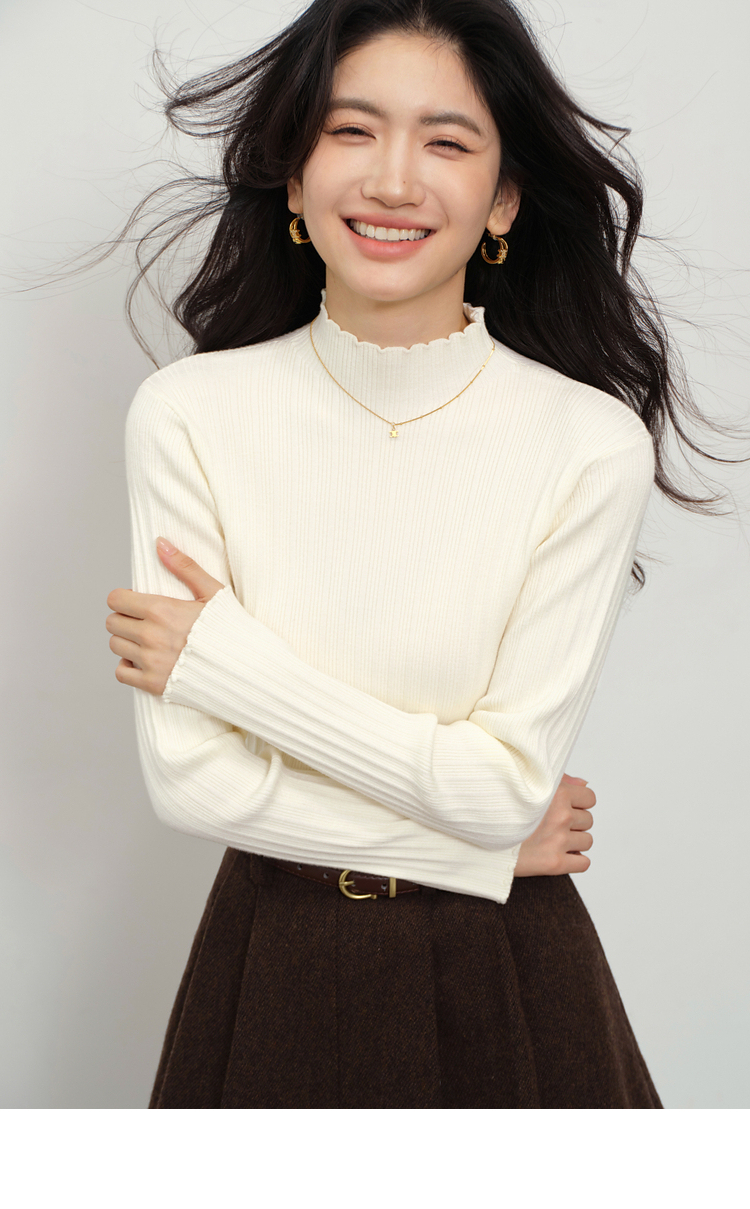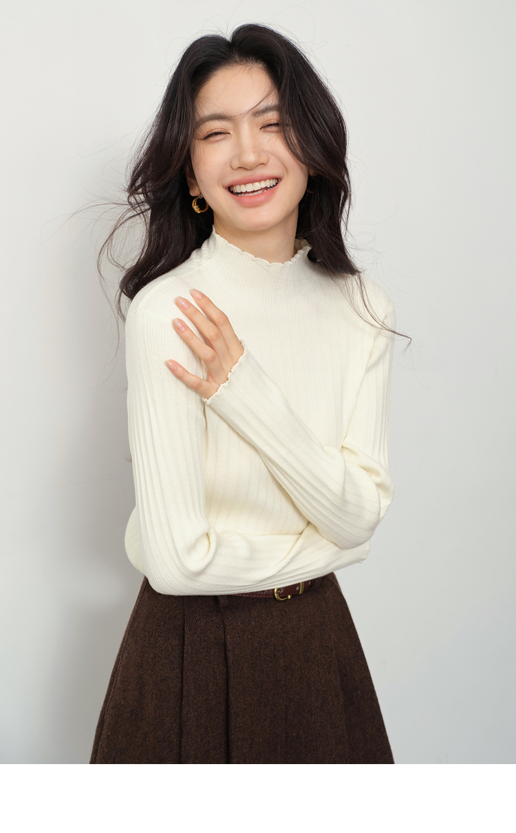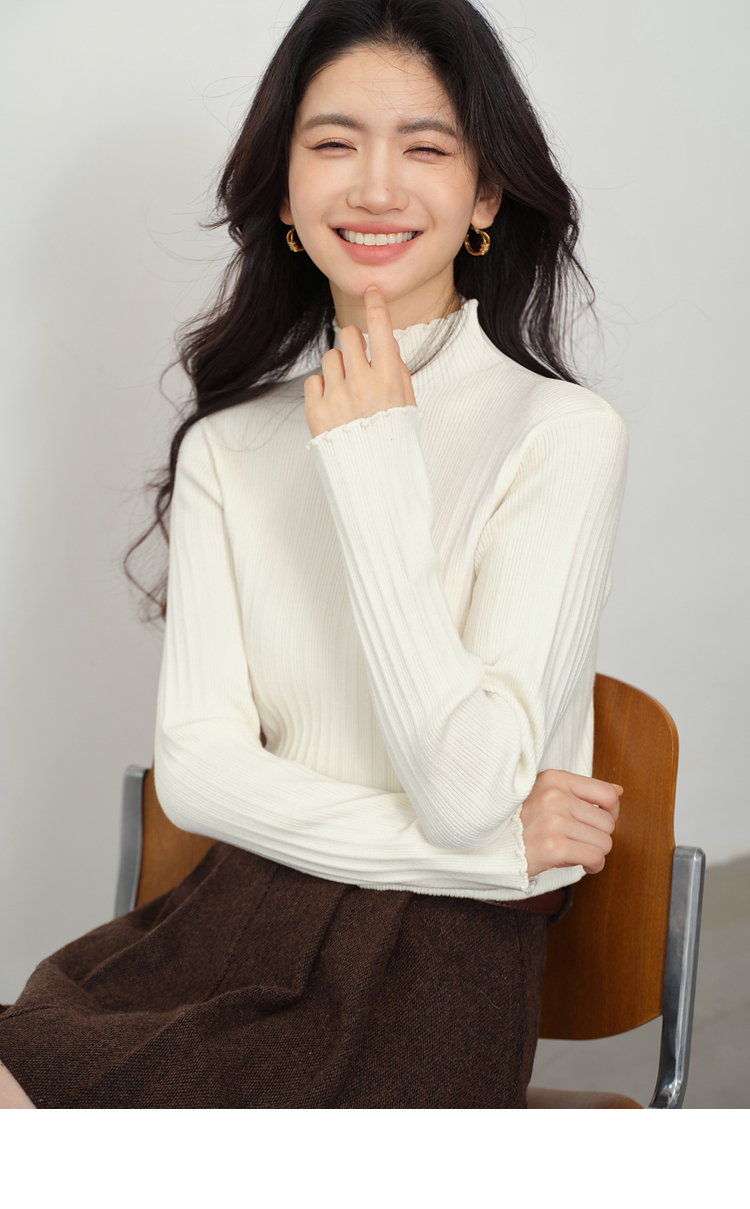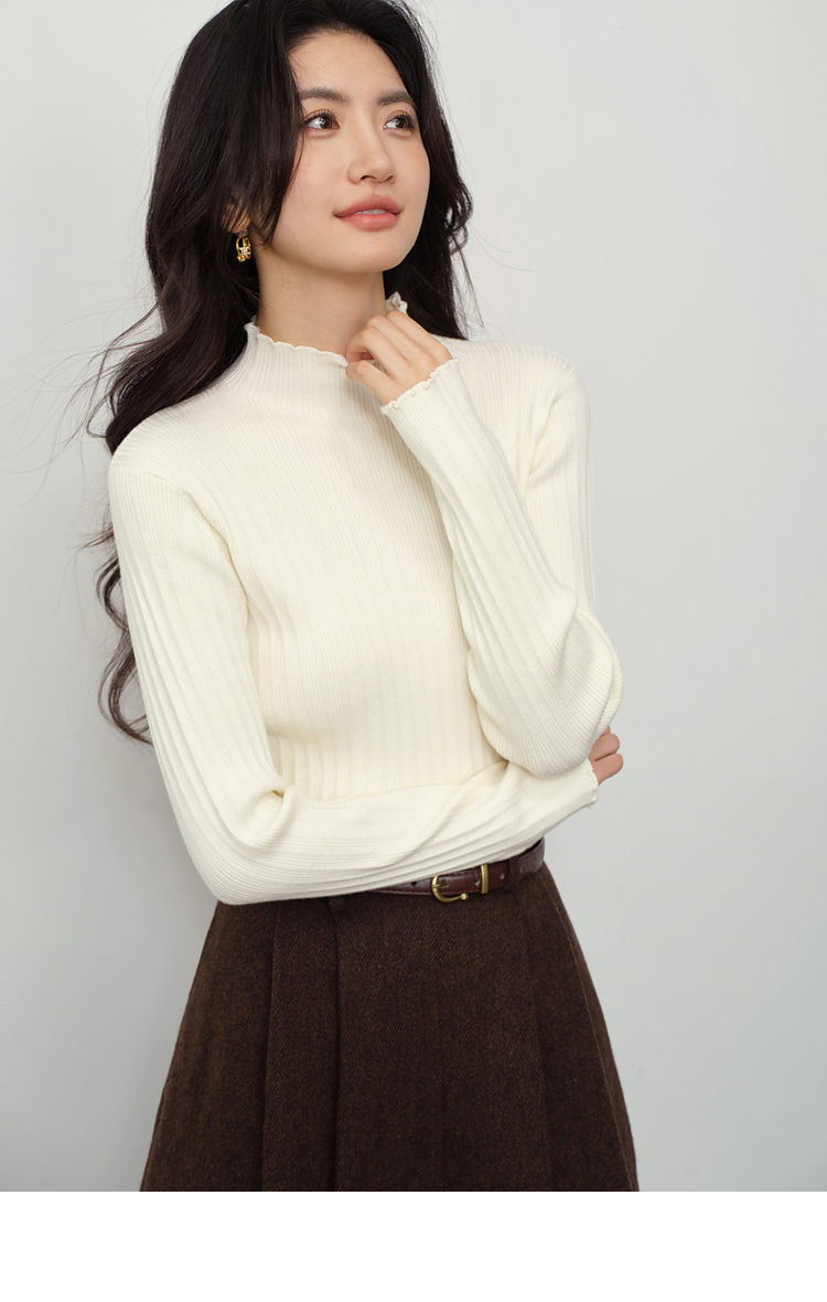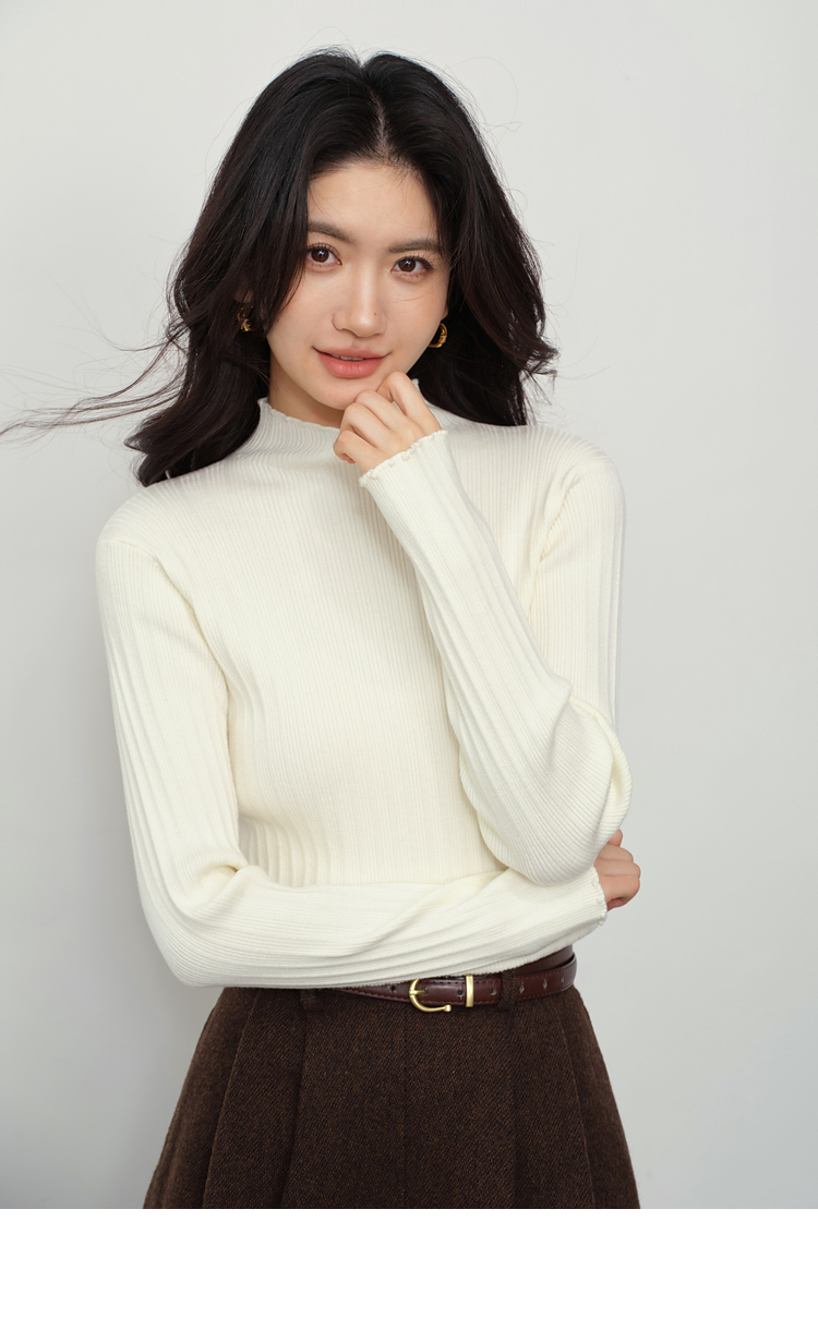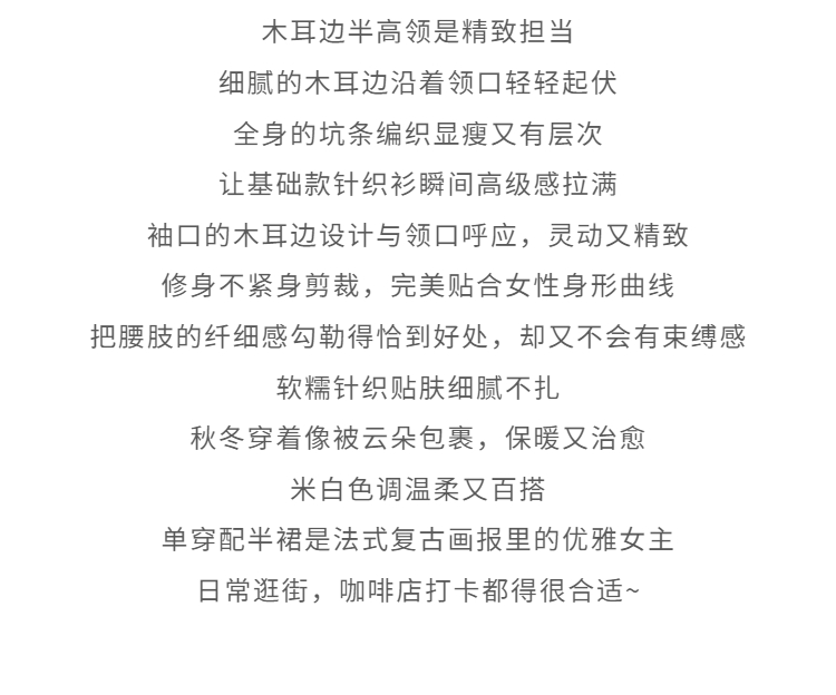 鹿向南「糯香绵云」半高领打底衫女早秋修身米白色针织衫长袖上衣