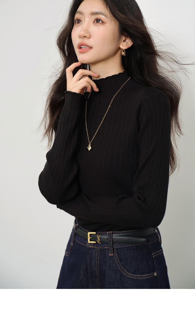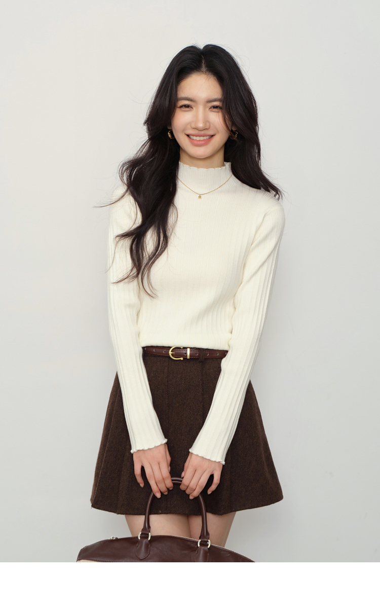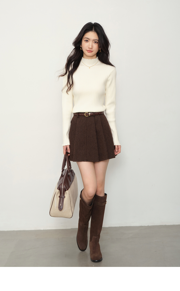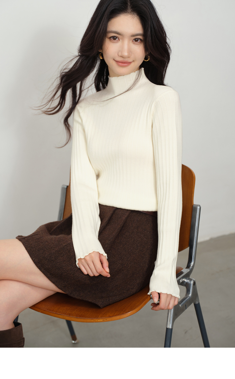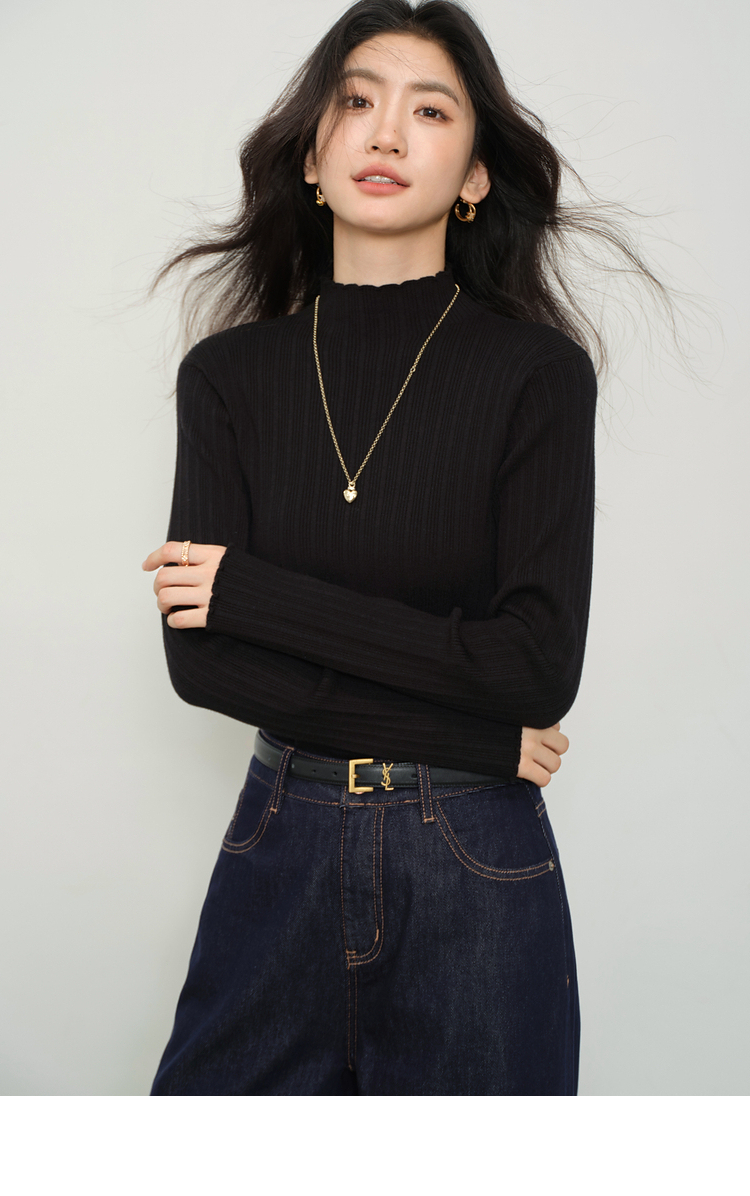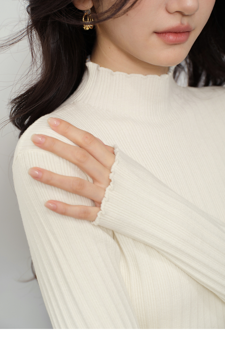 鹿向南「糯香绵云」半高领打底衫女早秋修身米白色针织衫长袖上衣
