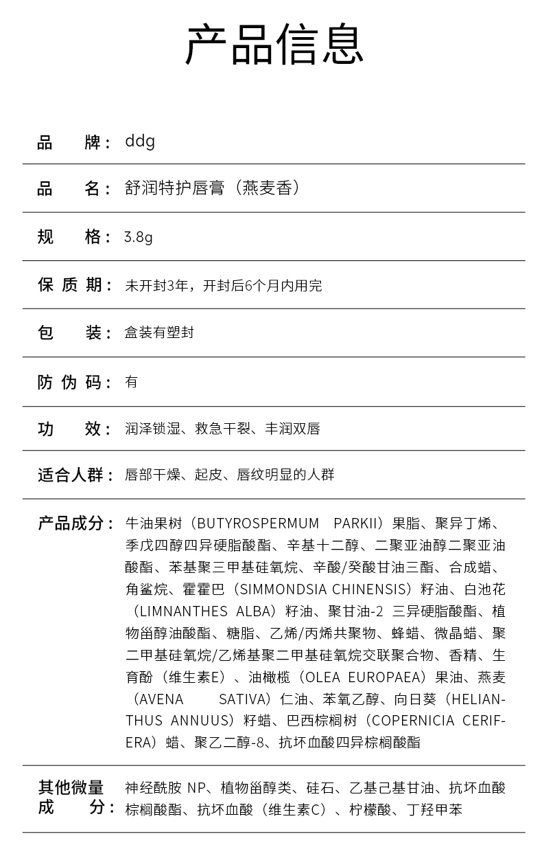 ddg 燕麦舒润特护唇膏(燕麦香)