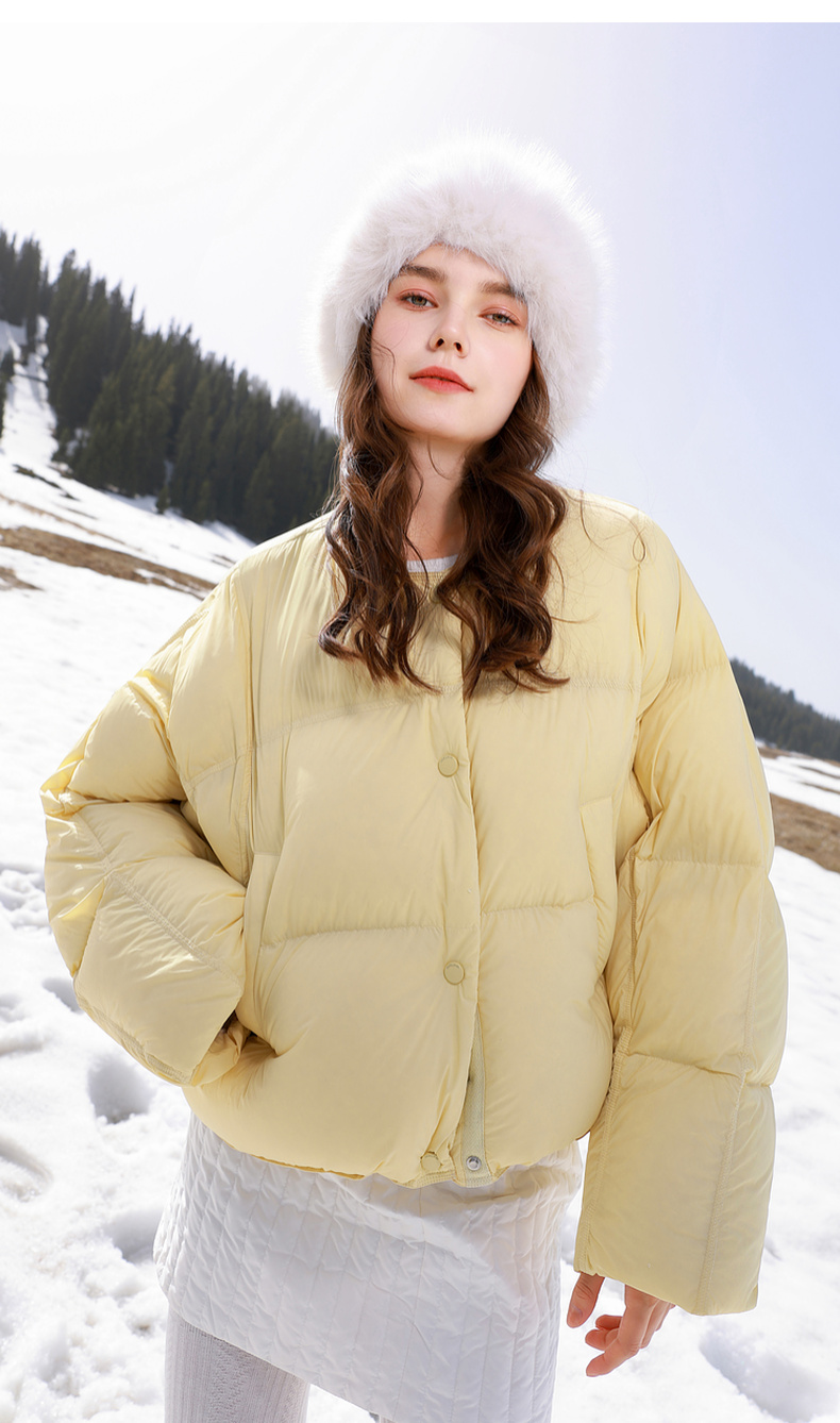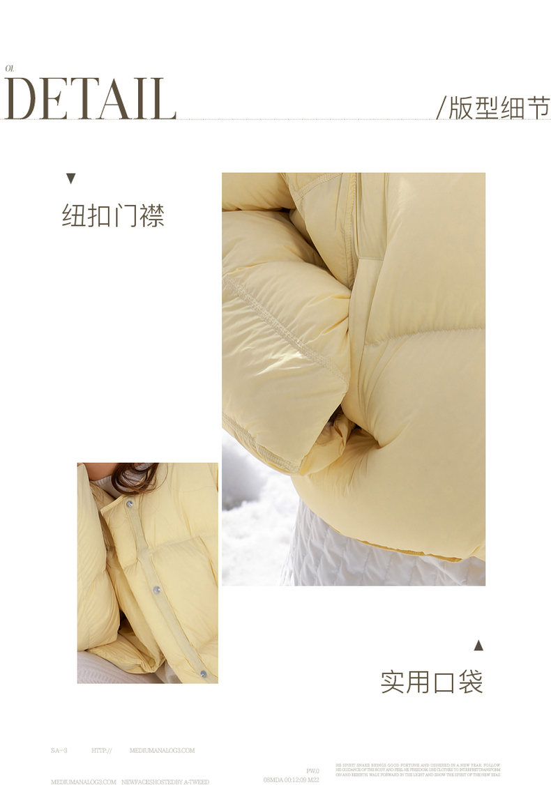 【防水易打理】三彩2025冬季新款宽松面包服90白鸭绒羽绒服短款M