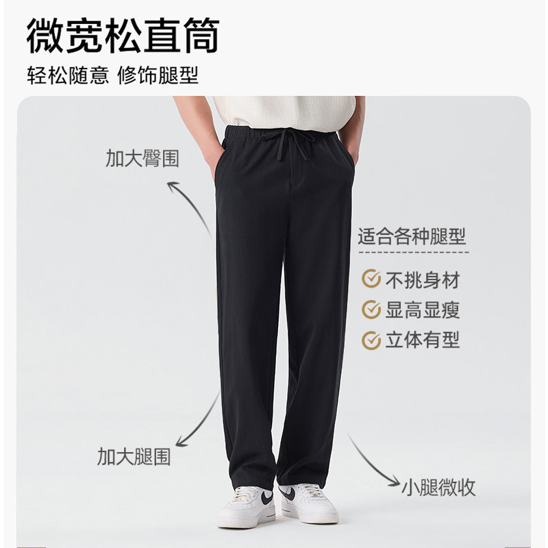 【门店同款】MAXNEW重磅亚麻休闲裤男宽松直筒裤透气商务长裤