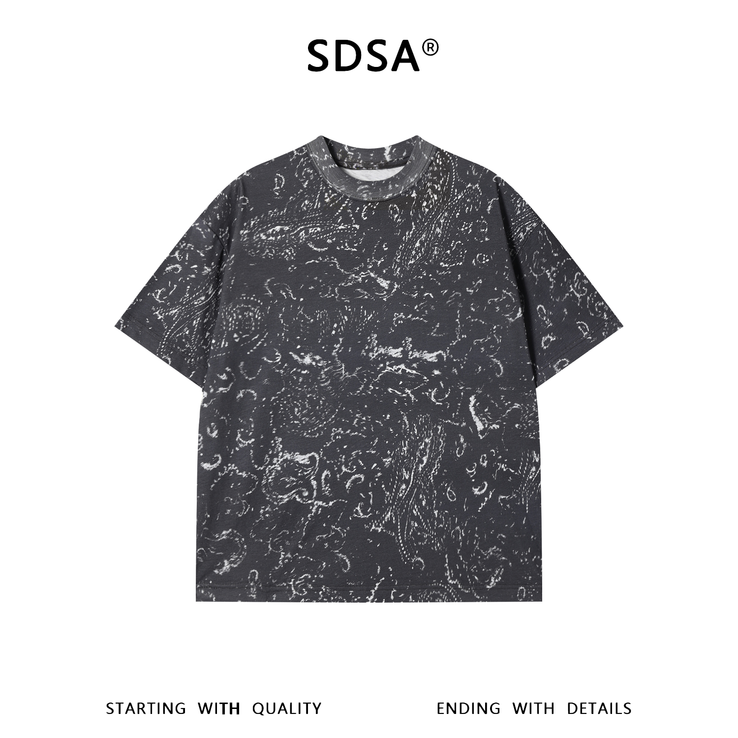 SDSA男装2026新款高贵轻奢时尚简约撞色满印圆领短袖T恤百搭上衣