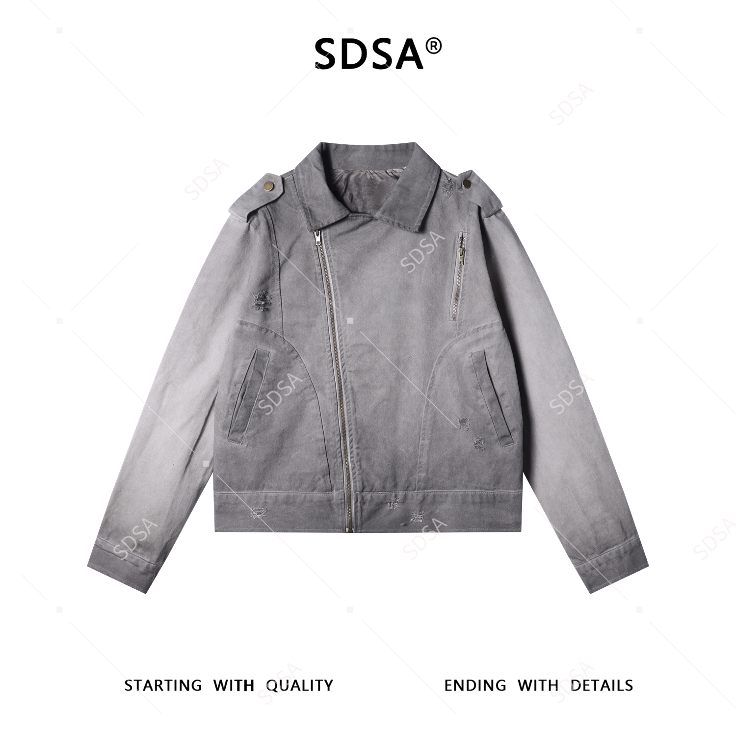 F7122SDSA秋冬新款痞帅男装简约做旧磨破斜拉链设计翻领夹克外套百搭