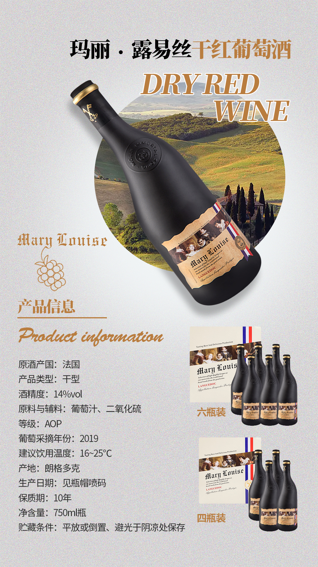 法国 玛丽露易丝“歪脖子”干红葡萄酒 750ml/瓶*4瓶 14%vol