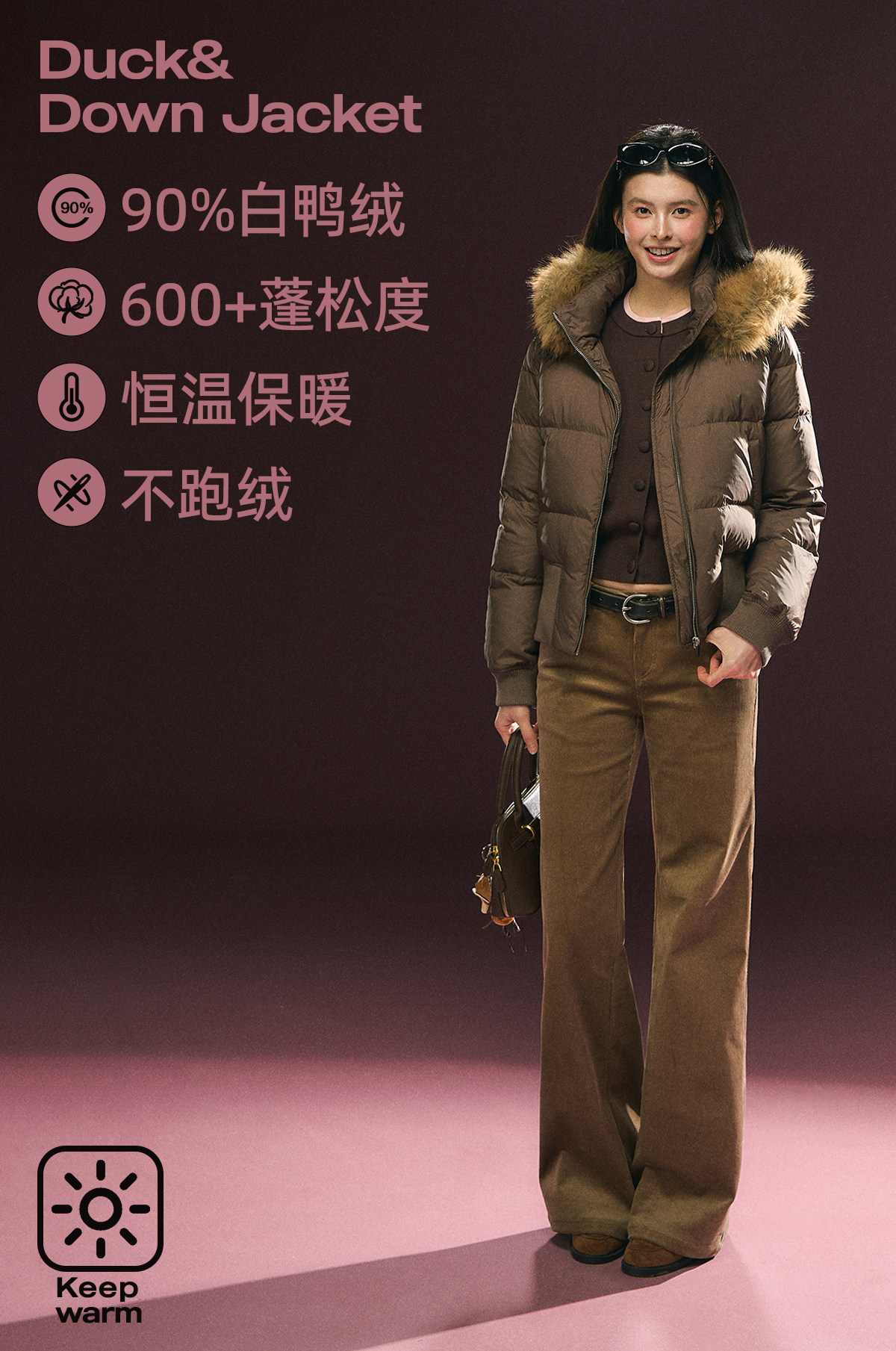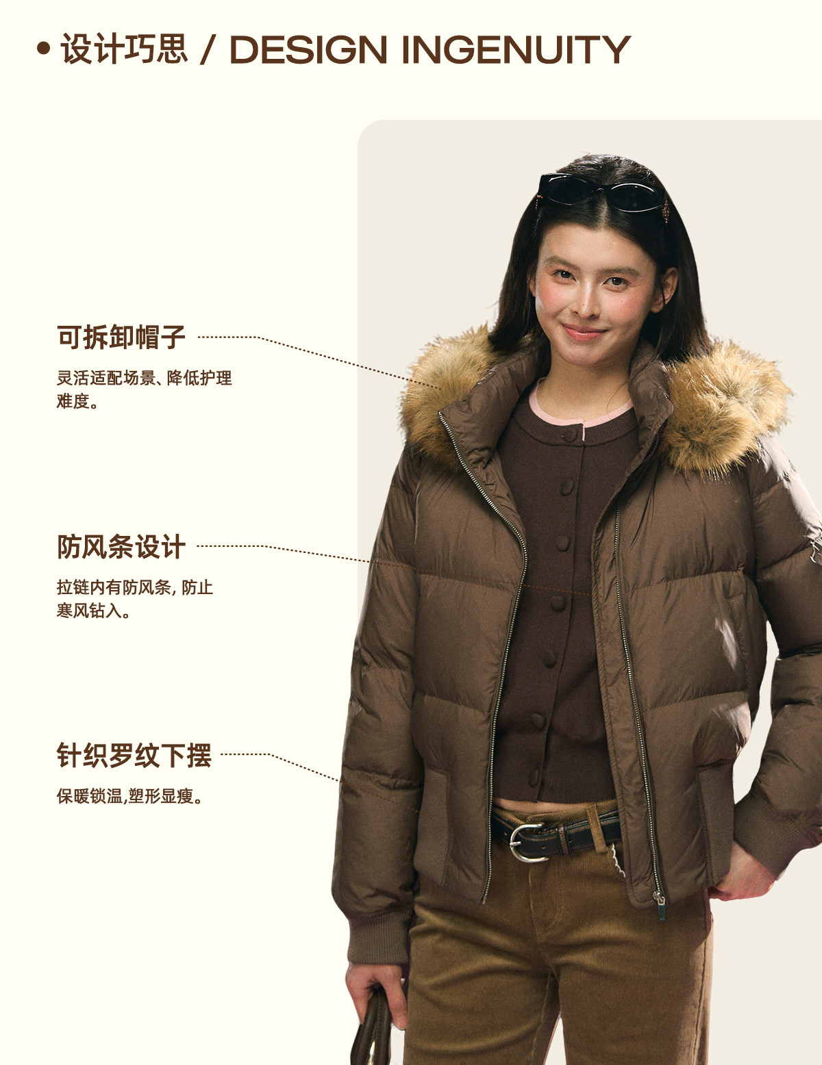 Ariseism 美式复古可拆卸帽子毛领羽绒服女冬季新款保暖上衣