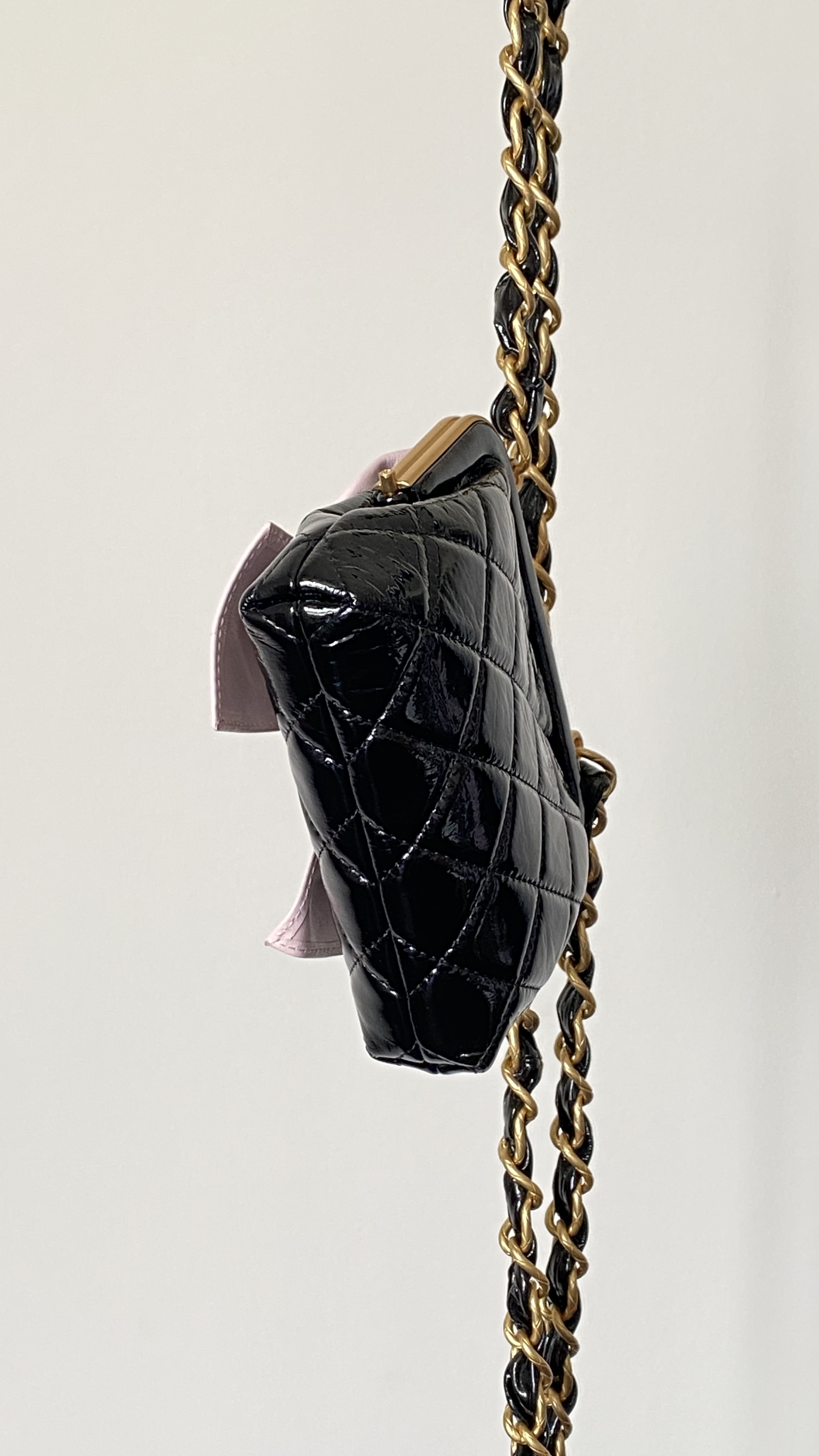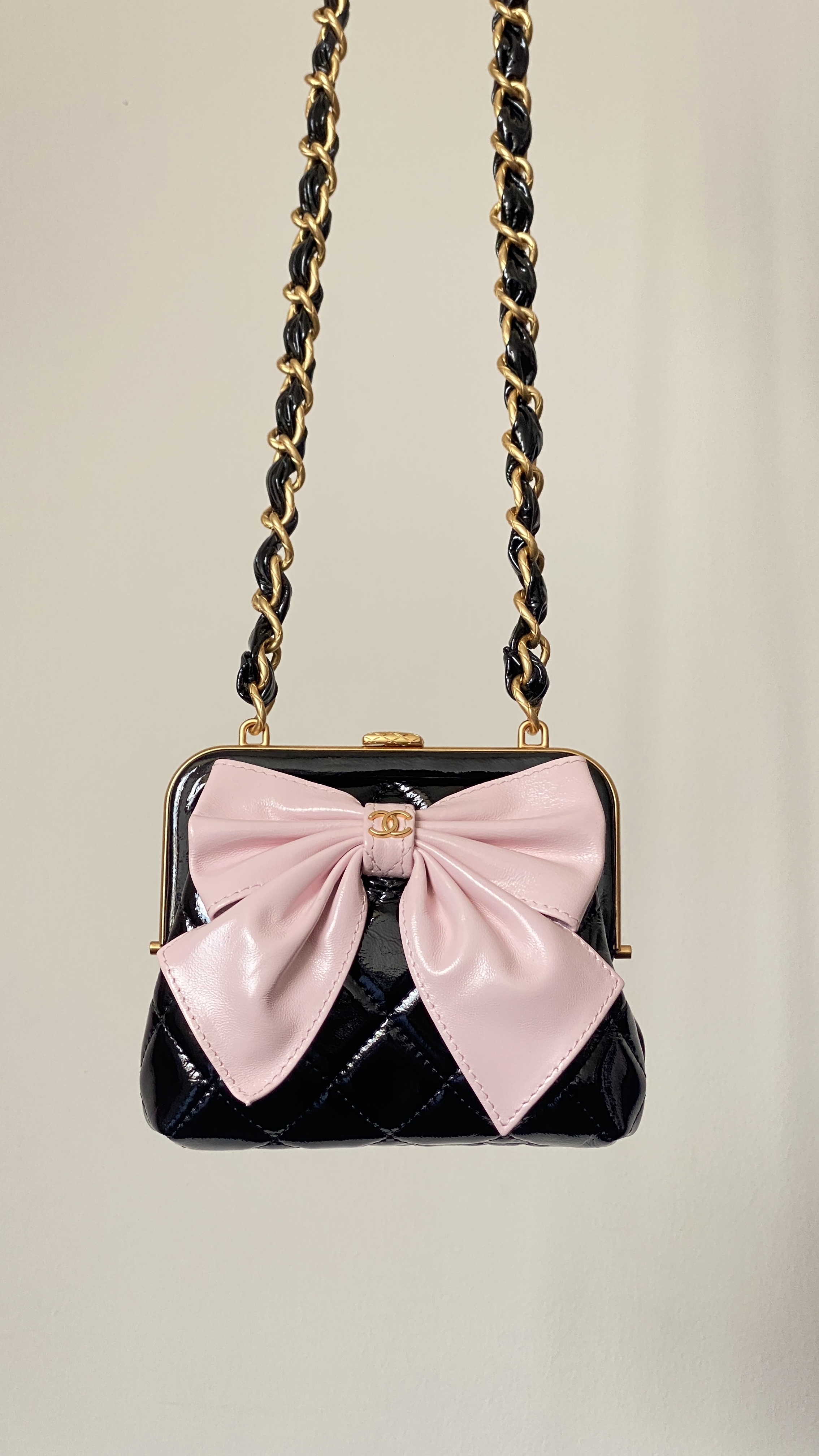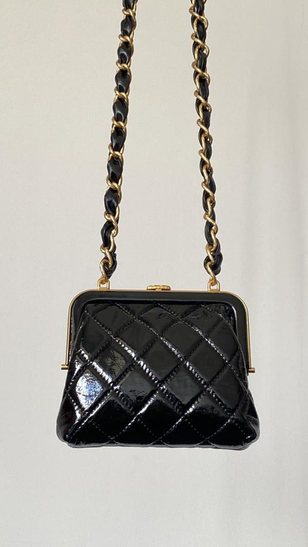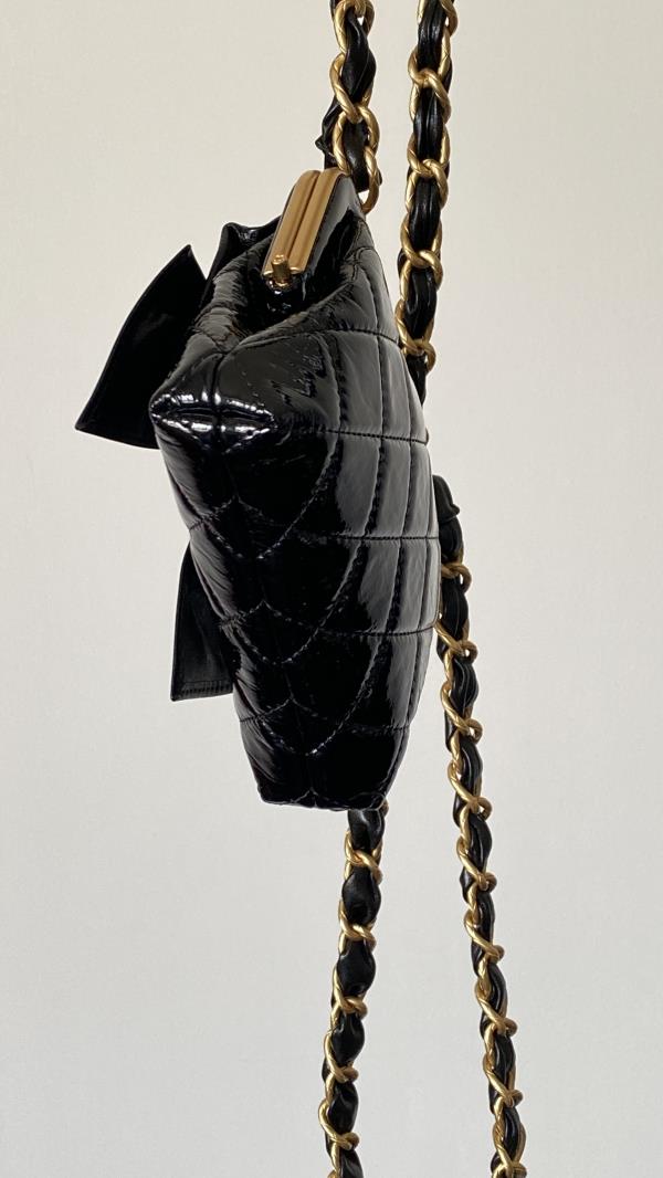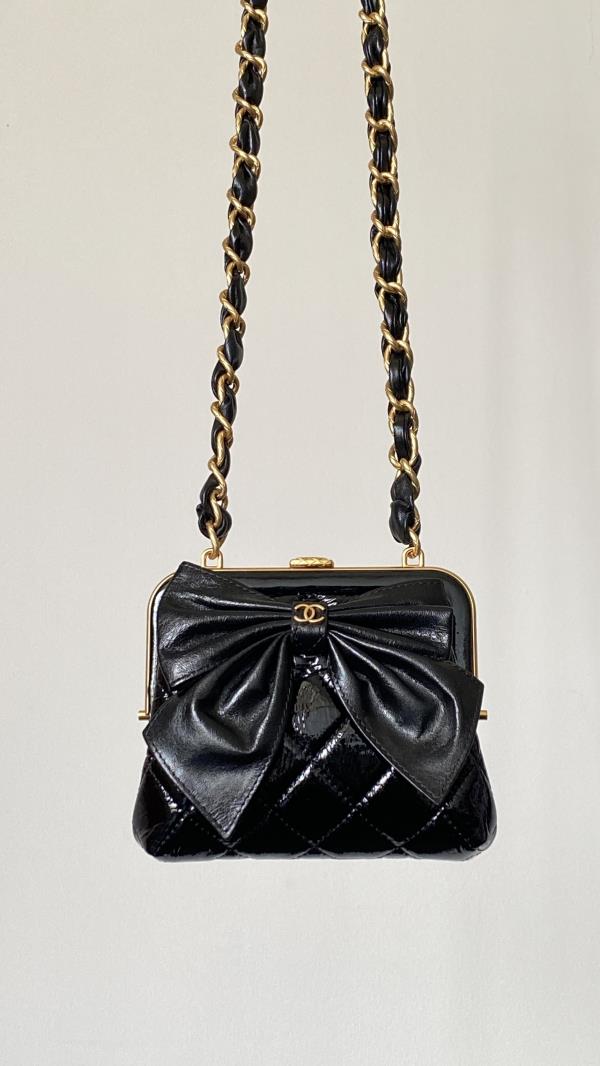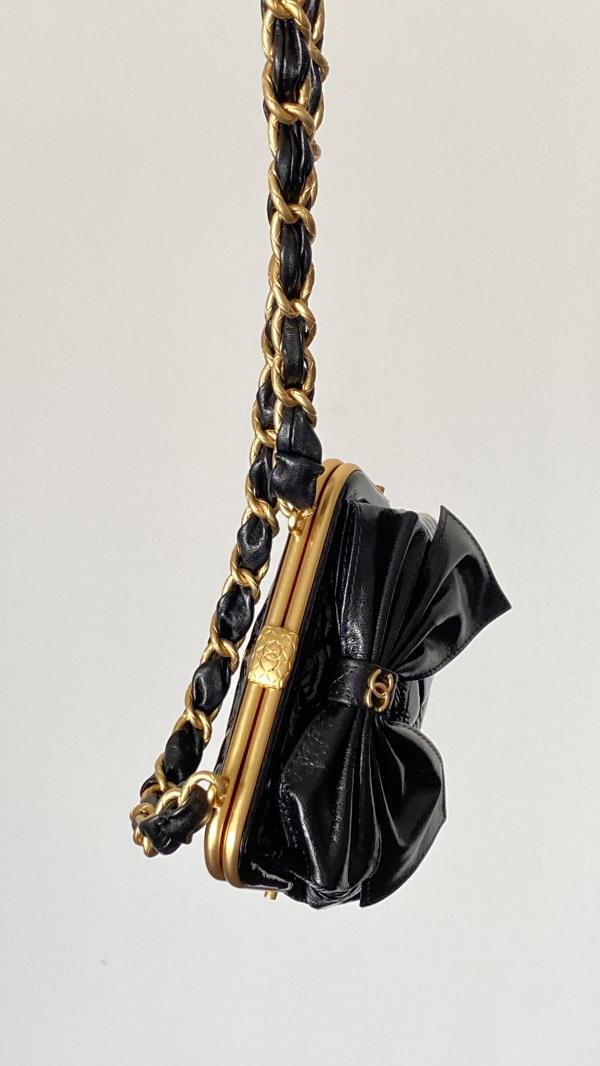 香奶奶 24A 金扣蝴蝶结 小羊皮拼金属 单肩斜挎包 女款