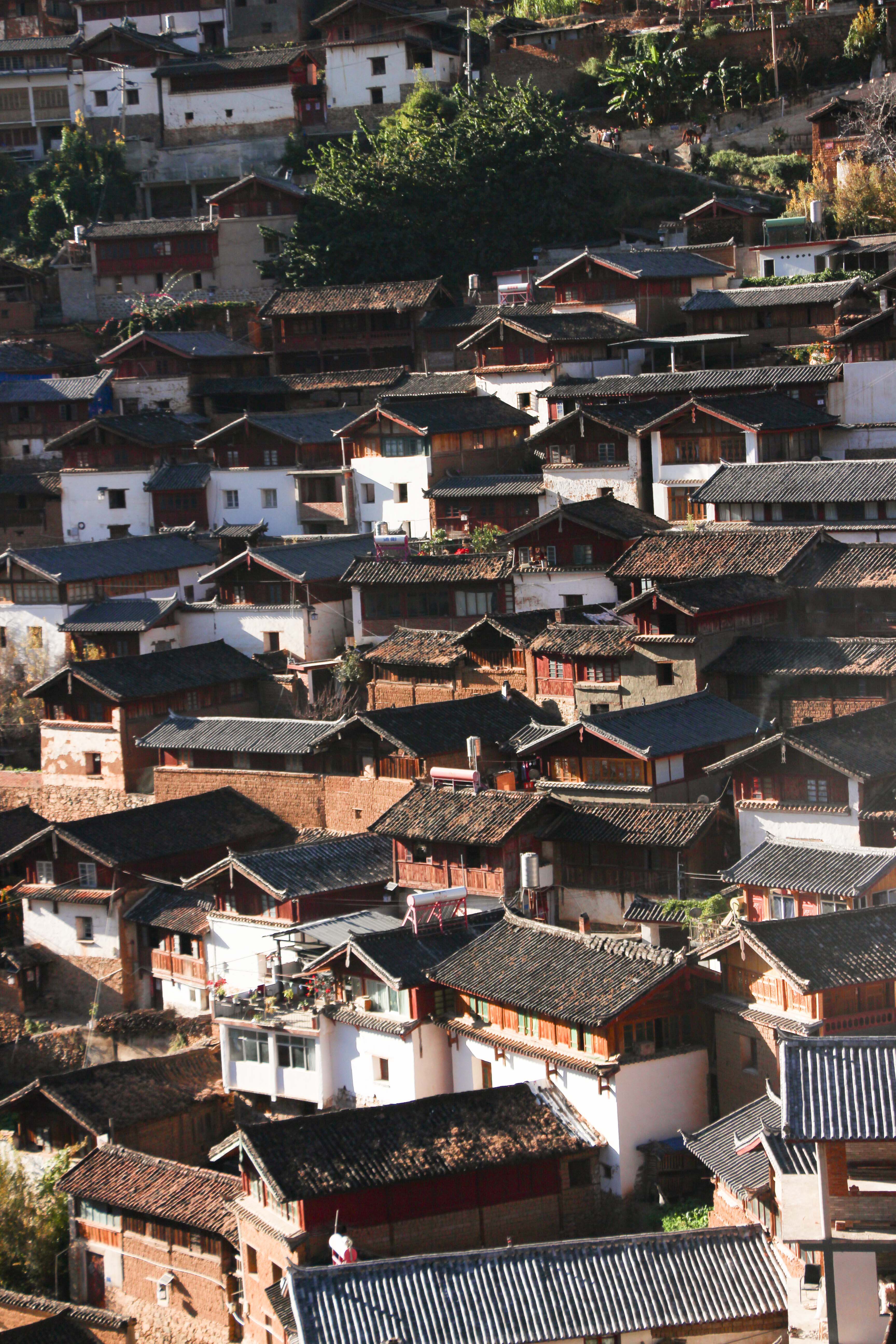 丽江宝山石头城纳西语称为"拉伯鲁盘坞",意为"宝山白石寨",城内瓦屋鳞鳞,巷道纵横,丽江纳西族居民辟岩建屋,房屋柱石和房沿石均随势打成,古朴自然,奇绝无穷。其三面皆是悬崖绝壁,一面石坡直插金沙江,仅有南北两座石门可供出入,是一座真正的天险之城。