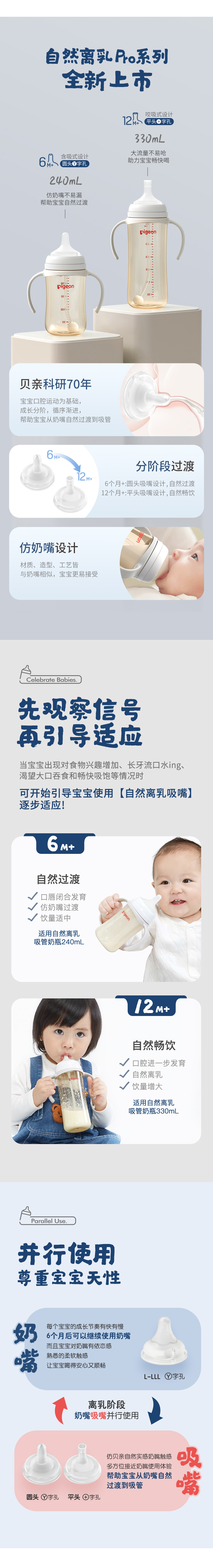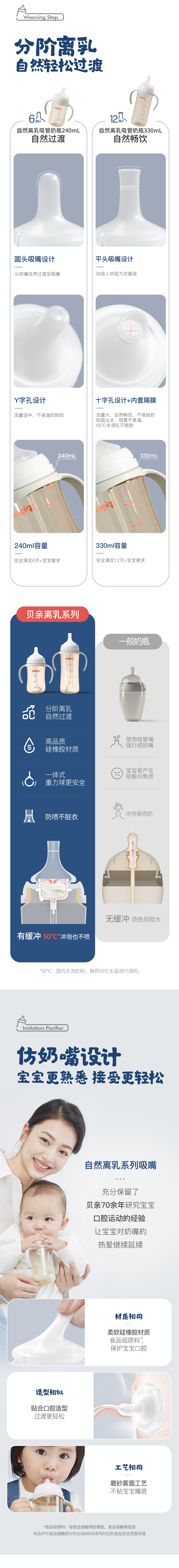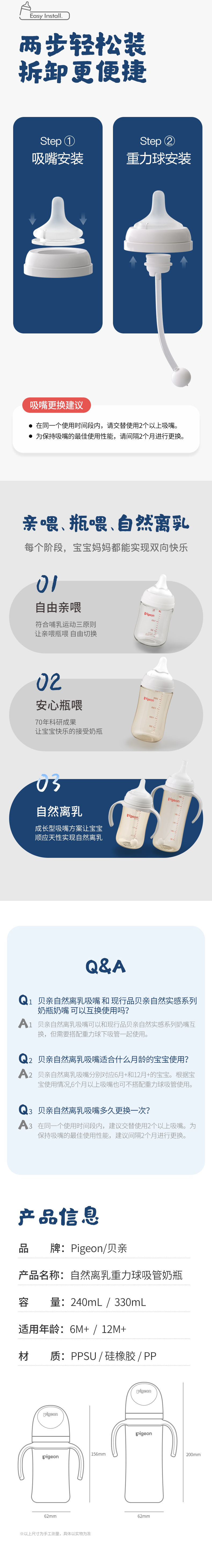 【满49元包邮】贝亲自然离乳重力球吸管PPSU奶瓶