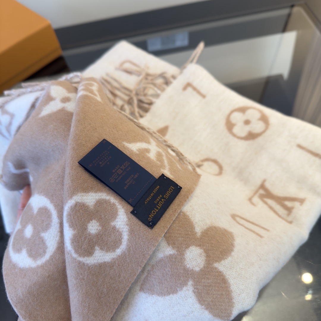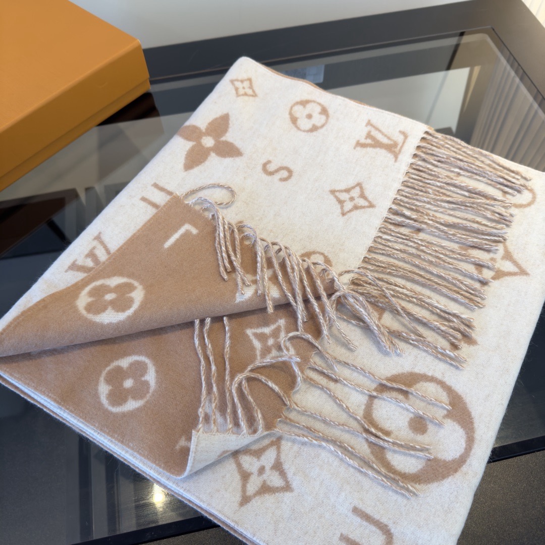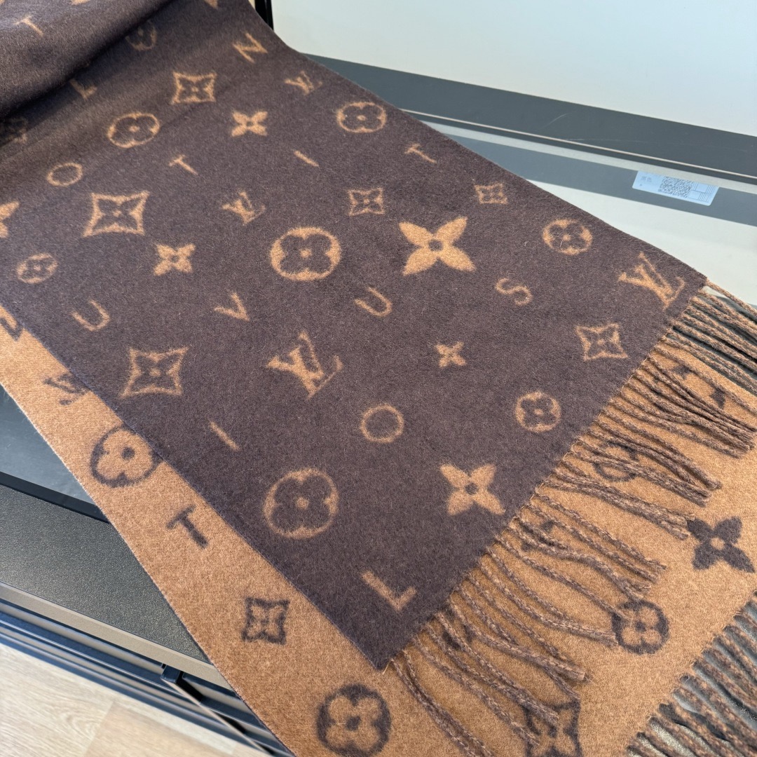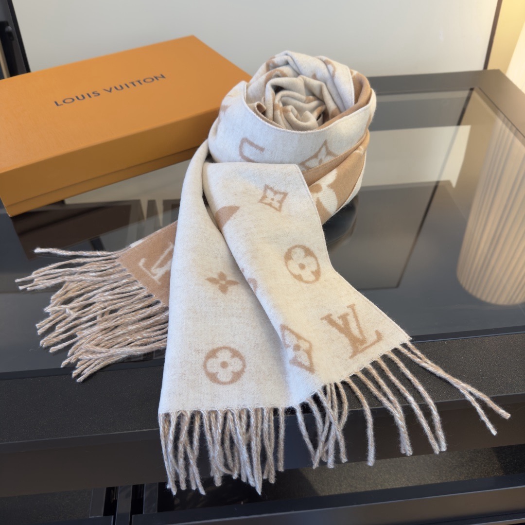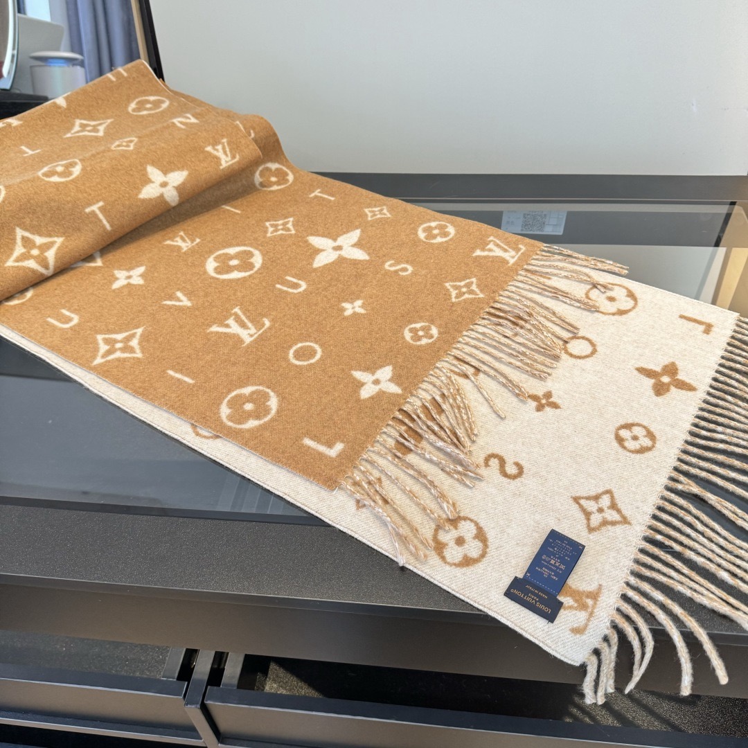 Reykjavik 2.0 围巾为柔软山羊绒标注 Monogram 花卉和 LV 字母,其间点缀品牌名称的单一字母,以摩登风姿焕新经典。加长设计适宜环绕颈部,亦可用作巴拉克拉法帽。 220 x40厘米(不含流苏),100% 山羊绒 Monogram 图案 流苏饰边