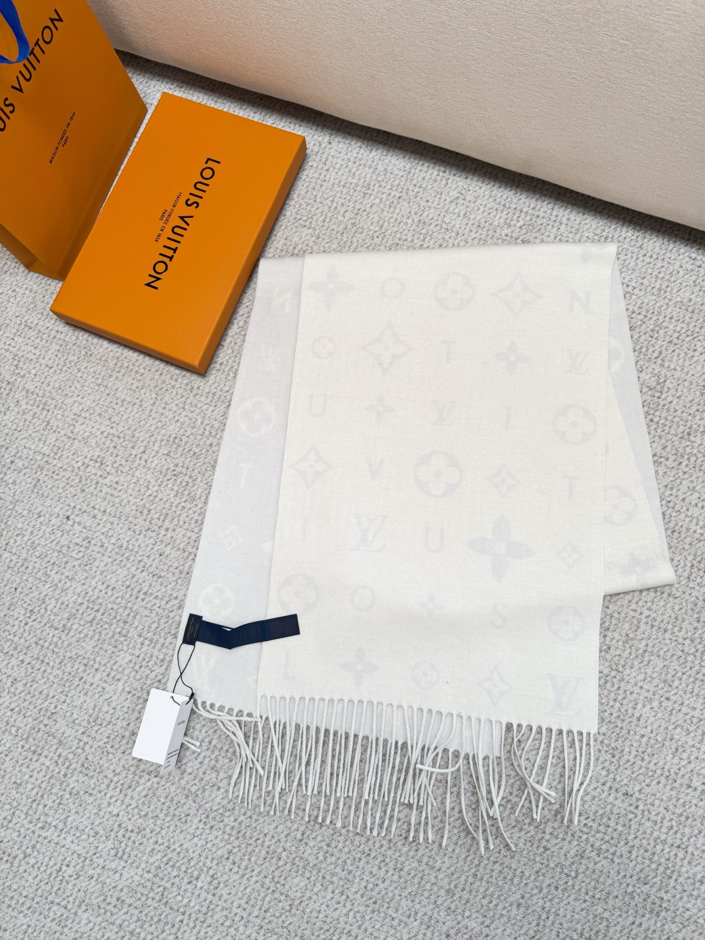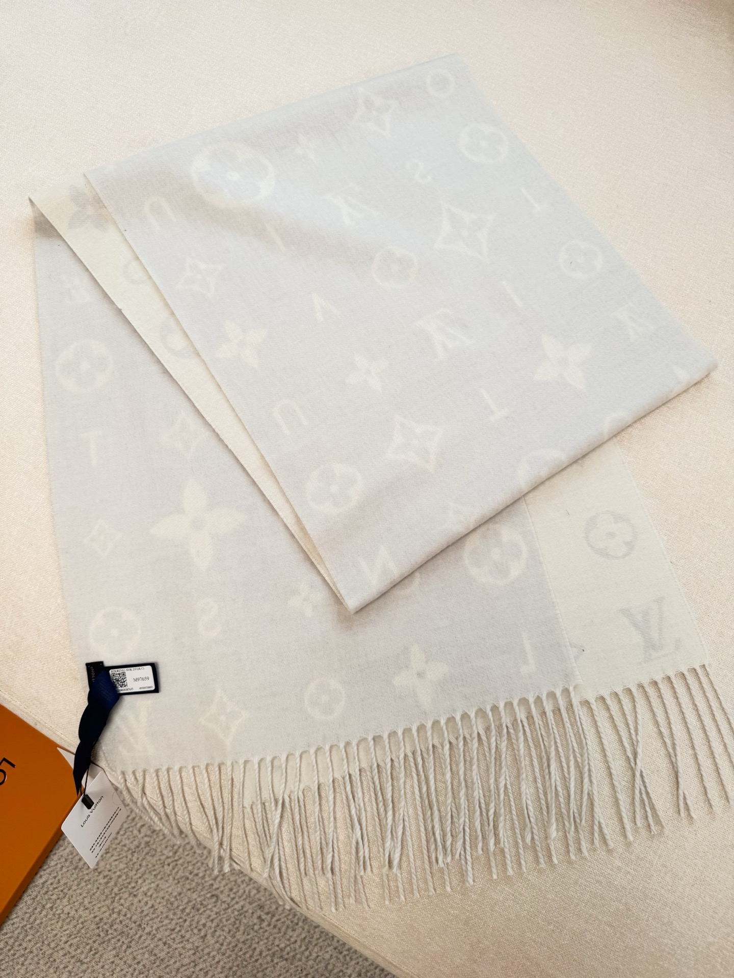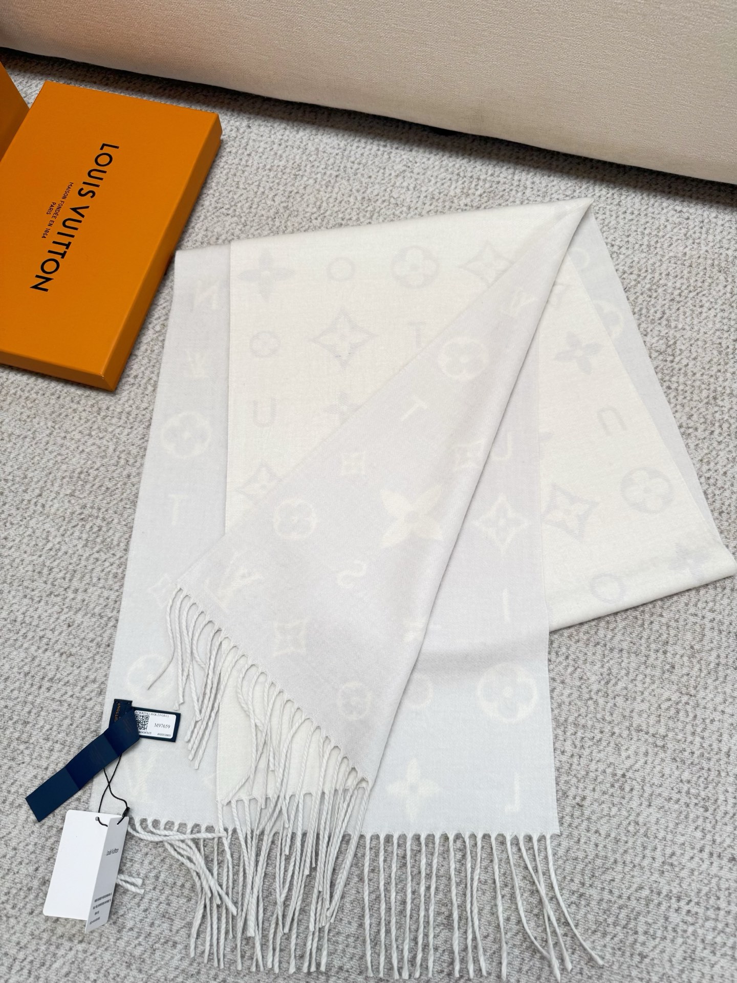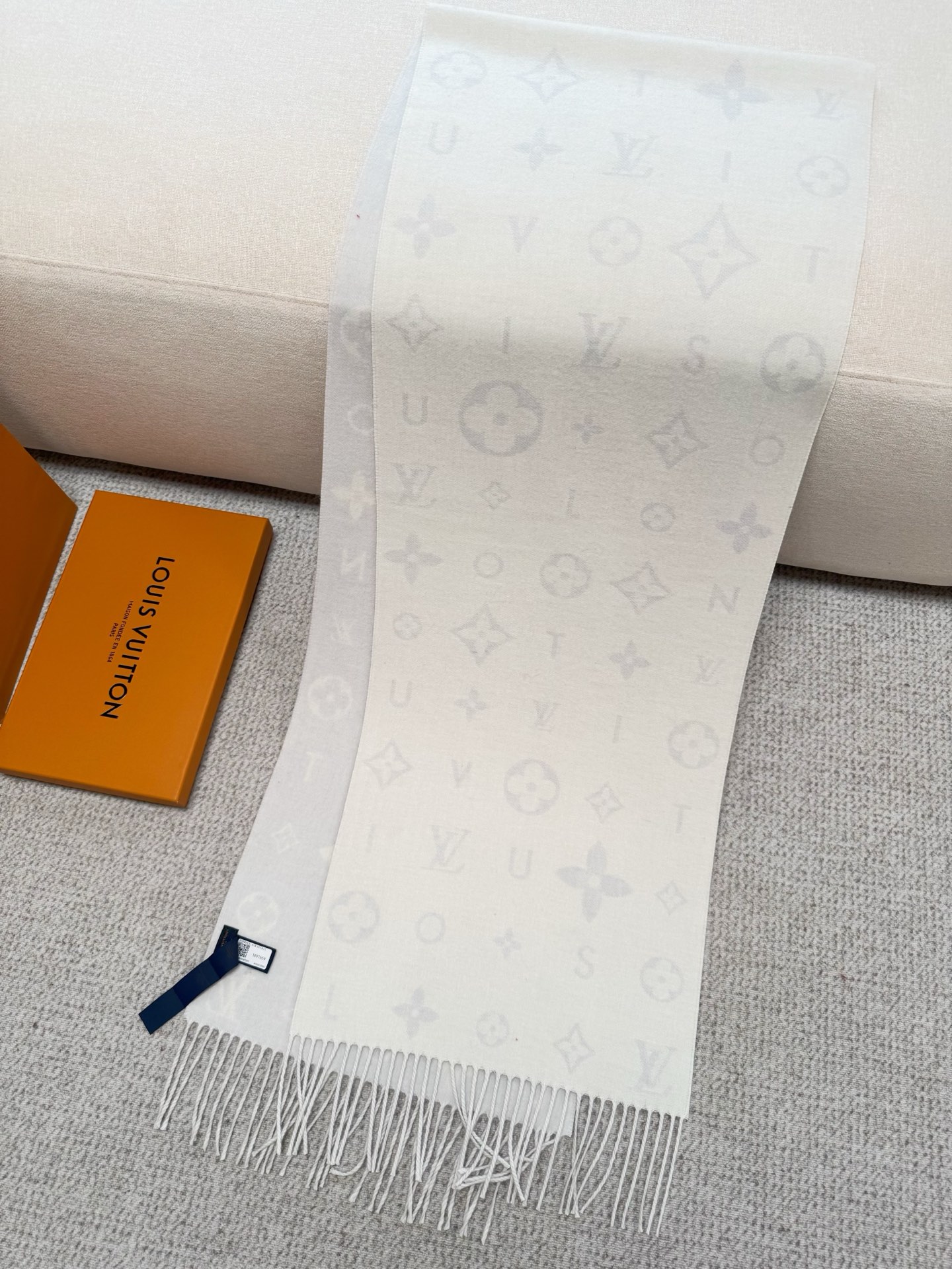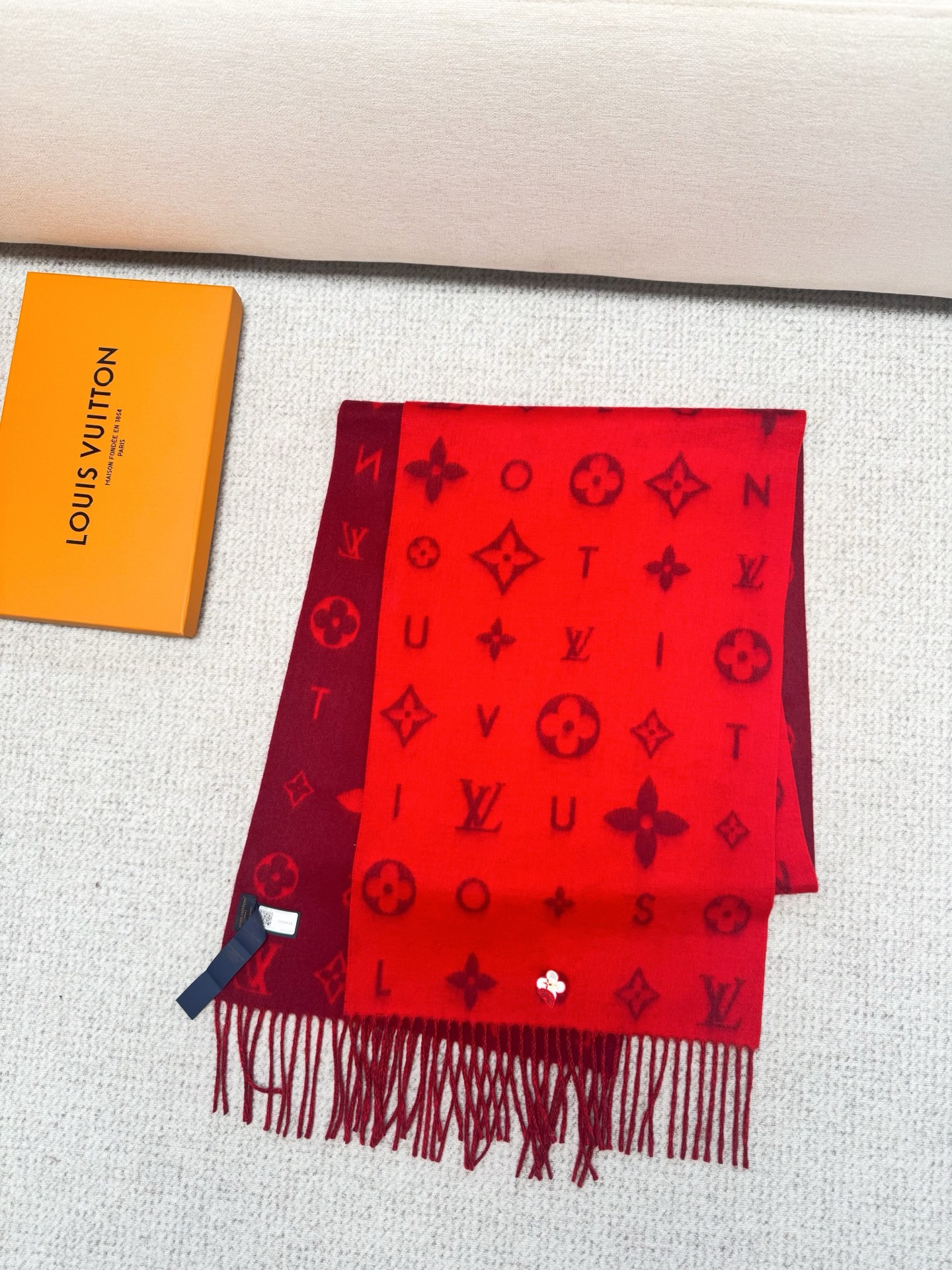 Reykjavik 2.0 围巾为柔软山羊绒标注 Monogram 花卉和 LV 字母,其间点缀品牌名称的单一字母,以摩登风姿焕新经典。加长设计适宜环绕颈部,亦可用作巴拉克拉法帽。 220 x40厘米(不含流苏),100% 山羊绒 Monogram 图案 流苏饰边