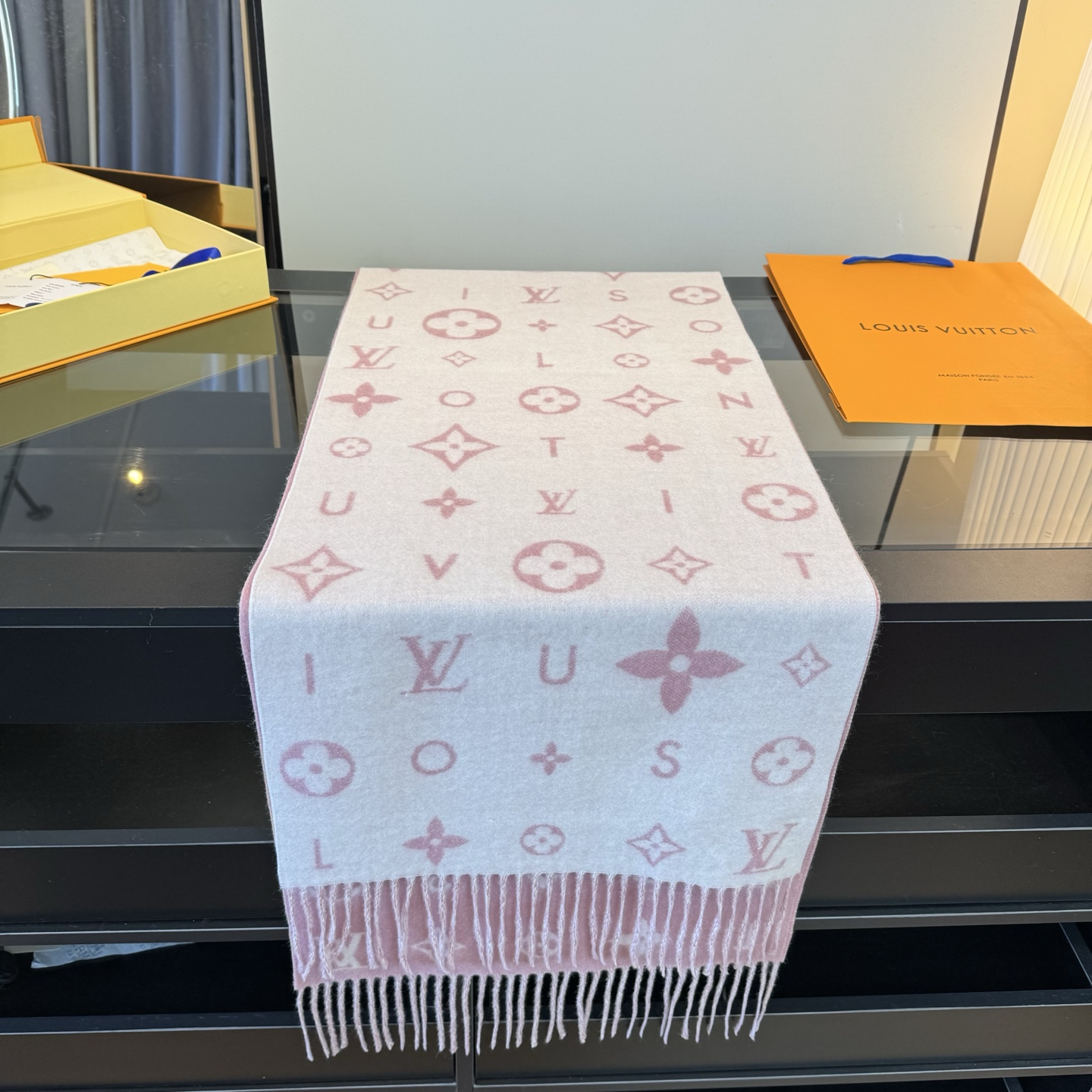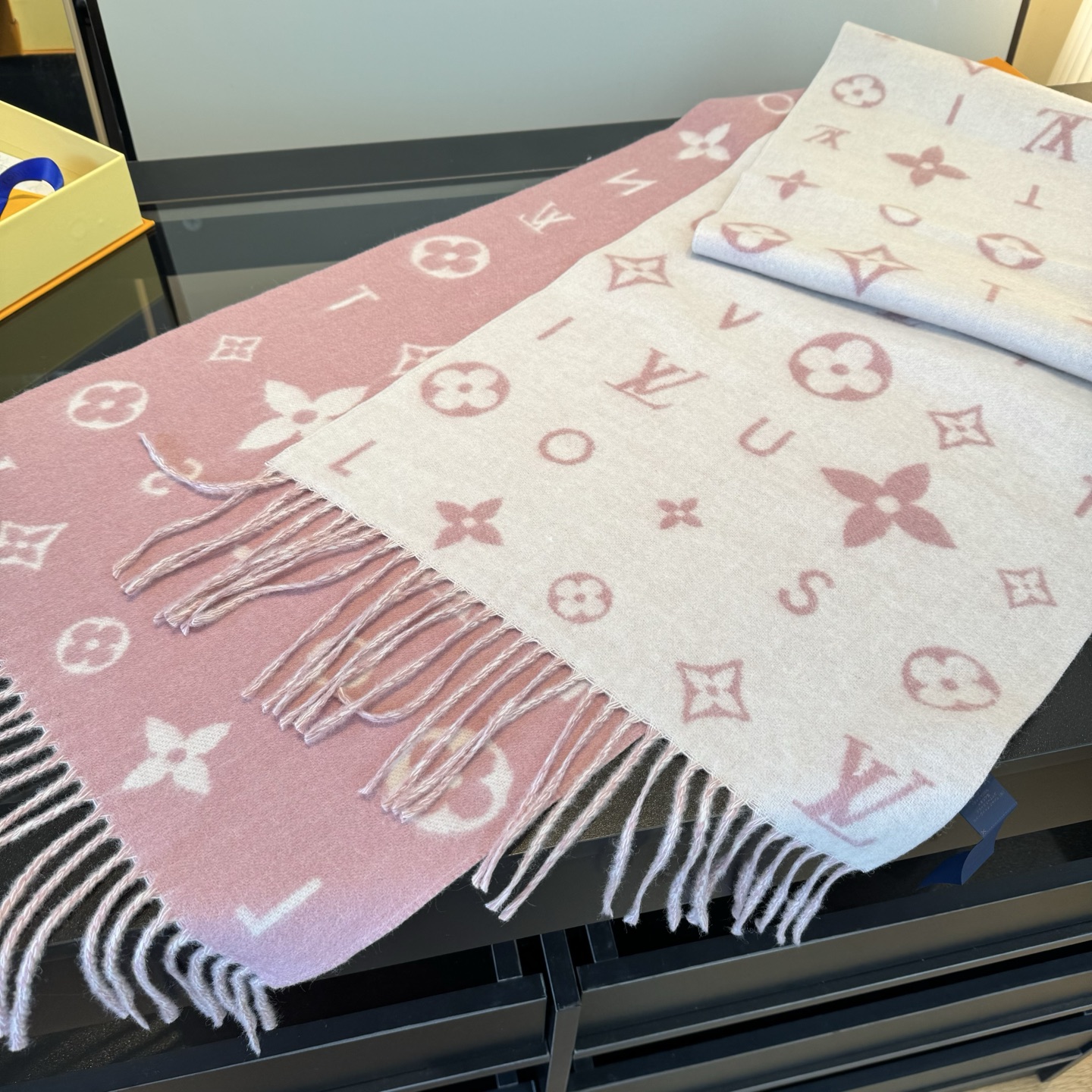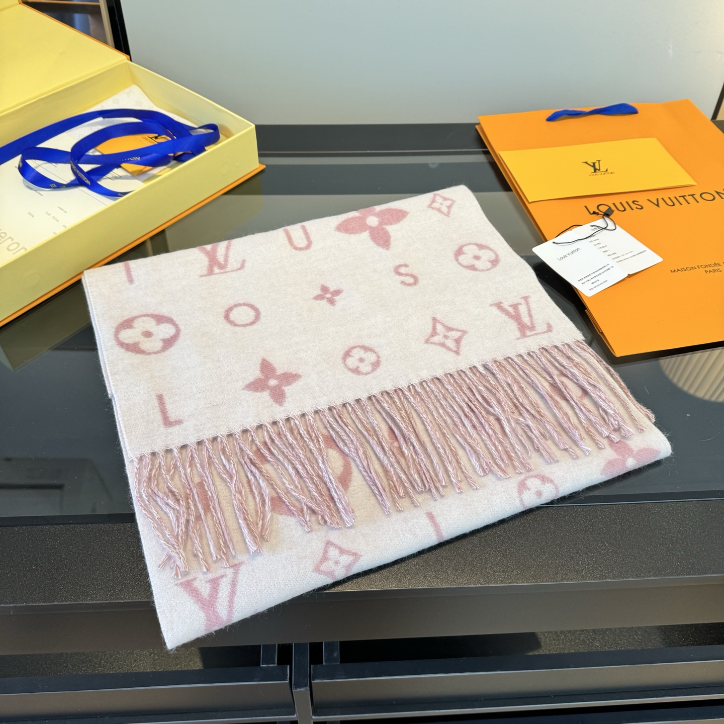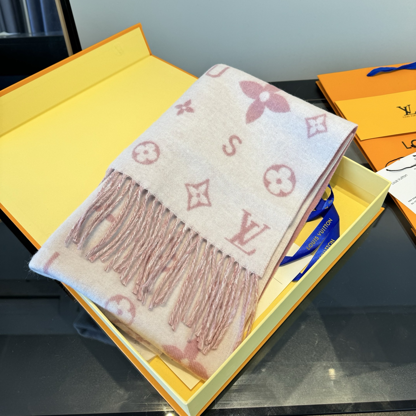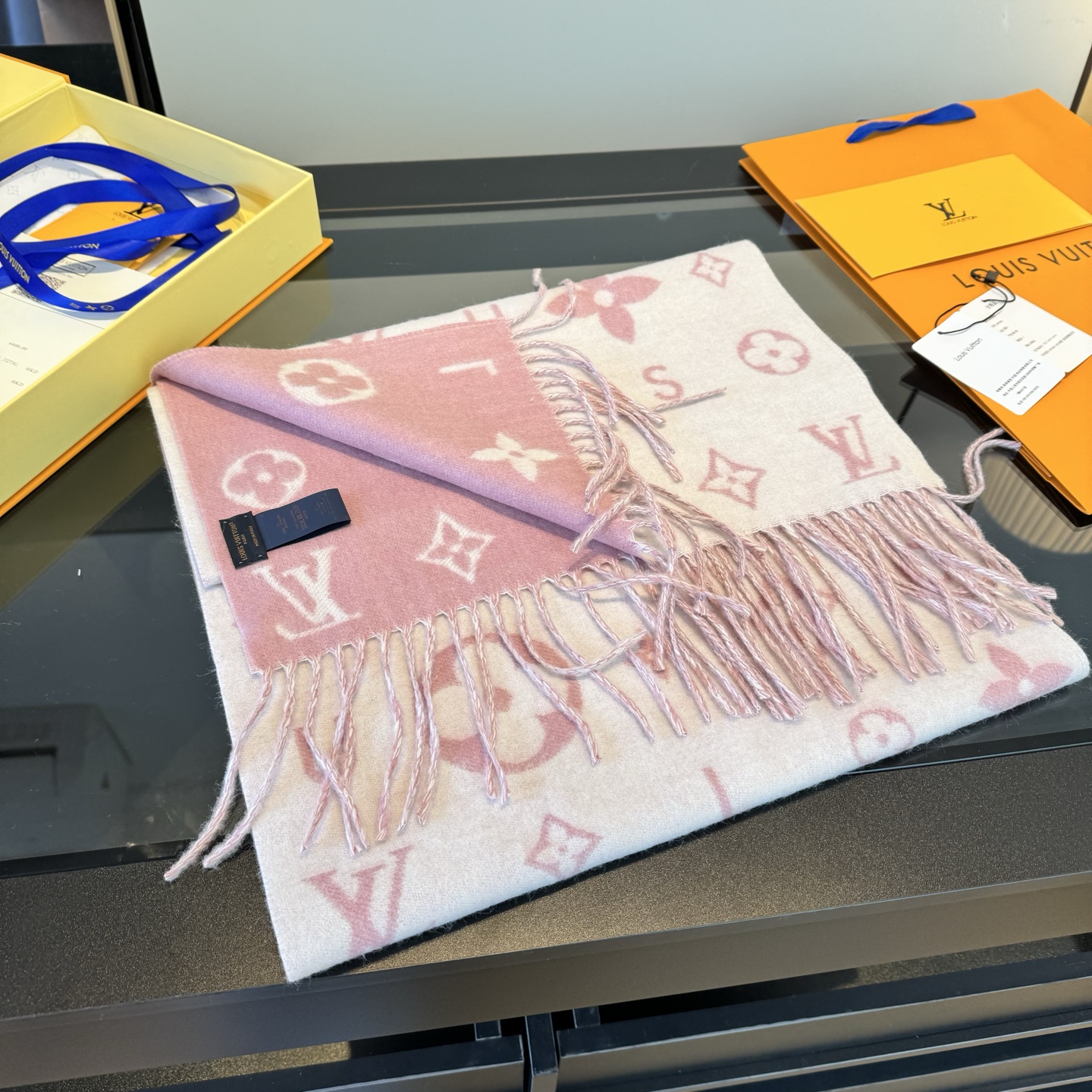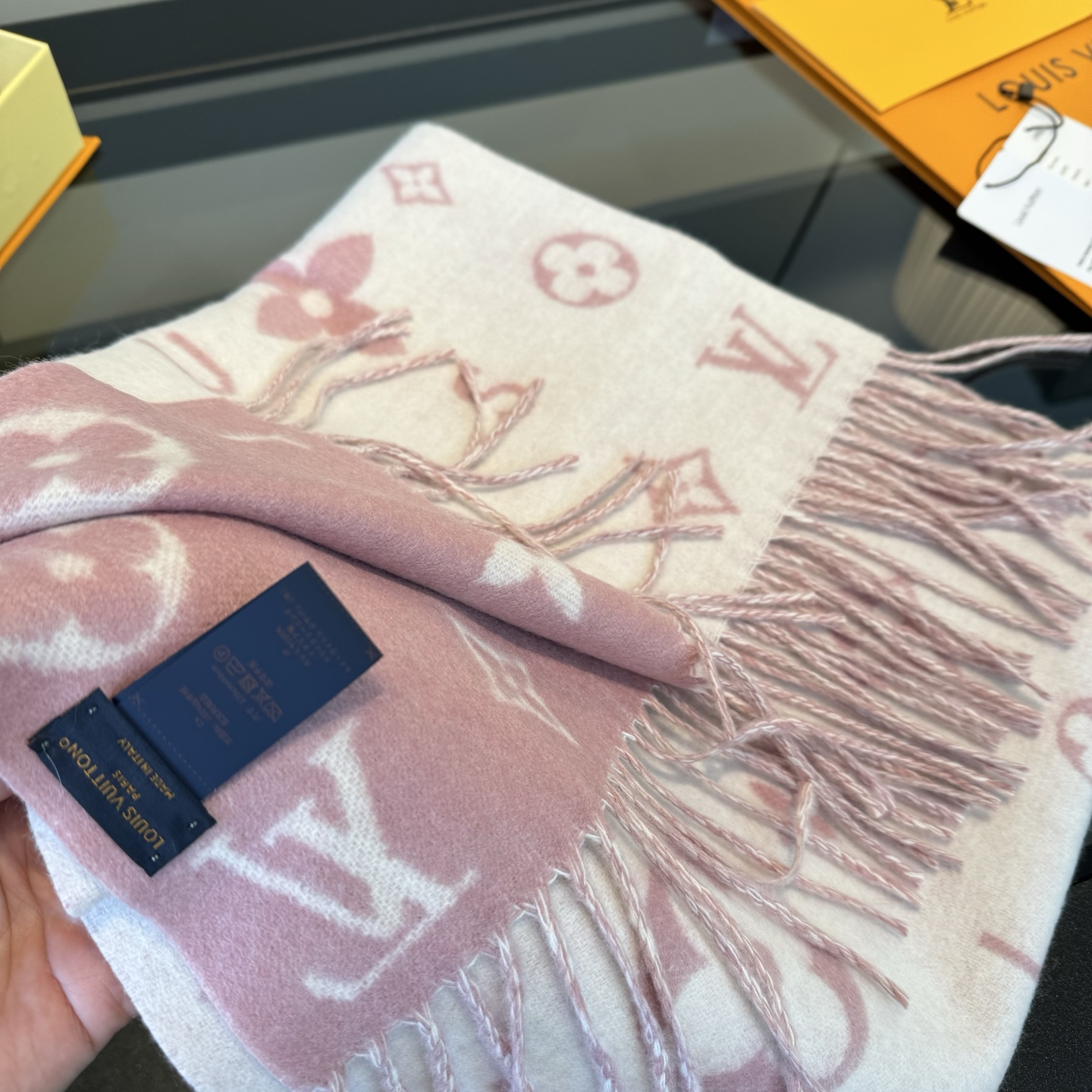 Reykjavik 2.0 围巾为柔软山羊绒标注 Monogram 花卉和 LV 字母,其间点缀品牌名称的单一字母,以摩登风姿焕新经典。加长设计适宜环绕颈部,亦可用作巴拉克拉法帽。 220 x40厘米(不含流苏),100% 山羊绒 Monogram 图案 流苏饰边