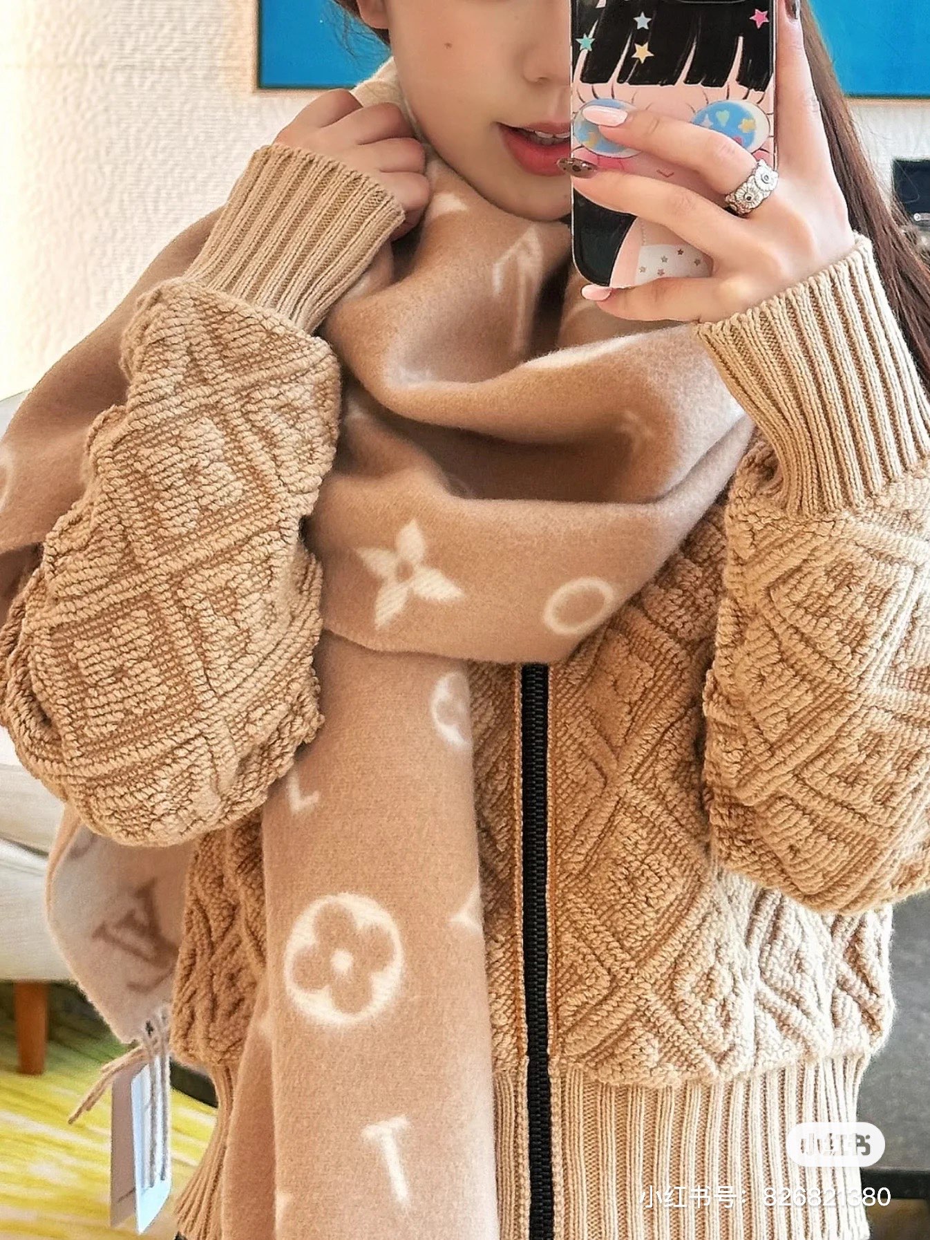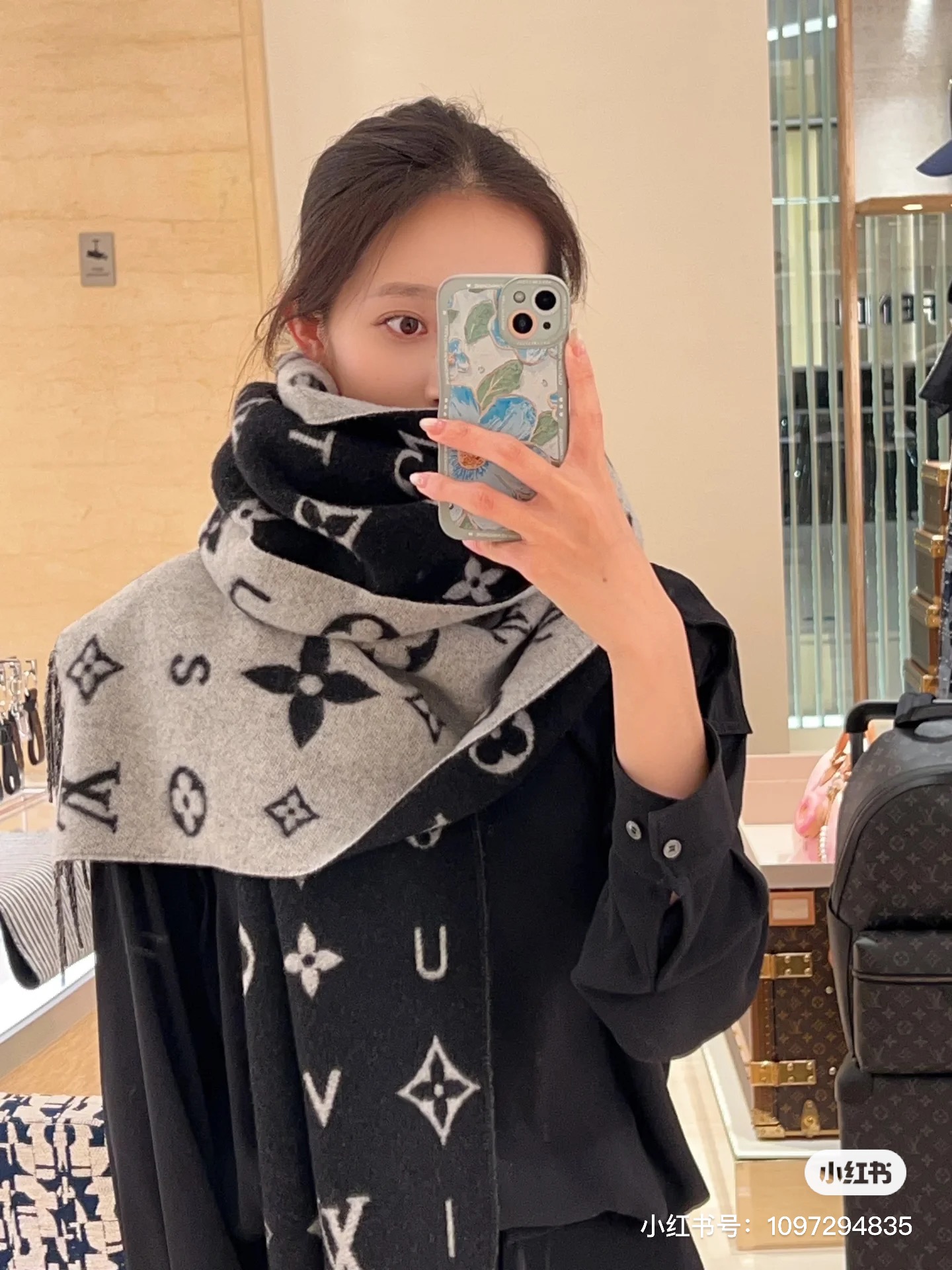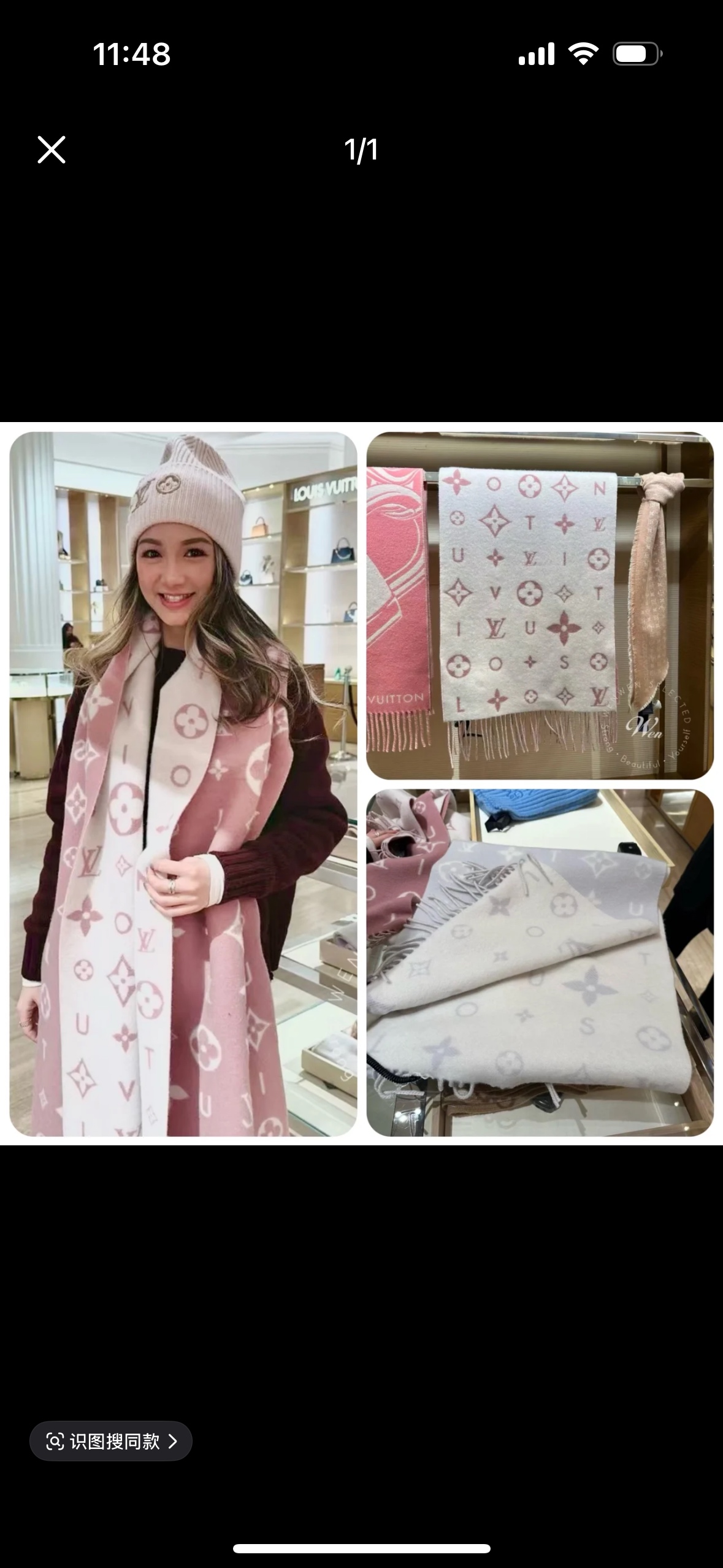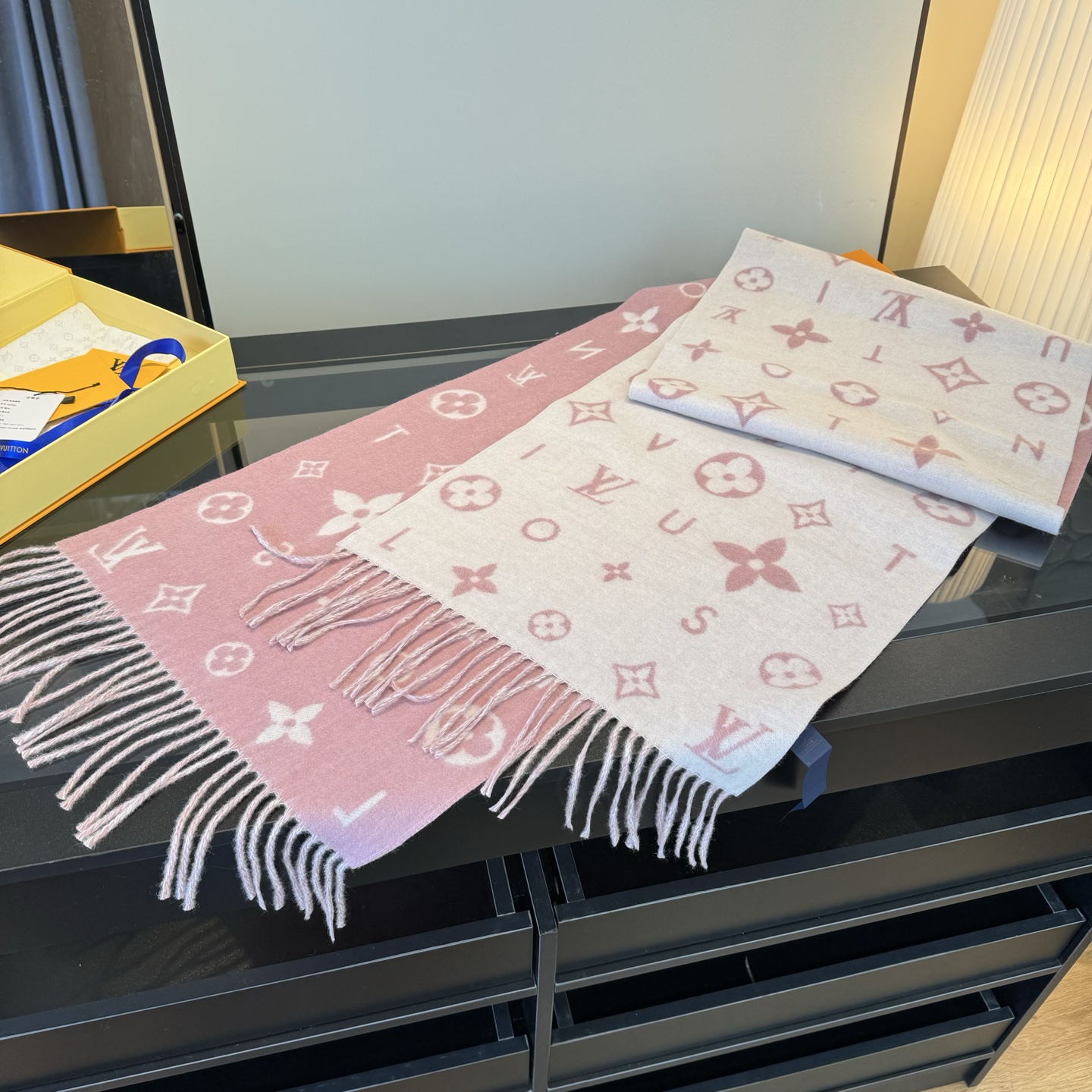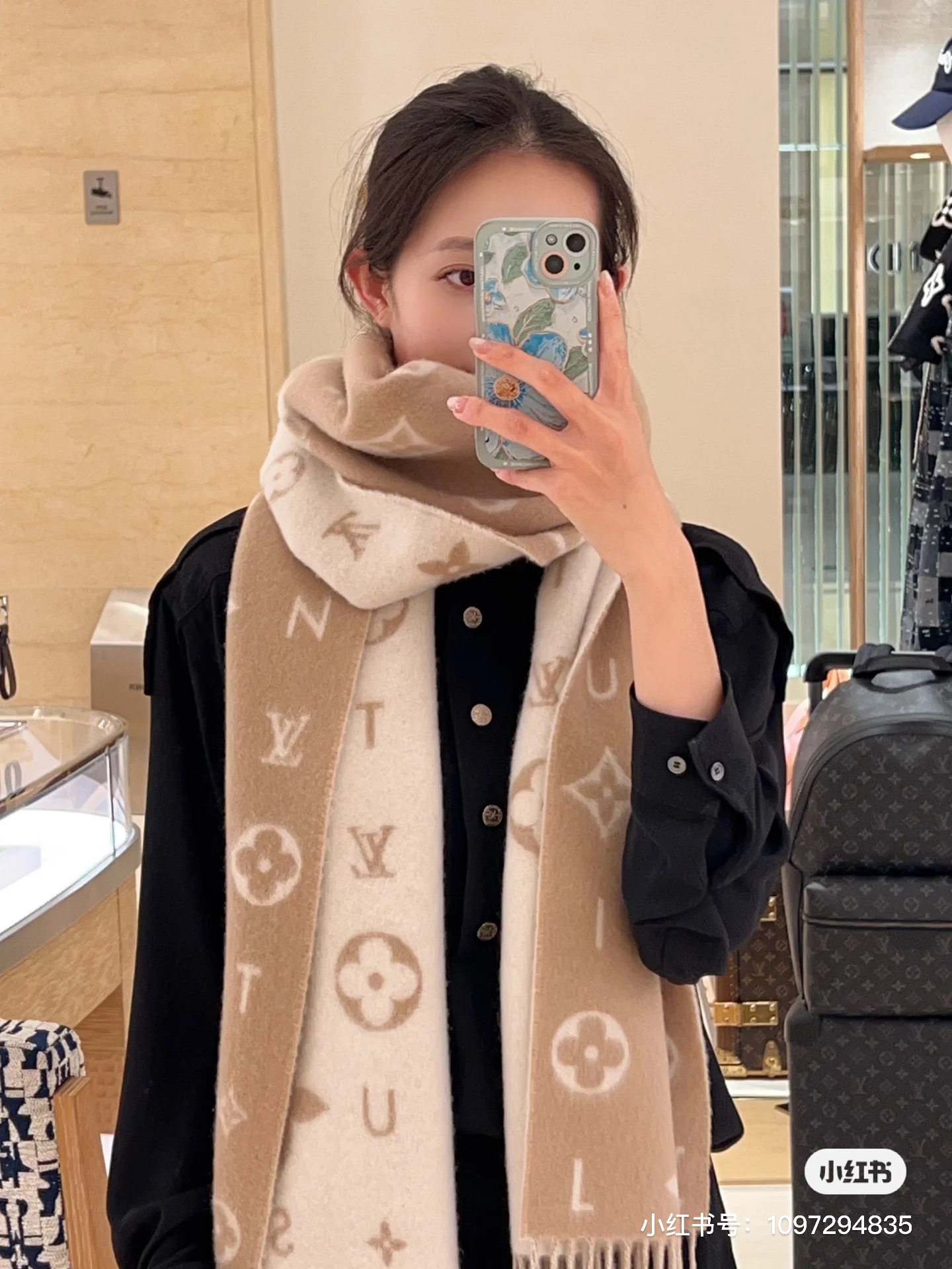 Reykjavik 2.0 围巾为柔软山羊绒标注 Monogram 花卉和 LV 字母,其间点缀品牌名称的单一字母,以摩登风姿焕新经典。加长设计适宜环绕颈部,亦可用作巴拉克拉法帽。 220 x40厘米(不含流苏),100% 山羊绒 Monogram 图案 流苏饰边