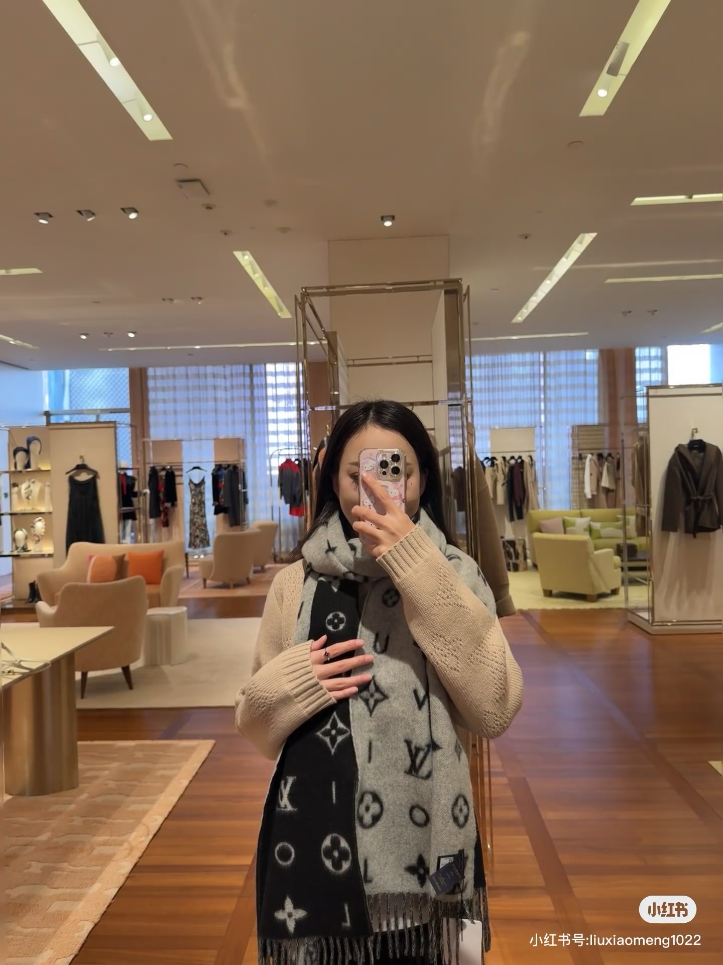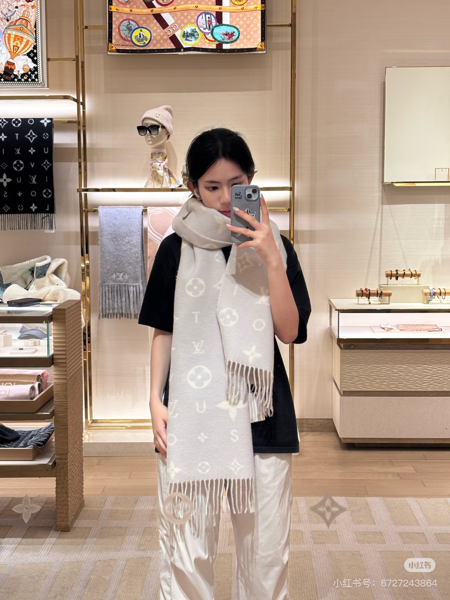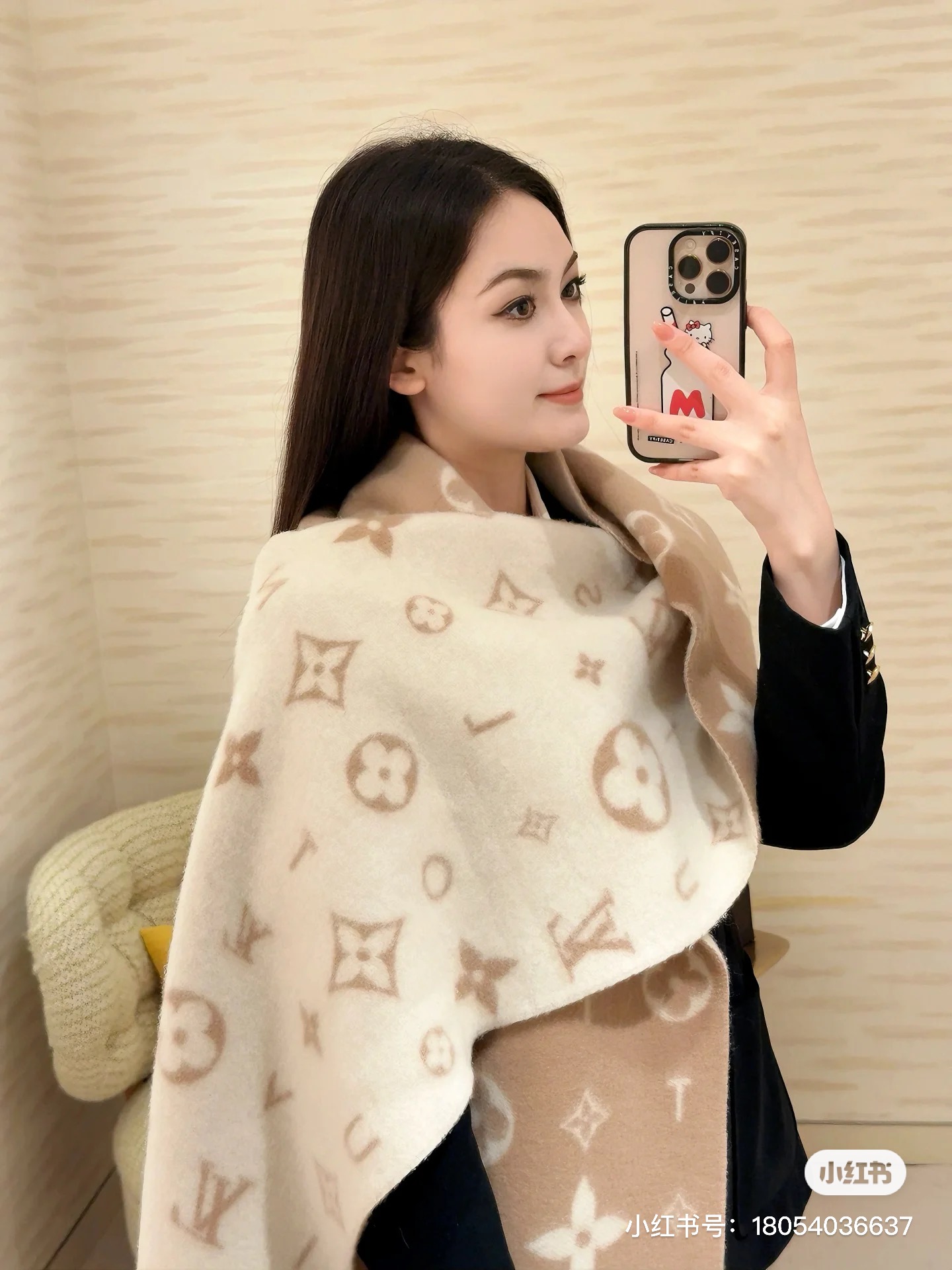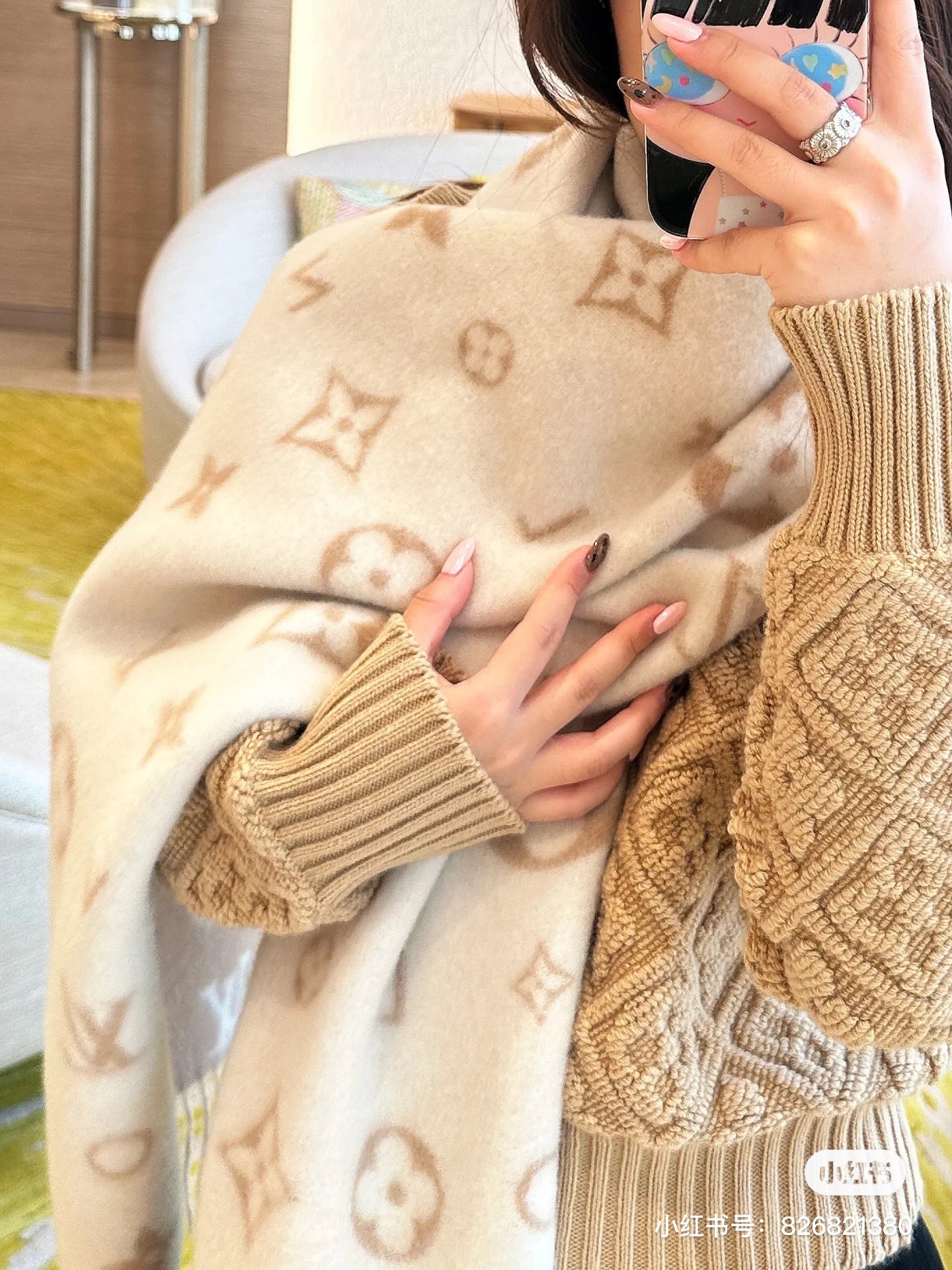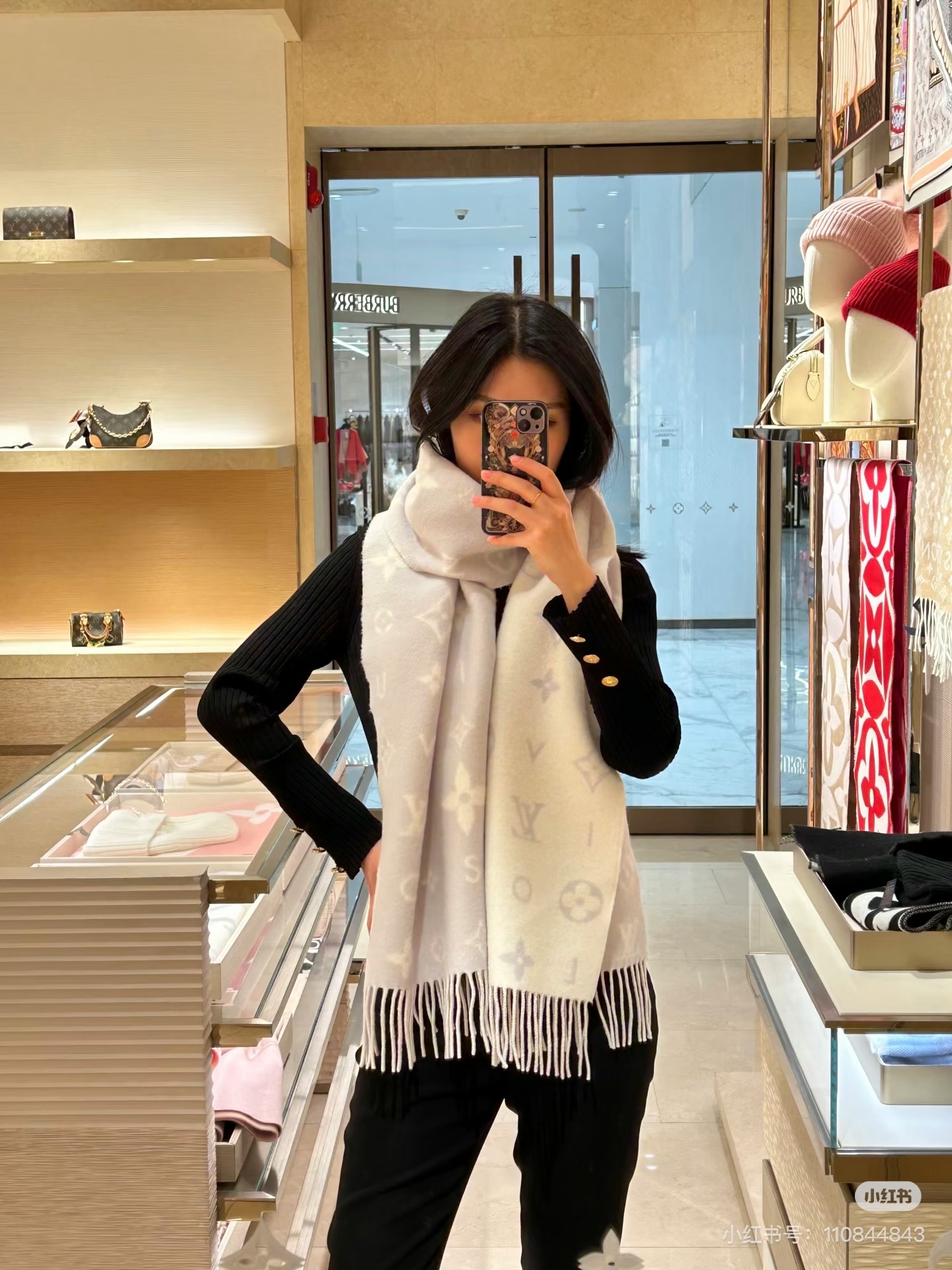 Reykjavik 2.0 围巾为柔软山羊绒标注 Monogram 花卉和 LV 字母,其间点缀品牌名称的单一字母,以摩登风姿焕新经典。加长设计适宜环绕颈部,亦可用作巴拉克拉法帽。 220 x40厘米(不含流苏),100% 山羊绒 Monogram 图案 流苏饰边