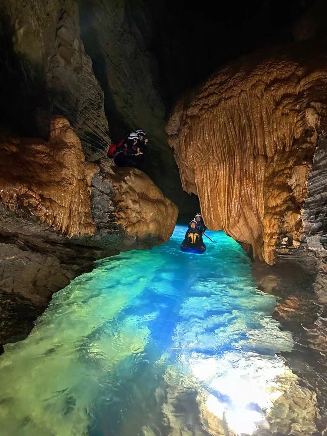 湖南吉首市集合出发,车程1小时直达洞口。洞里游玩5-6小时。体验项目地下河桨板,洞穴跳水,人体漂流。还有支洞的边石坝,星空洞道打卡。