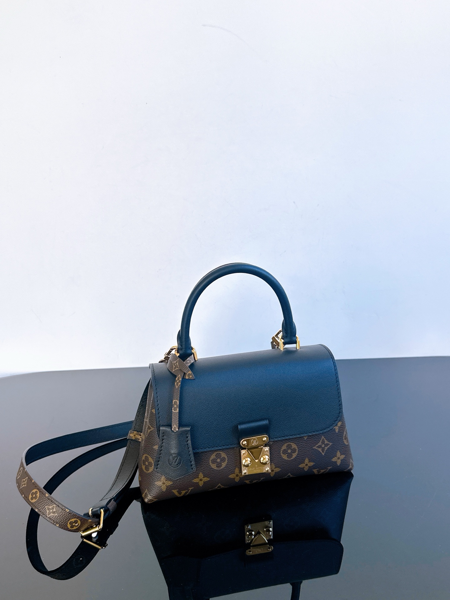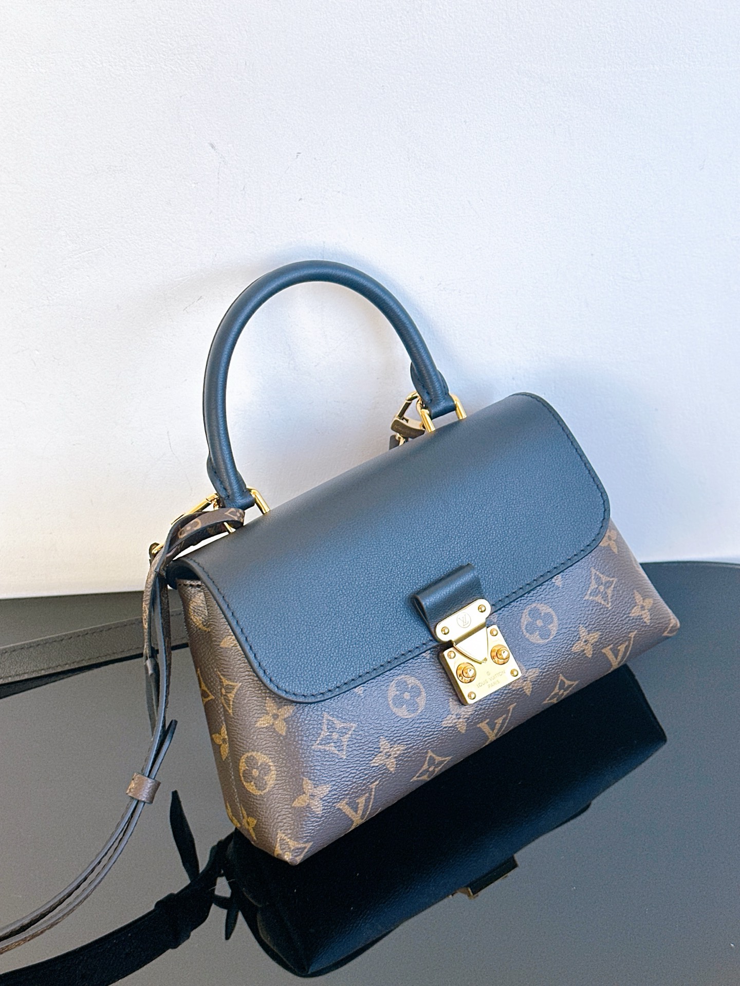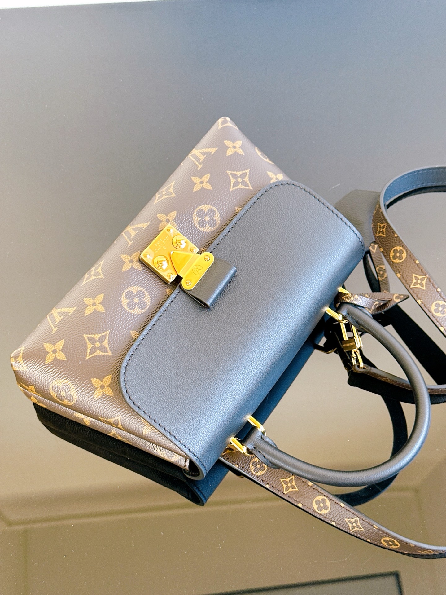 经典Monogram老花与深邃黑色皮革碰撞,复古优雅中透着摩登气场。标志性S-lock锁扣镌刻品牌基因,圆润手柄与可调节肩带解锁手提、斜挎双模式,无论是通勤职场还是周末漫步,都能轻松hold住优雅姿态,是永不过时的法式精致之选~ 一眼沦陷的撞色美学,老花帆布的复古肌理与细腻皮革的温润触感交叠,金色五金在光线下流转光泽。小巧包身藏着实用容量,手机、卡包、口红悉数收纳,每一处细节都在诉说LV对工艺与美学的极致追求,是能陪伴你走过岁月的经典包款。 尺寸24.5 x 16 x 8 厘米 (长度 x 高 x 宽)