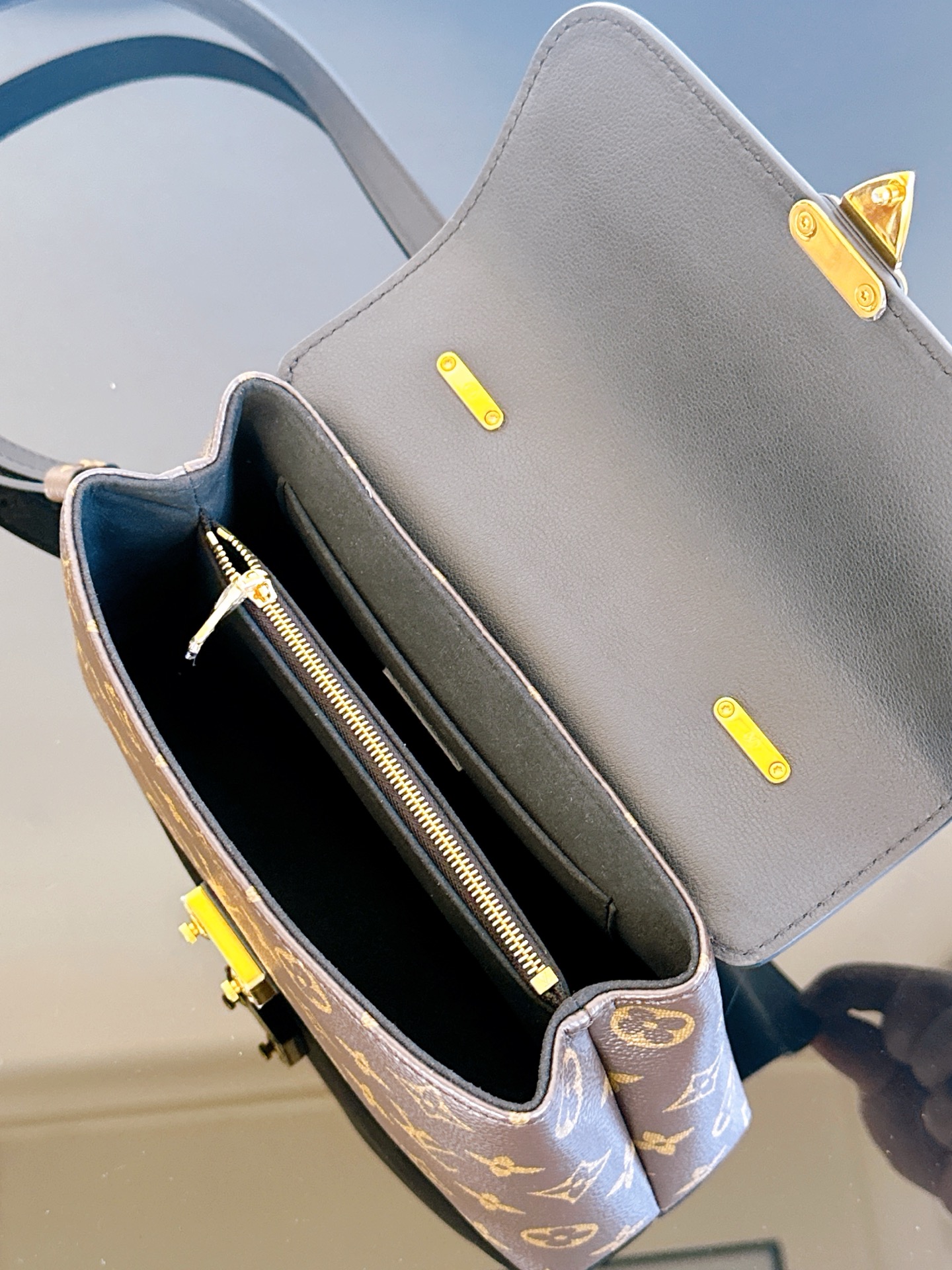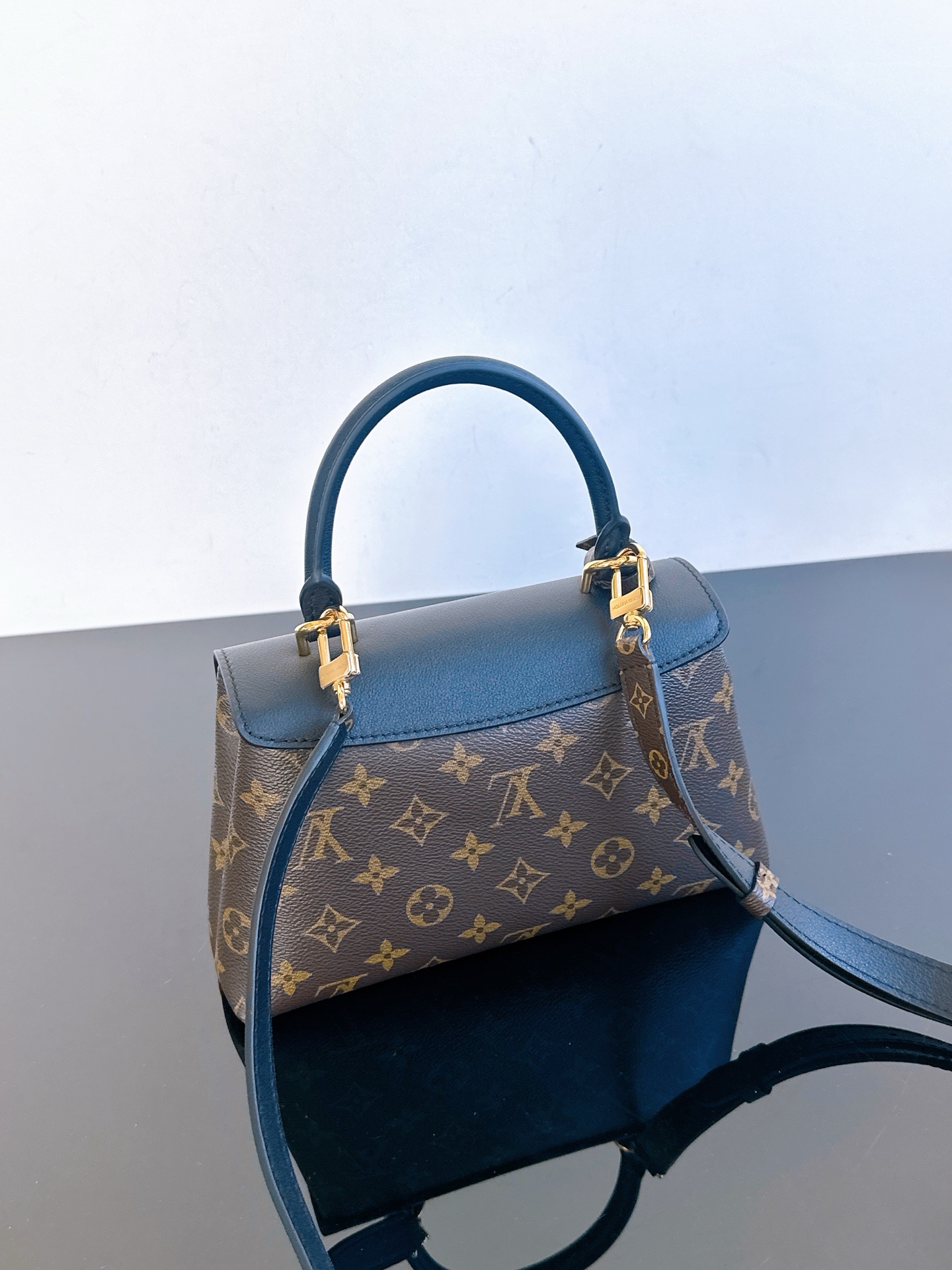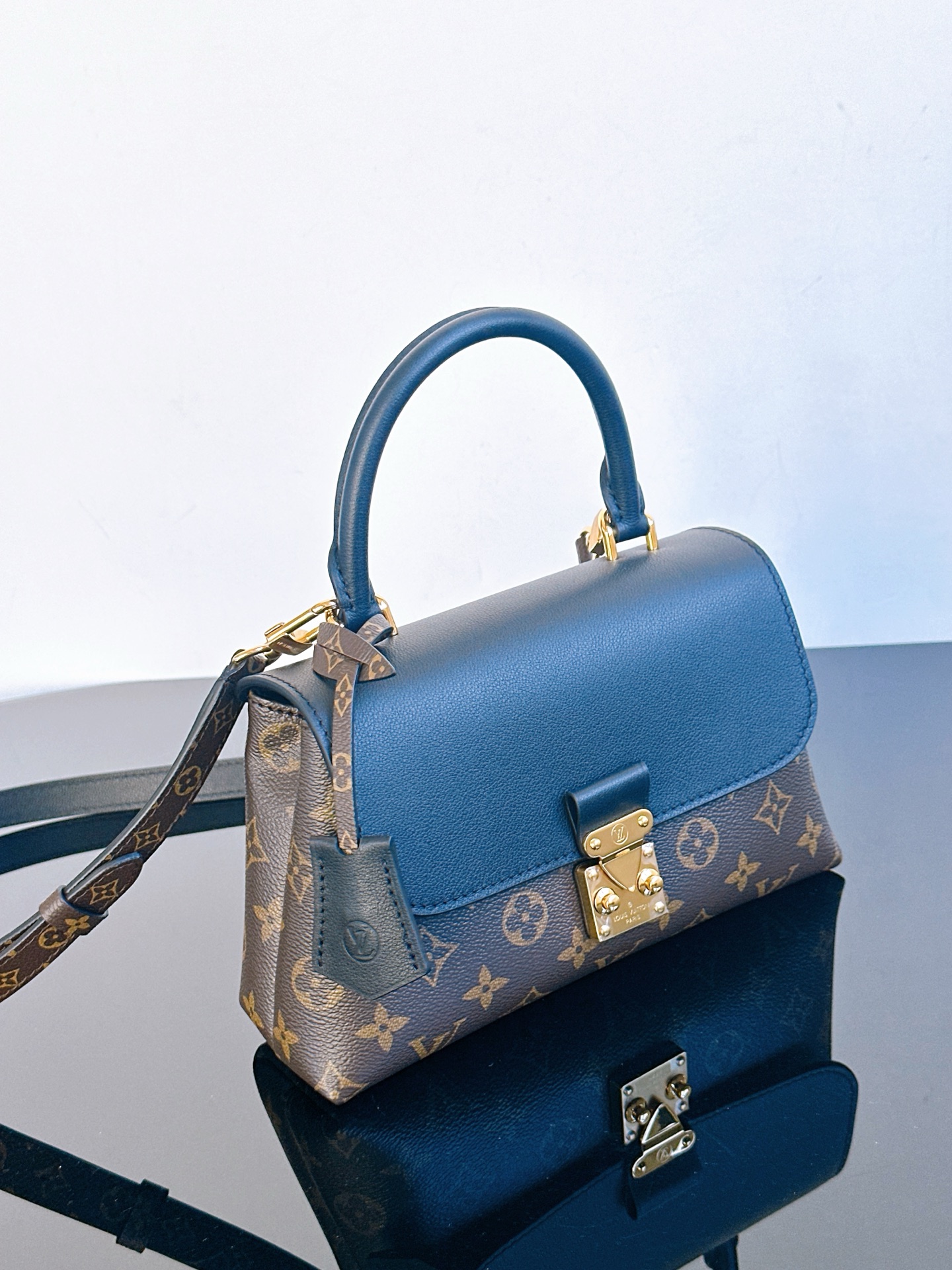 经典Monogram老花与深邃黑色皮革碰撞,复古优雅中透着摩登气场。标志性S-lock锁扣镌刻品牌基因,圆润手柄与可调节肩带解锁手提、斜挎双模式,无论是通勤职场还是周末漫步,都能轻松hold住优雅姿态,是永不过时的法式精致之选~ 一眼沦陷的撞色美学,老花帆布的复古肌理与细腻皮革的温润触感交叠,金色五金在光线下流转光泽。小巧包身藏着实用容量,手机、卡包、口红悉数收纳,每一处细节都在诉说LV对工艺与美学的极致追求,是能陪伴你走过岁月的经典包款。 尺寸24.5 x 16 x 8 厘米 (长度 x 高 x 宽)