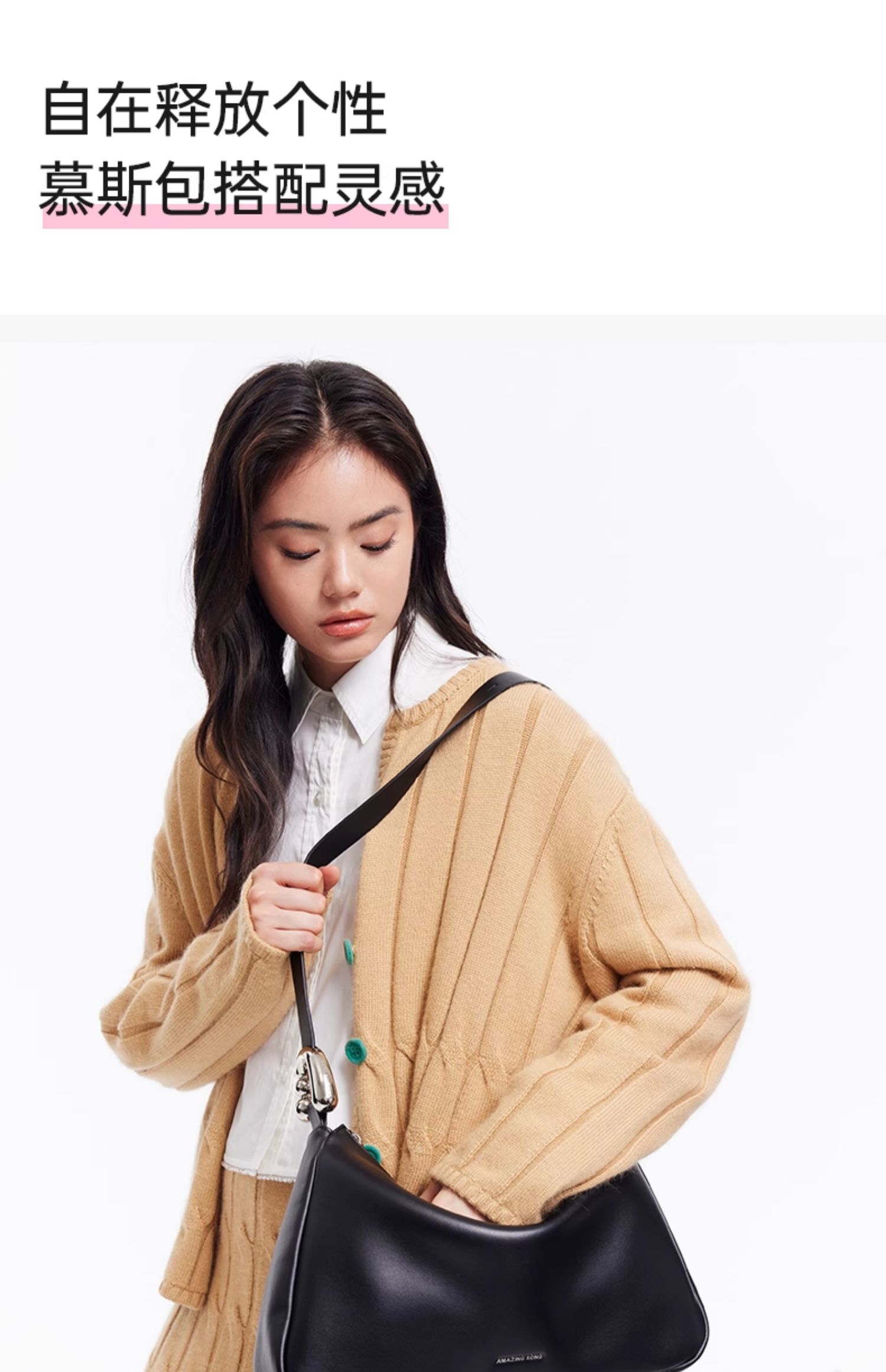 Amazing Song乙颂 慕斯包中号升级款 新款小众设计斜挎牛皮女士通勤单肩大包包