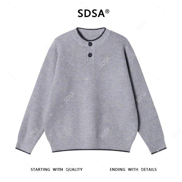 3302SDSA男士秋冬新款痞帅男装极简风半纽扣圆领毛衣慵懒风套头针织衫