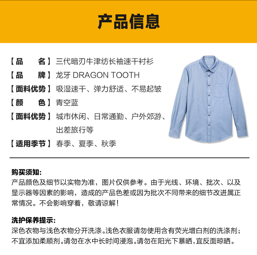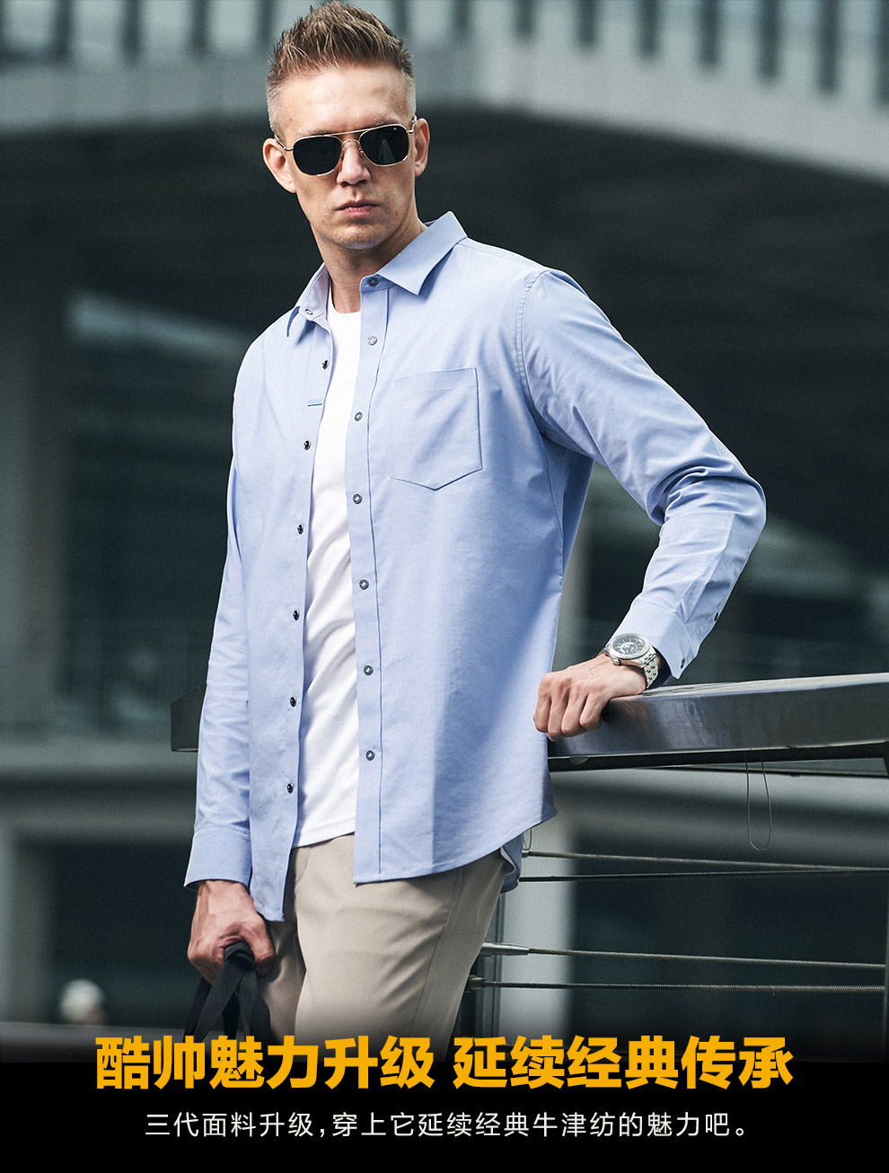 【张译同款】三代暗刃牛津纺长袖速干衬衫男衬衣遮肚腩春秋商务休闲通勤