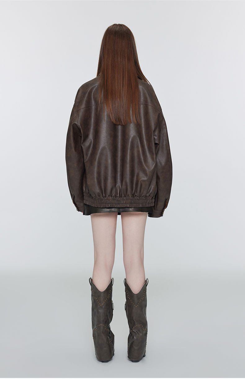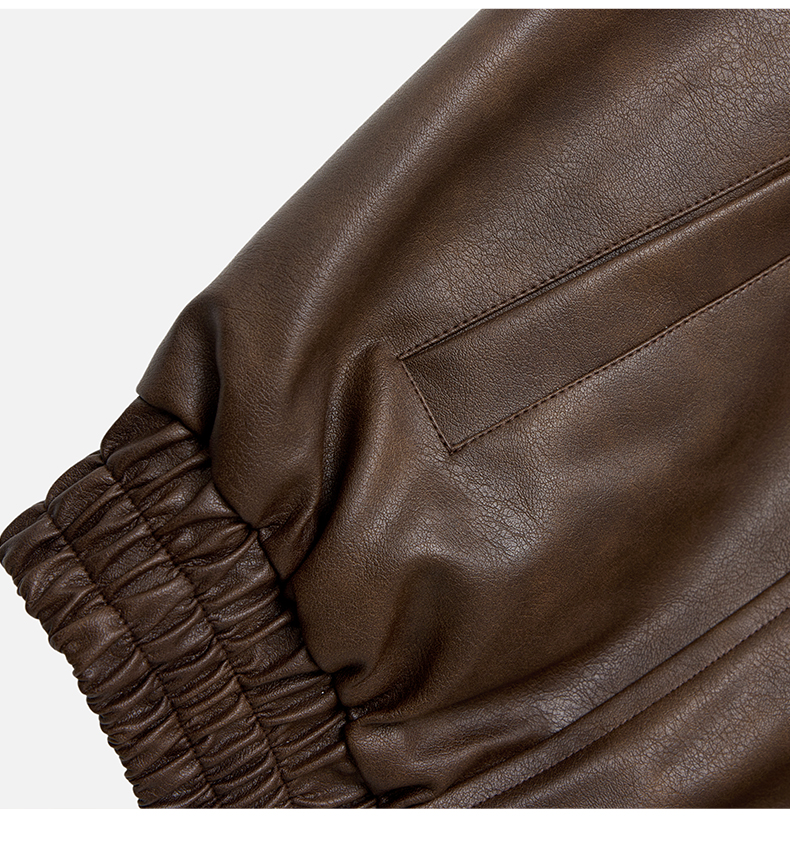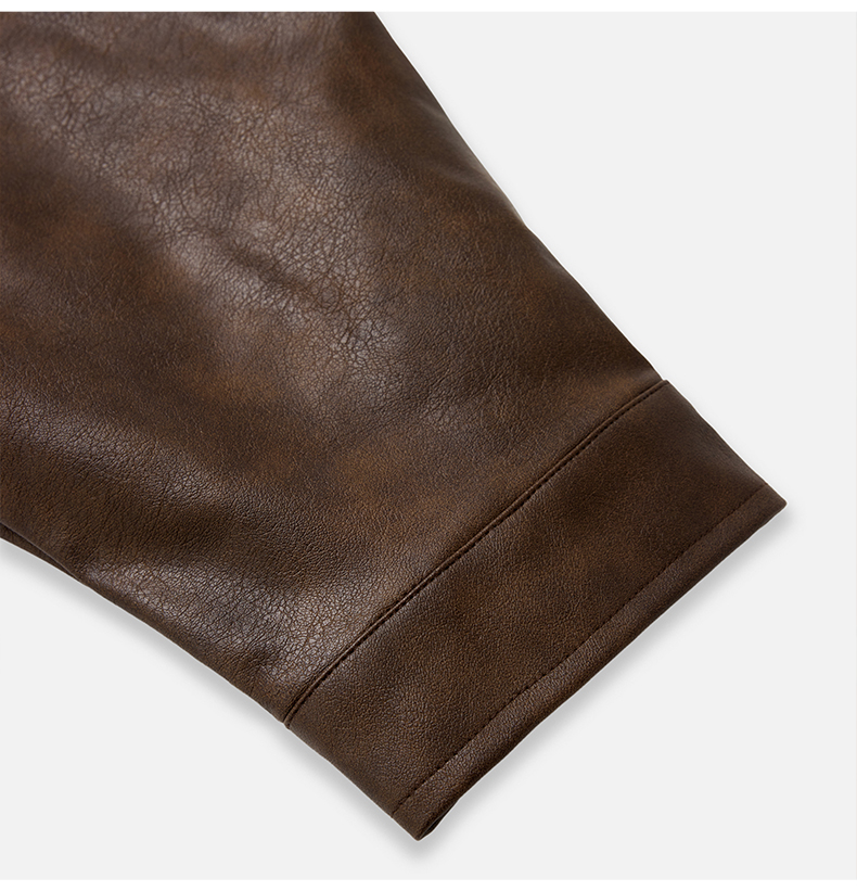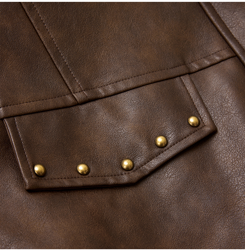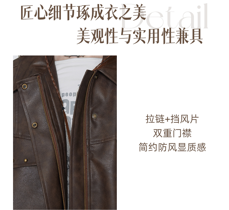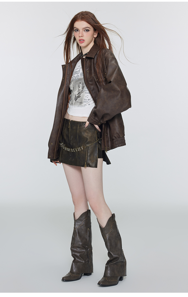 IC 美拉德柳钉短外套上衣秋冬新款美式复古皮衣女短款皮夹克