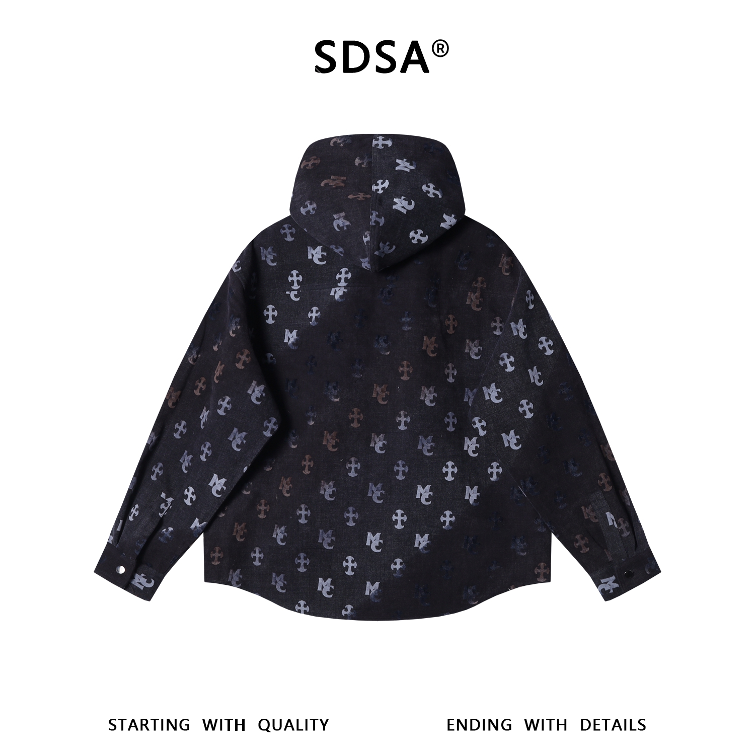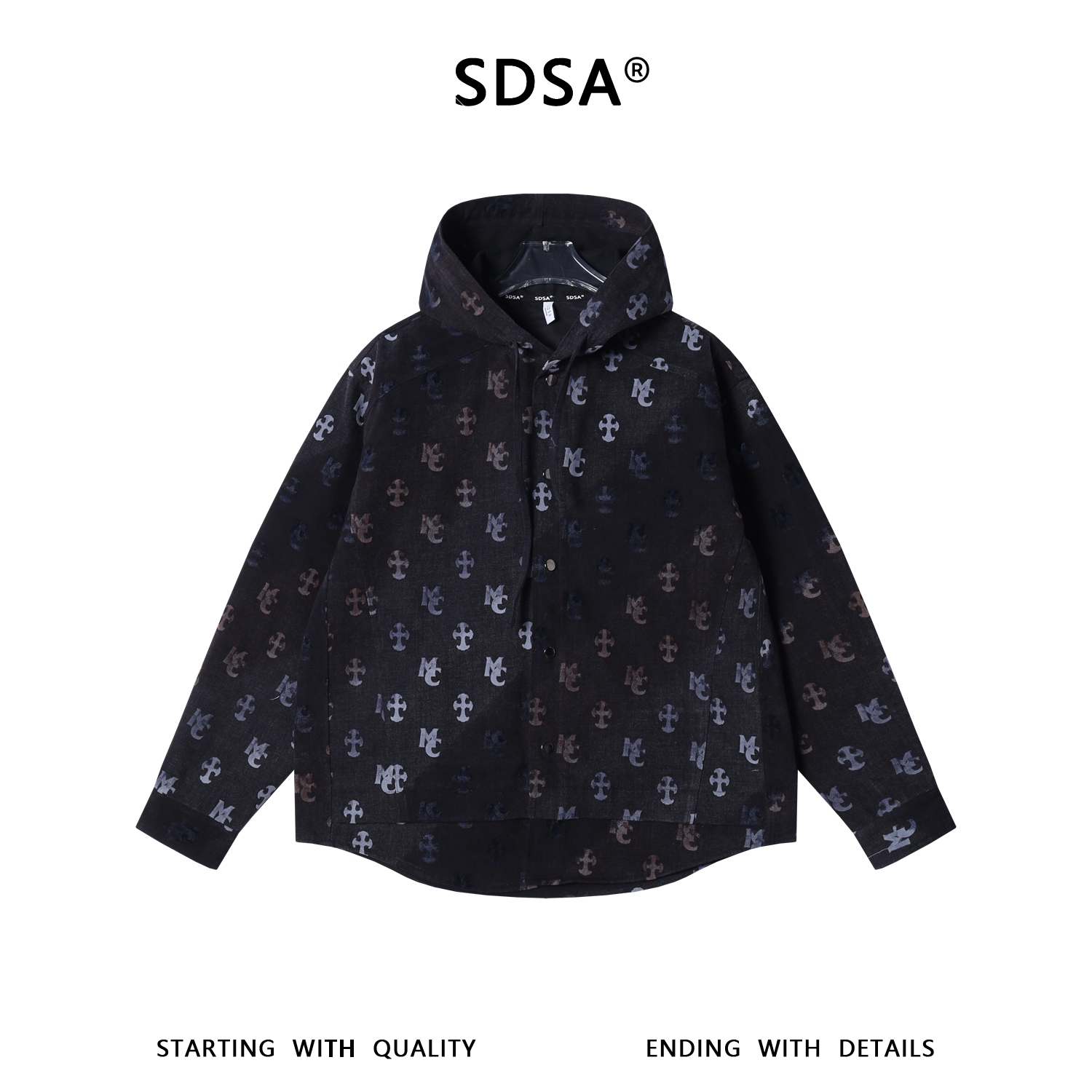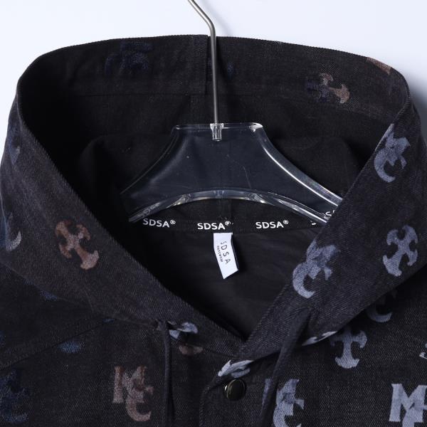 SDSA男装2026新款高贵轻奢韩版潮牌撞色十字印花按扣连帽衬衫百搭