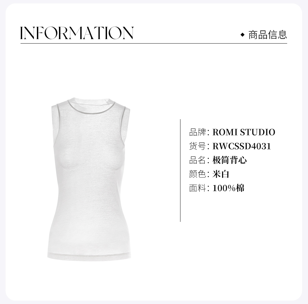 ROMI STUDIO“Clean fit”强捻全棉超轻薄微透修身背心 RWCSSD4031