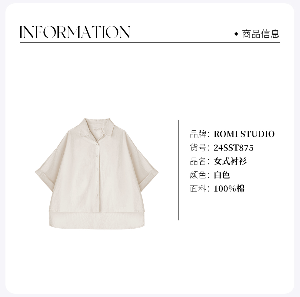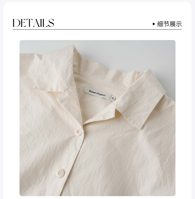 ROMI STUDIO“舒然夏韵”100%匹马棉纸皱感龟背五分袖衬衣 24SST875