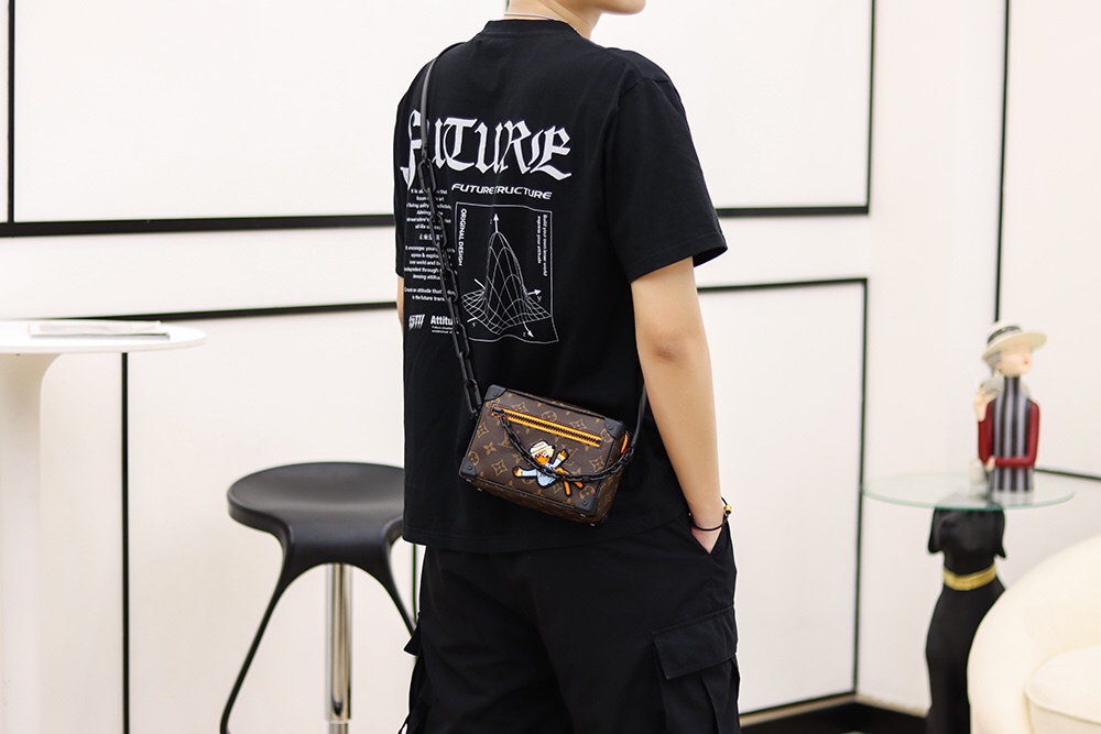 春夏秀款吴亦凡同款mini soft trunk 稻草人!各种开通元素,搭配稻草人的设计颜色很🈶️冲击力,容量也是杆杆的!一眼相中,带点小俏皮,日常出街百搭又实用!