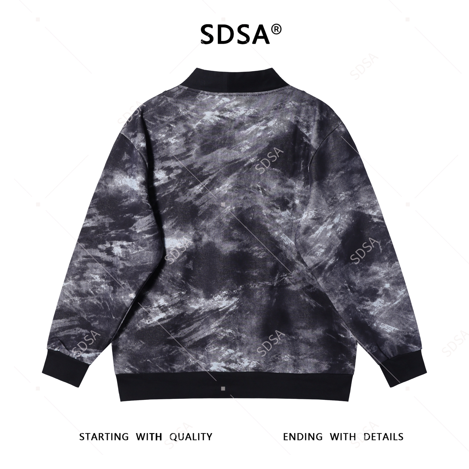 SDSA男士秋冬新款痞帅男装美式拼接开衫V领卫衣扎染重工百搭上衣