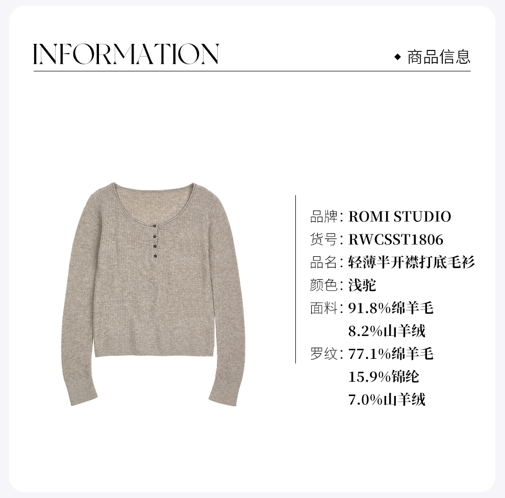 ROMI STUDIO“温暖亨利”山羊绒绵羊毛圆领保暖开襟毛衫RWCSST1806