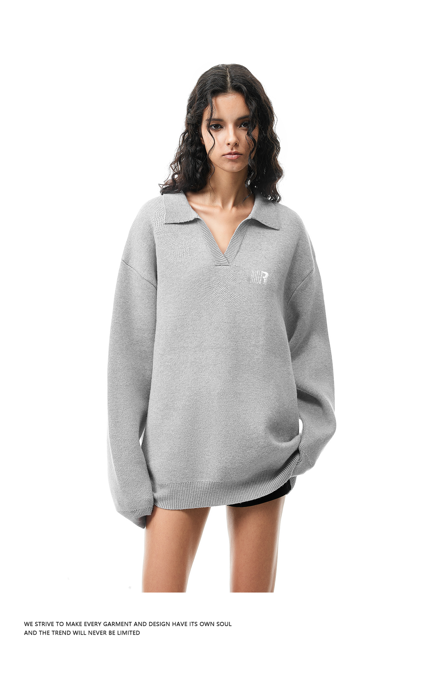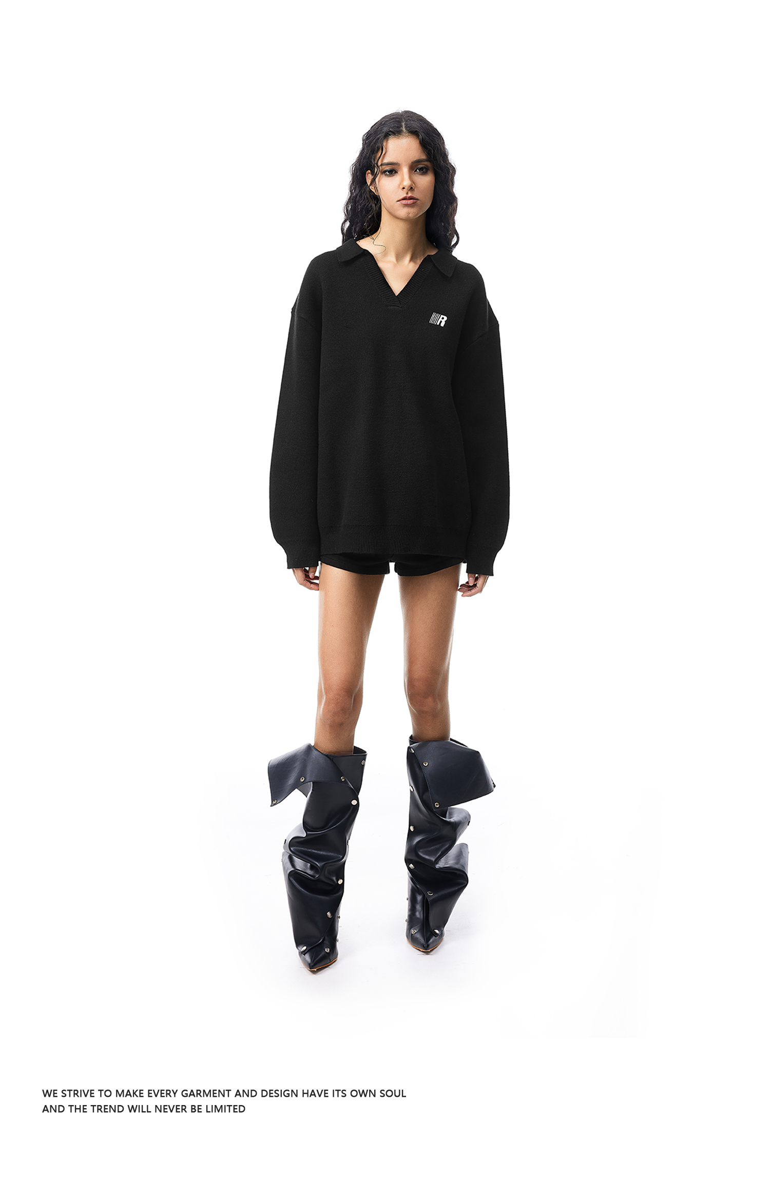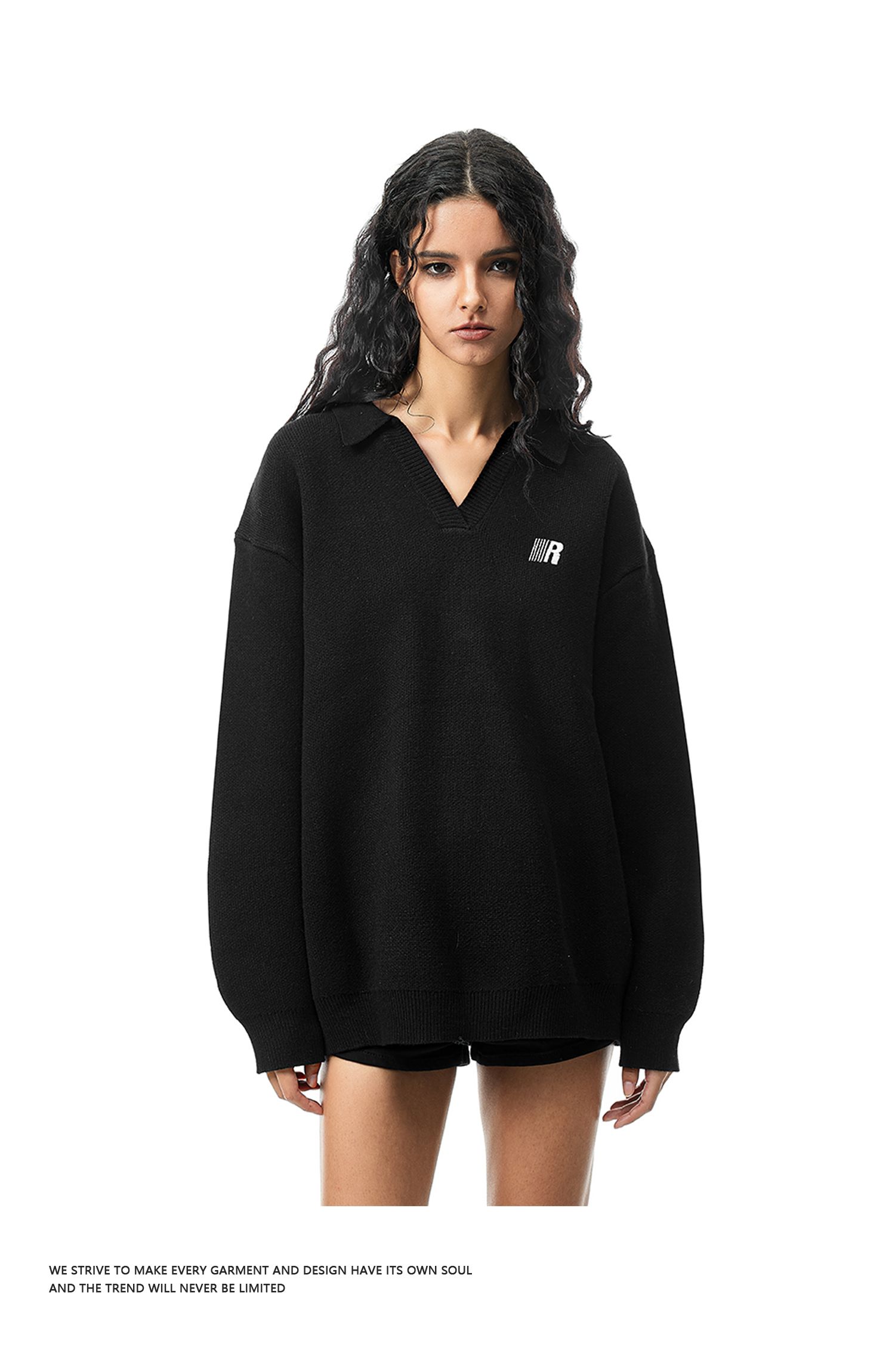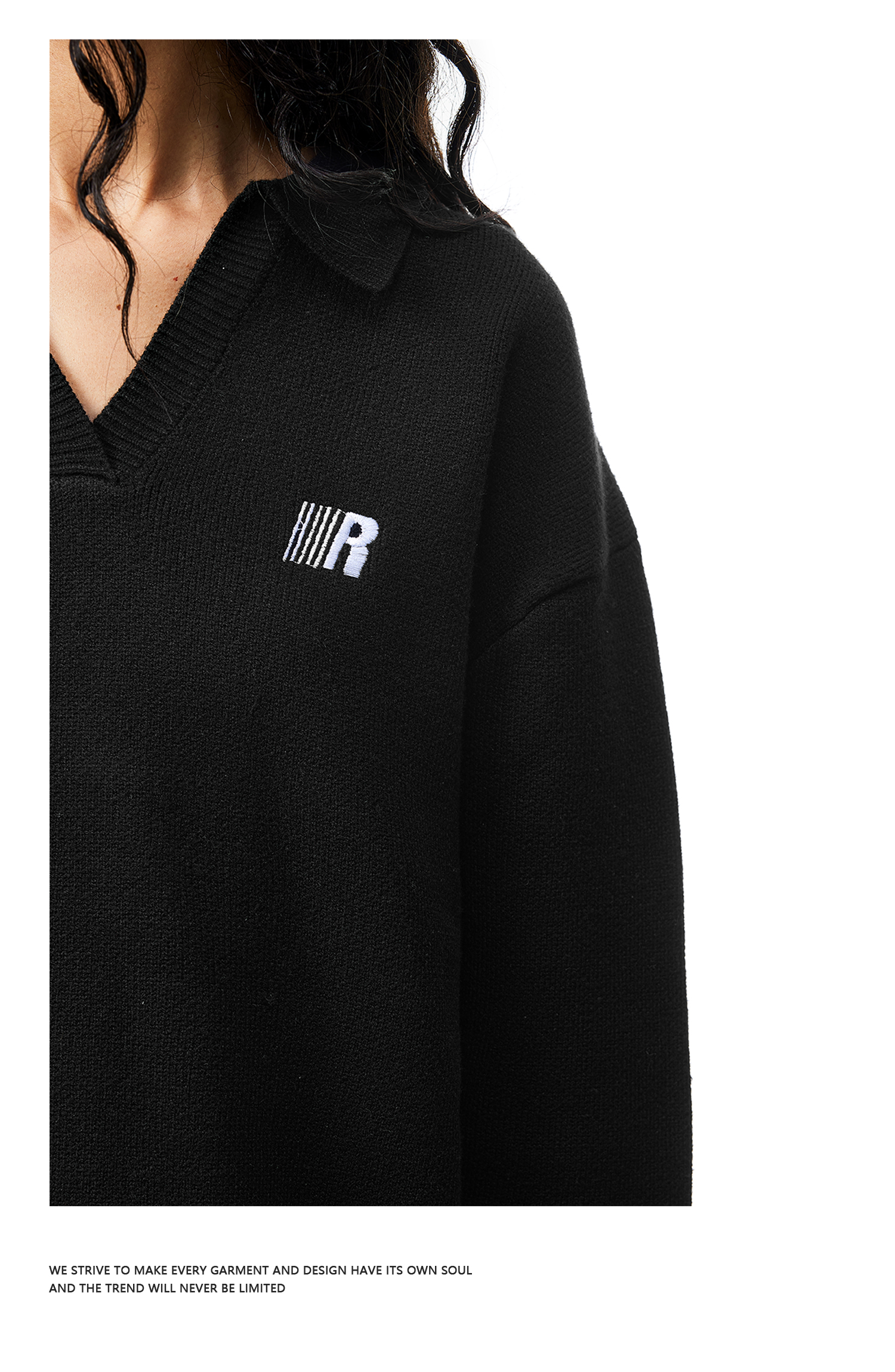 【黄俊捷同款】FDR V领翻领R字针织衫毛衣男女秋冬季情侣打底上衣