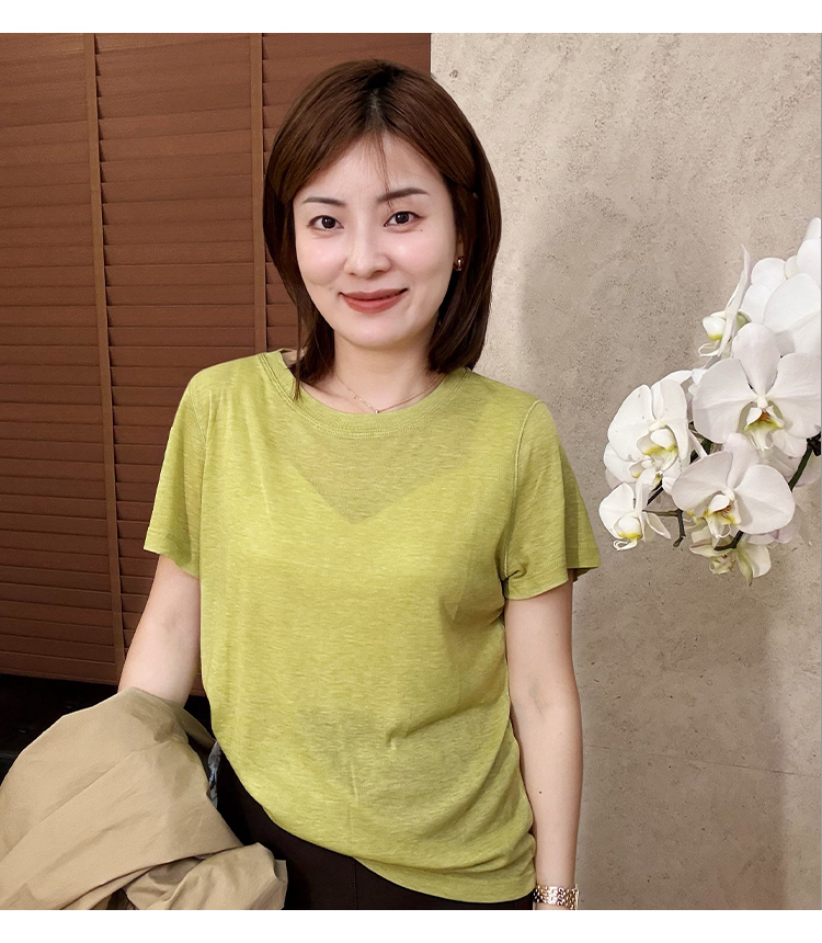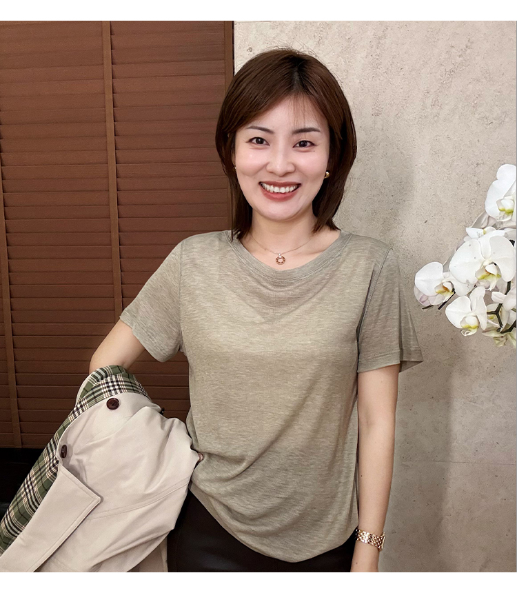 【不退不换、现货】良木礼夏季休闲桑蚕丝短T(528870)