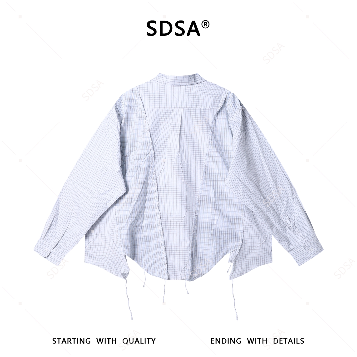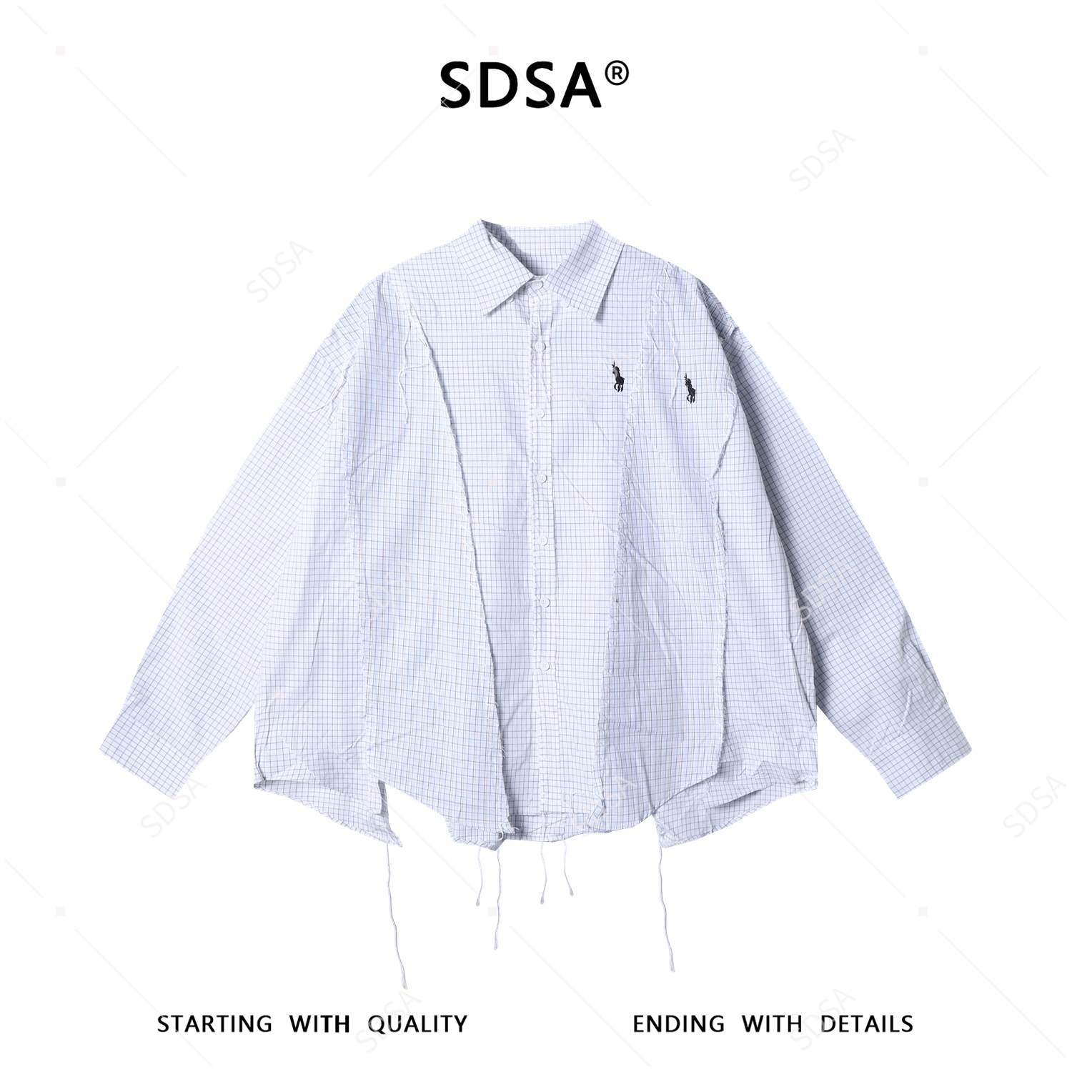 SDSA男装2026新款高贵轻奢刺绣标拼接格子流苏长袖衬衫百搭宽松