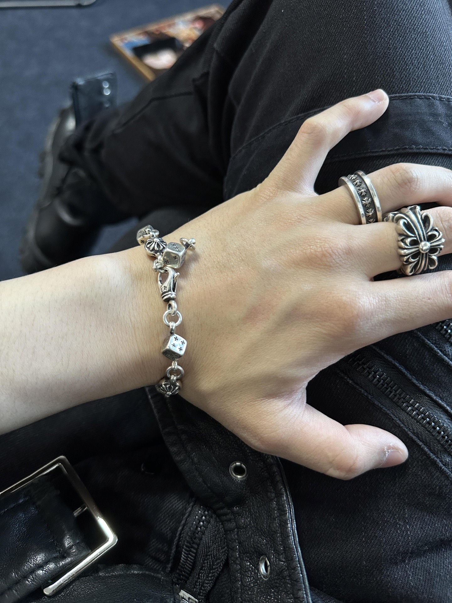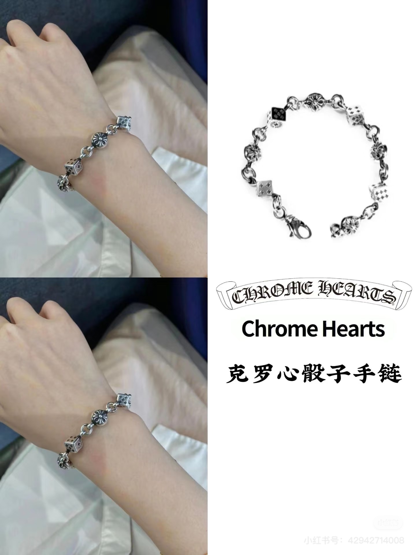 Chrome Hearts克罗心 十字花球筛子925银手链,骰子款是日本限定,超级难买(MM)