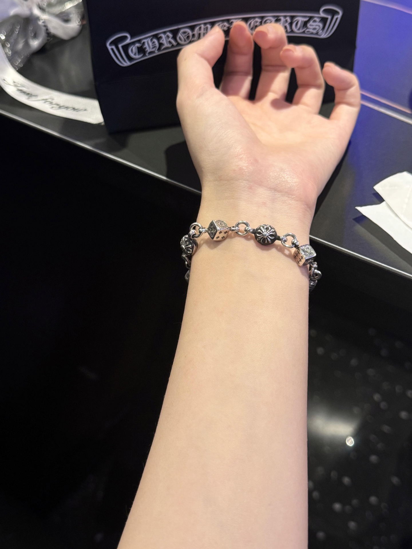 Chrome Hearts 十字花球筛子925银手链,骰子款是日本限定,超级难买!