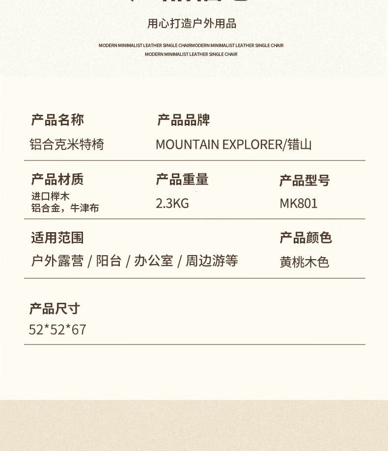 错山 户外桌椅套装克米特椅子蛋卷桌铝合金折叠便携式露营装备野餐桌 铝合克米特椅(大号)MK801