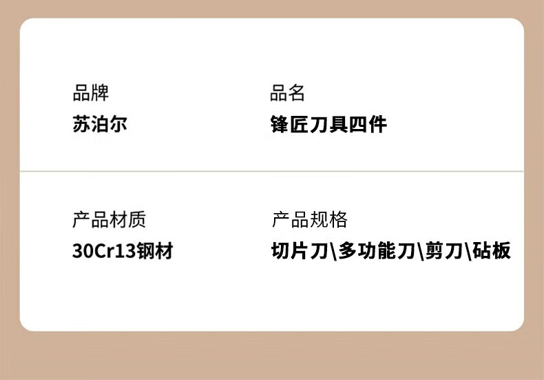 苏泊尔(SUPOR)锋匠刀具四件套切片刀多功能刀剪刀砧板TK21110T厨具YMK