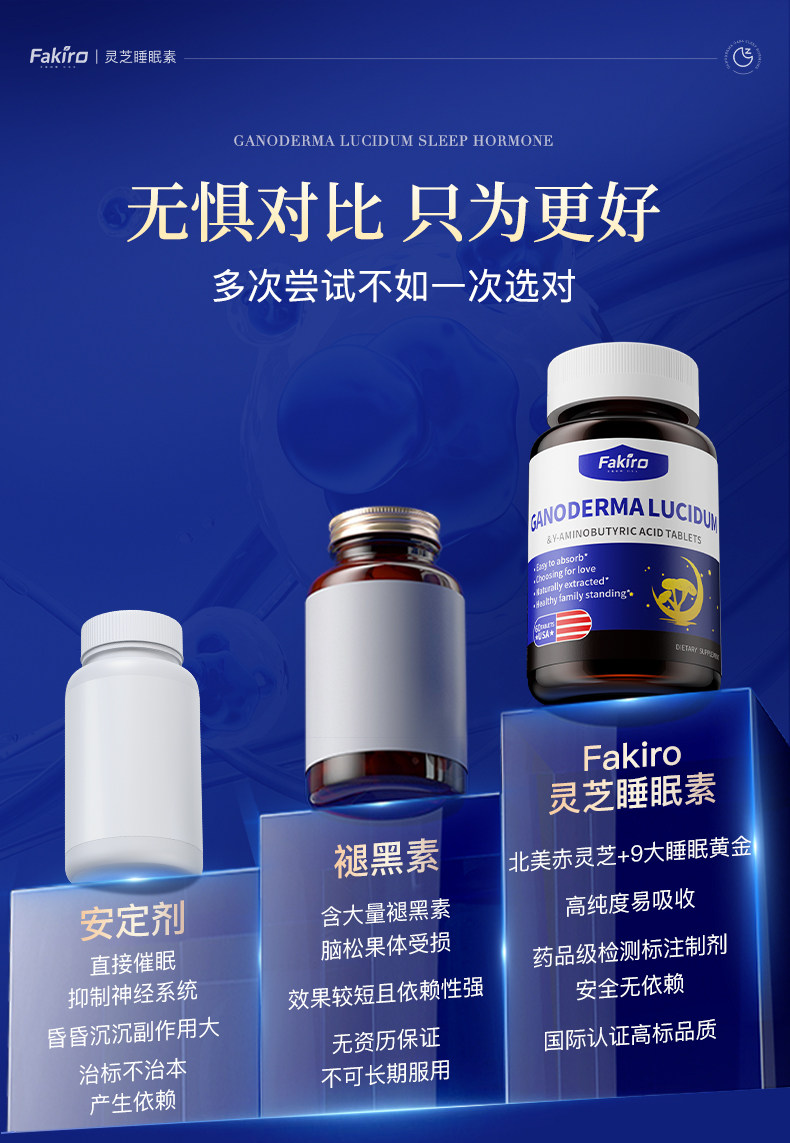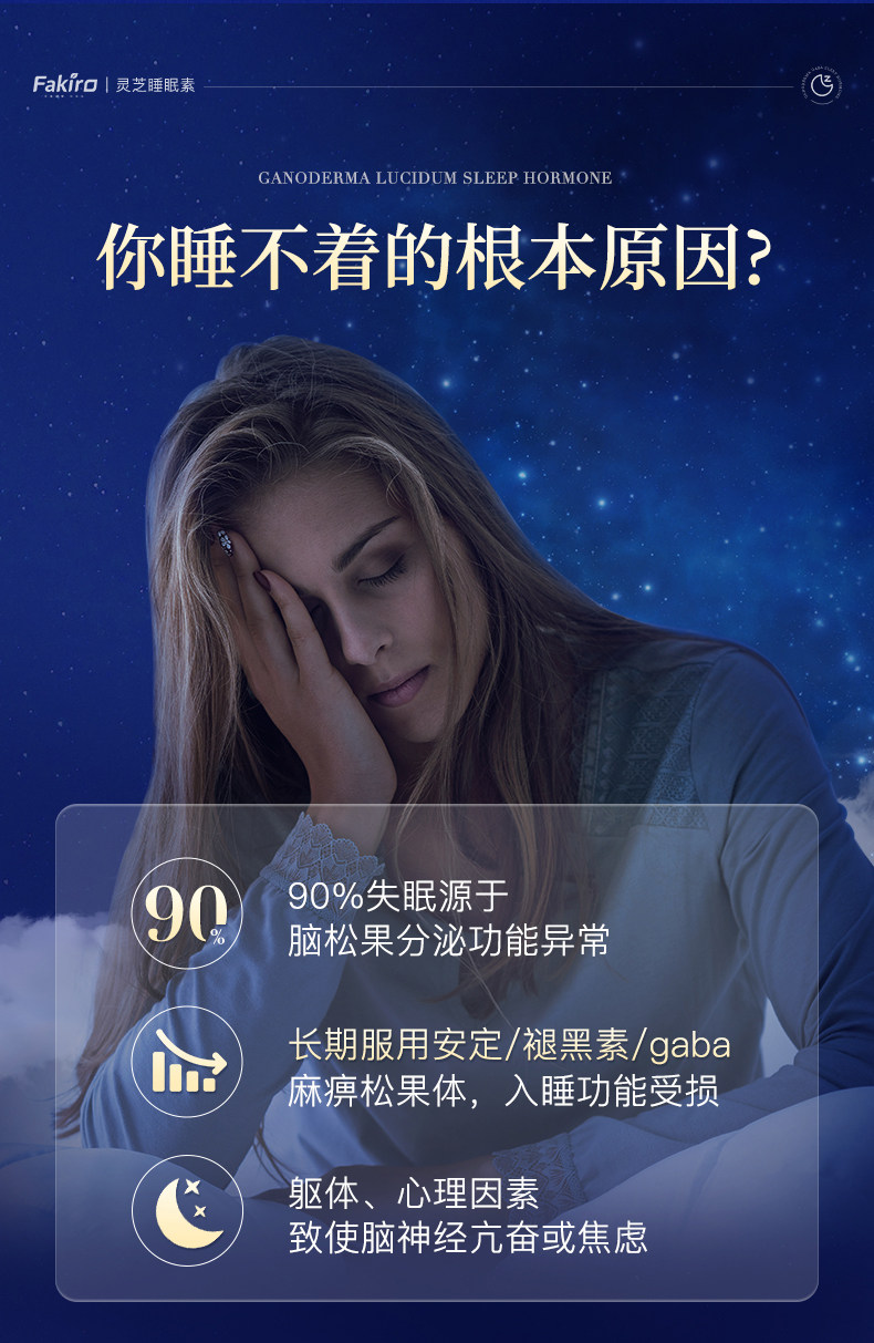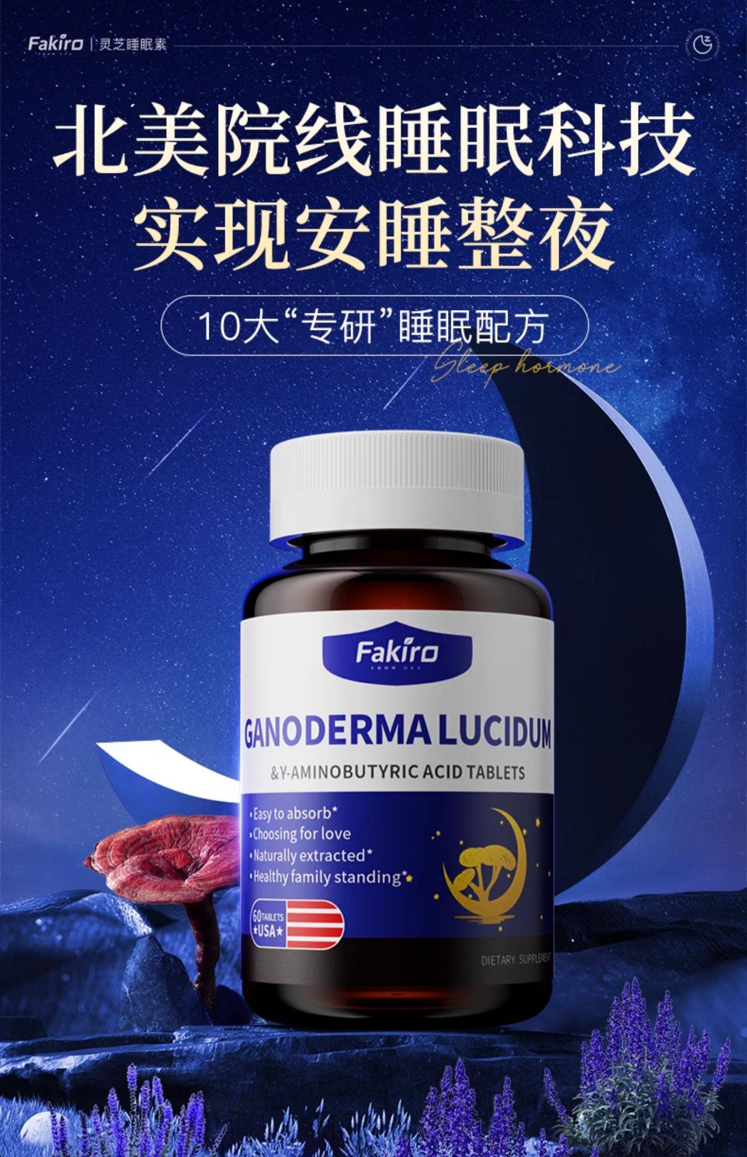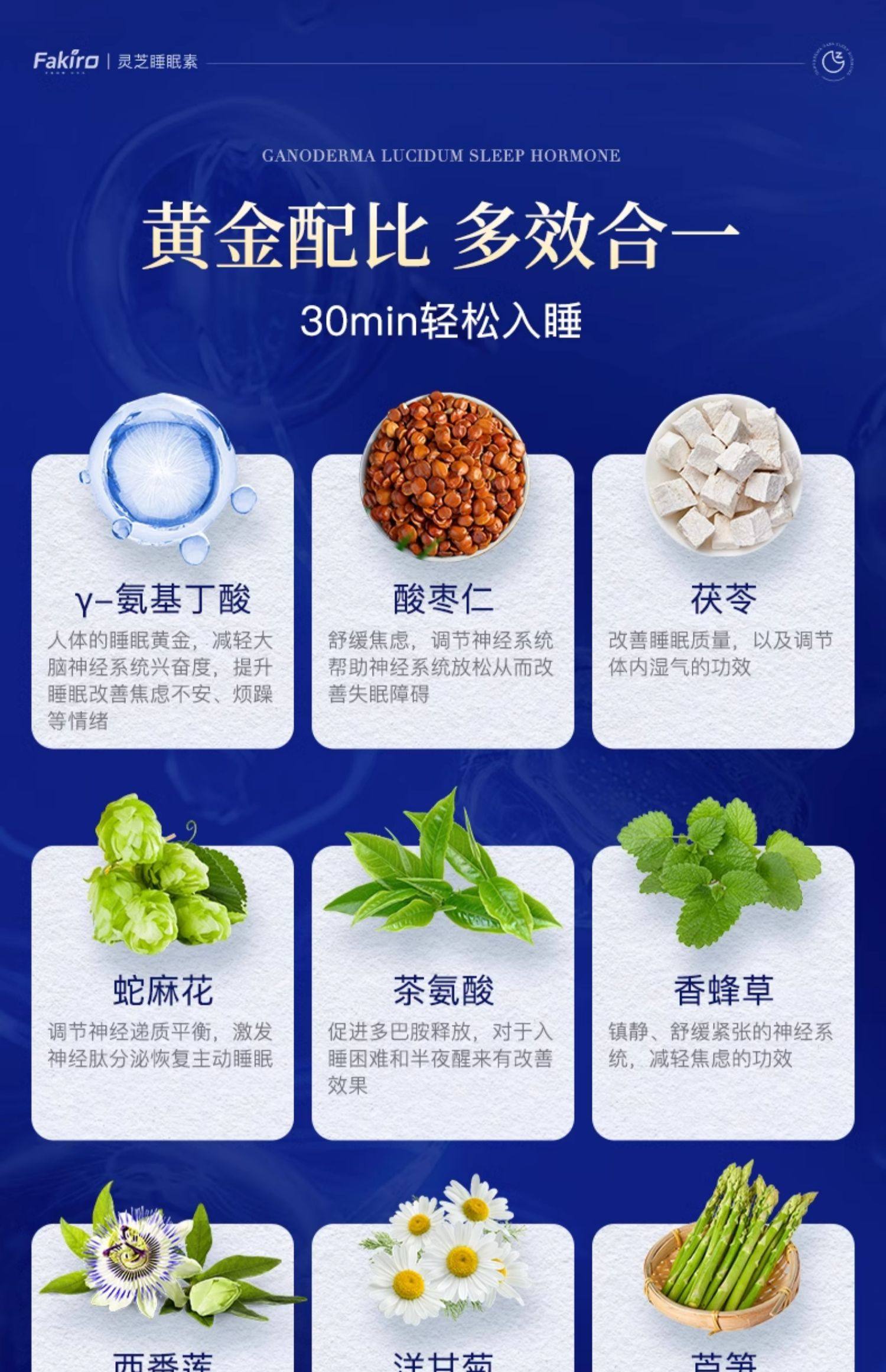 Fakiro秀利康灵芝gaba氨基丁酸舒压安眠退褪黑素闪睡改善助睡眠