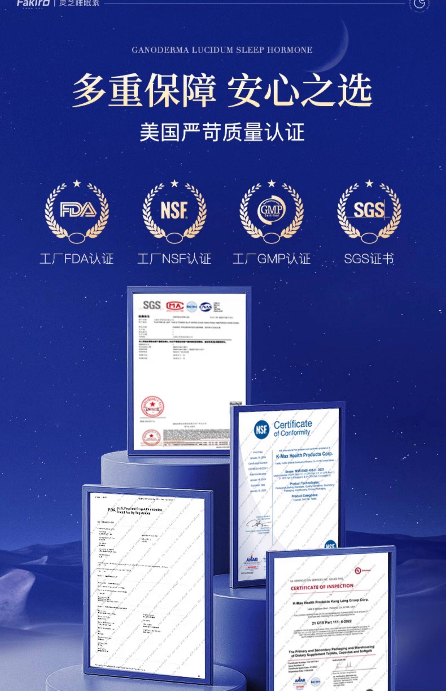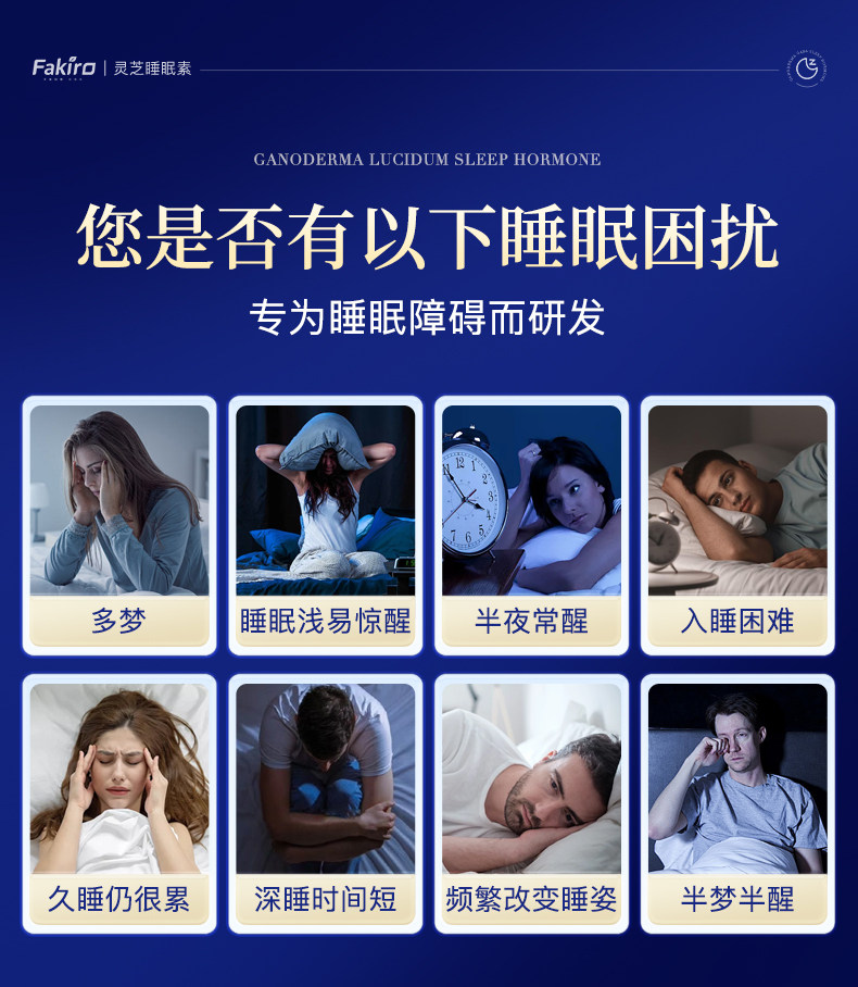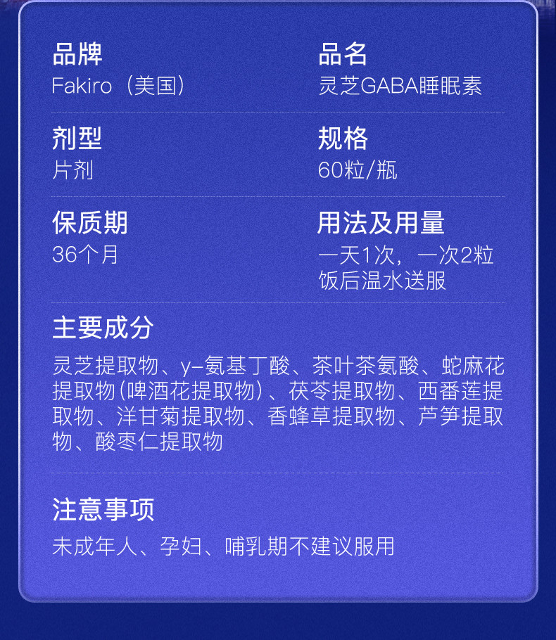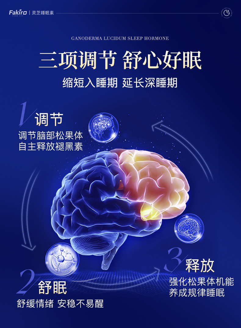 Fakiro秀利康灵芝gaba氨基丁酸舒压安眠退褪黑素闪睡改善助睡眠