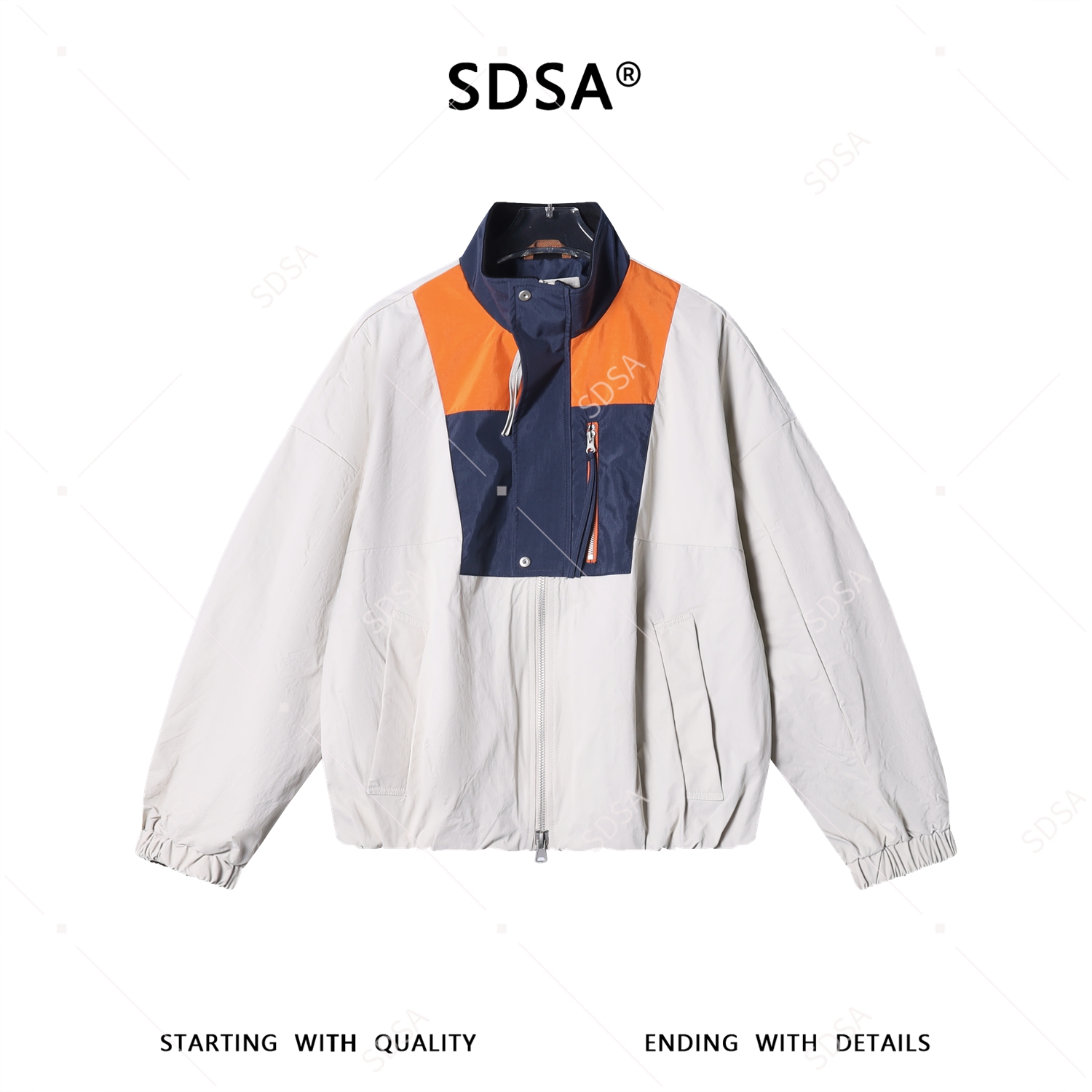 SDSA男装2026新款高贵轻奢美式简约撞色拼接立领夹克外套百搭宽松