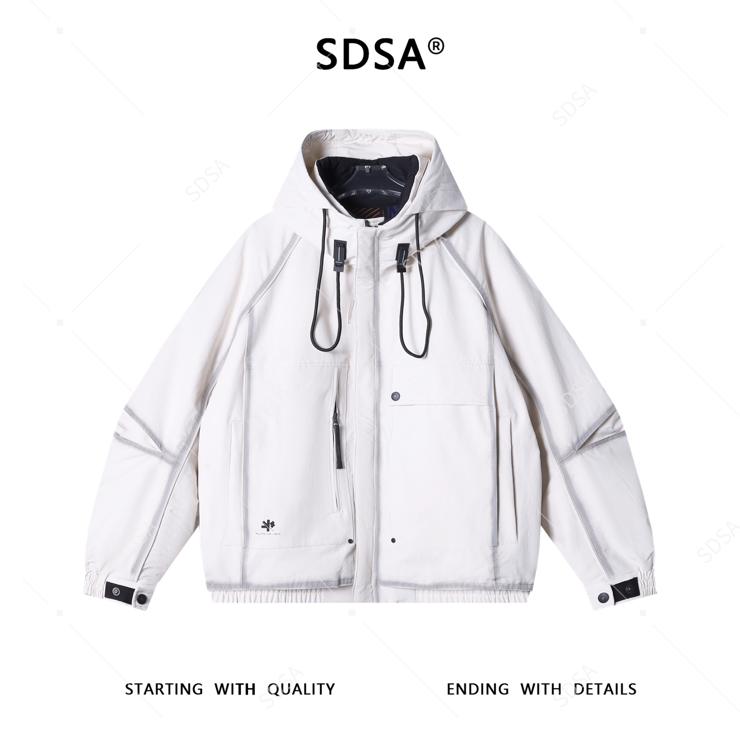 253223SDSA男士秋冬新款痞帅男装潮牌工装拉链立领连帽羽绒服外套百搭